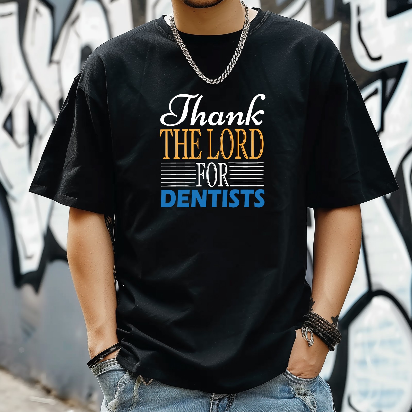 Thank The Load For Dentists- T-Shirt for Man Tops Short Sleeves Shirt Crew Neck Shirt XS