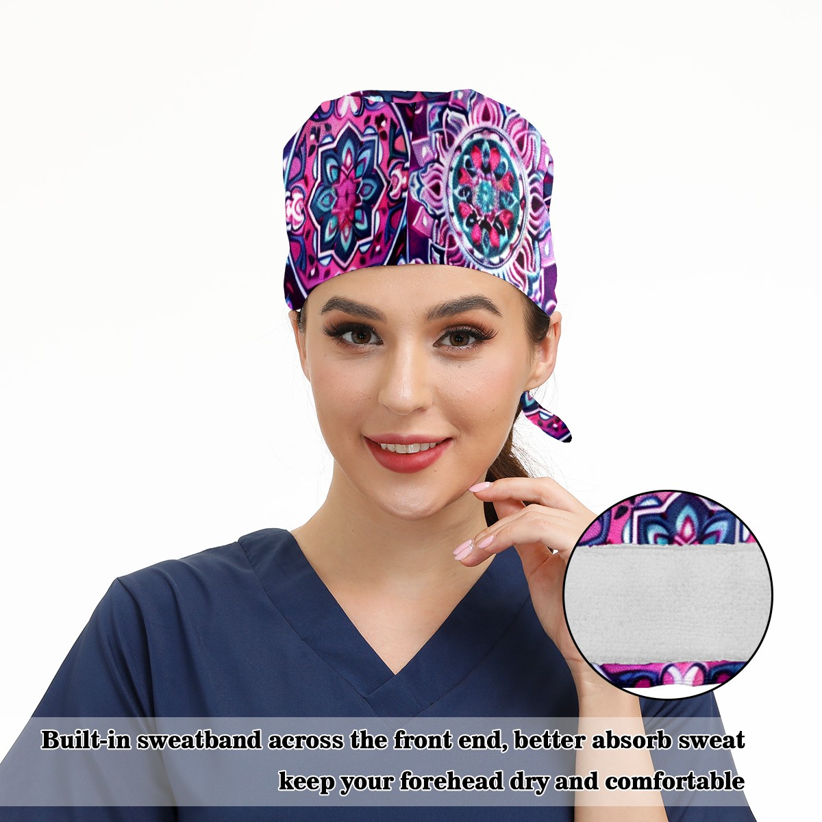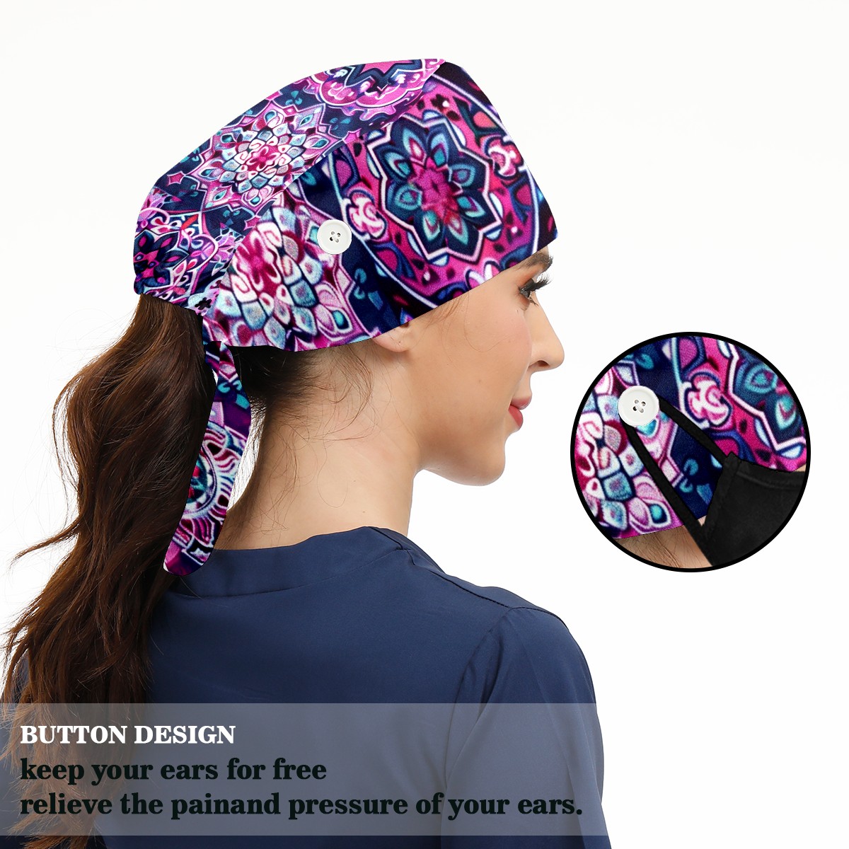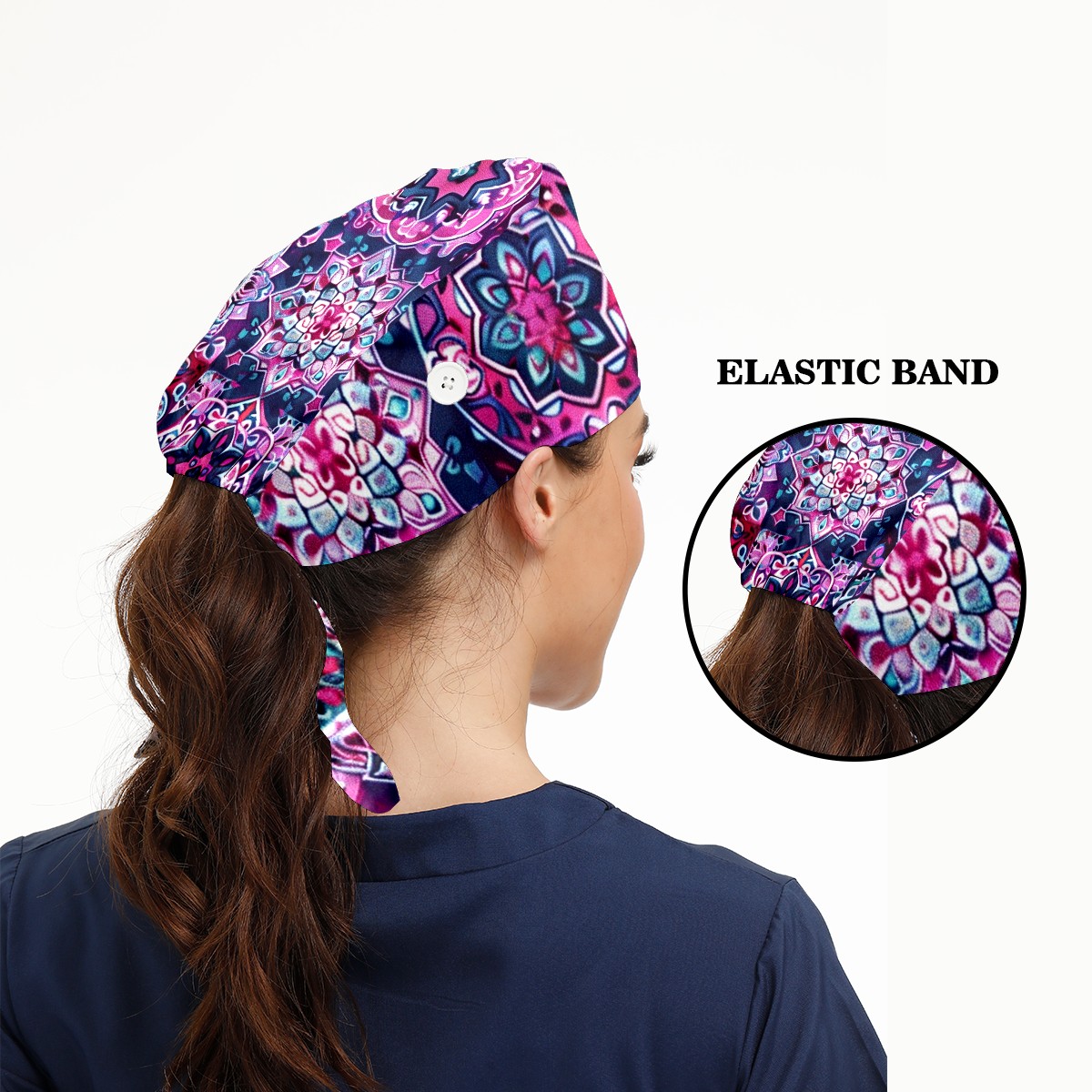 Working Caps with Button & Sweatband Satin Lined Cotton Adjustable Nurse Hats Elastic Band Scrub Cap Surgeon Hat Symmetrical Lattice (1)