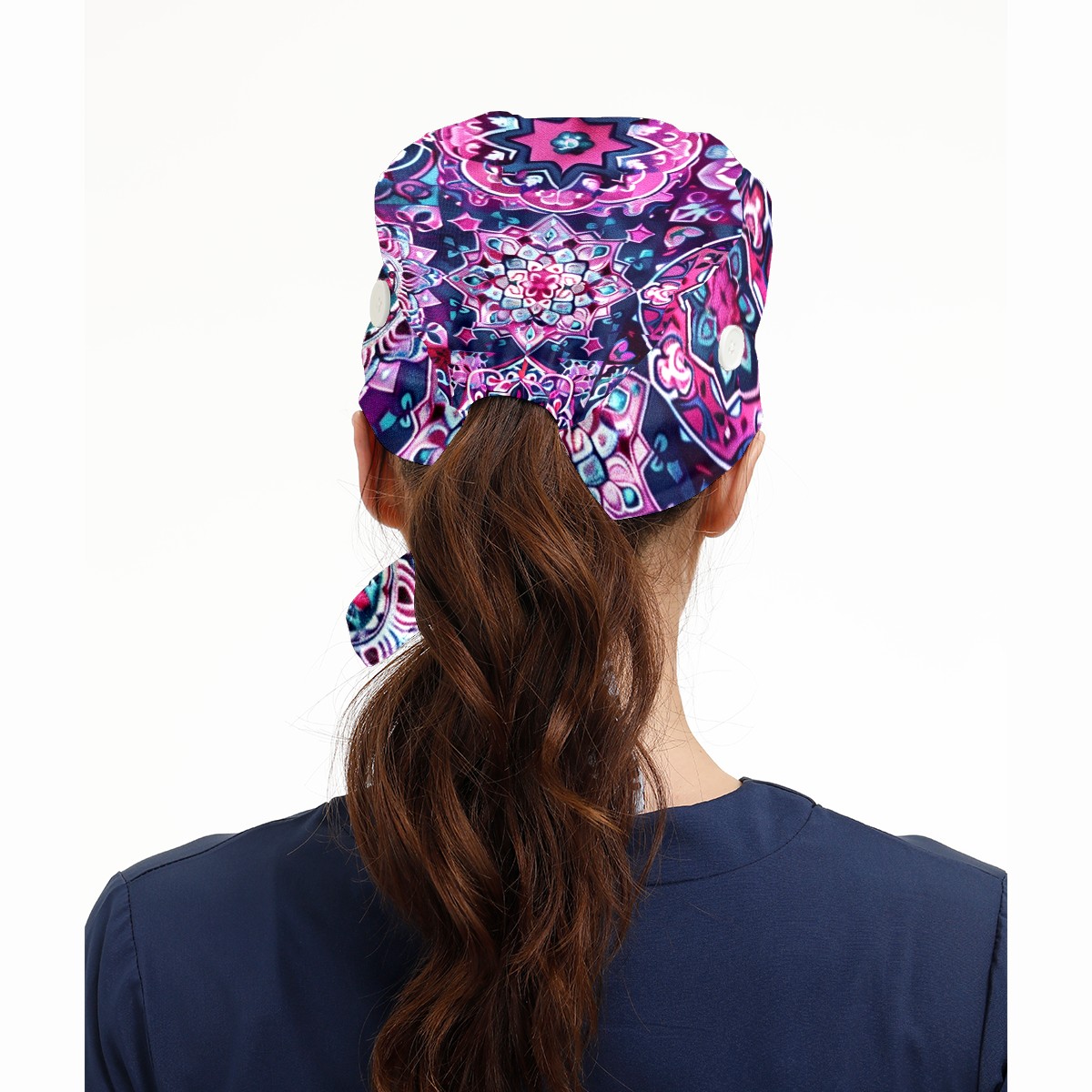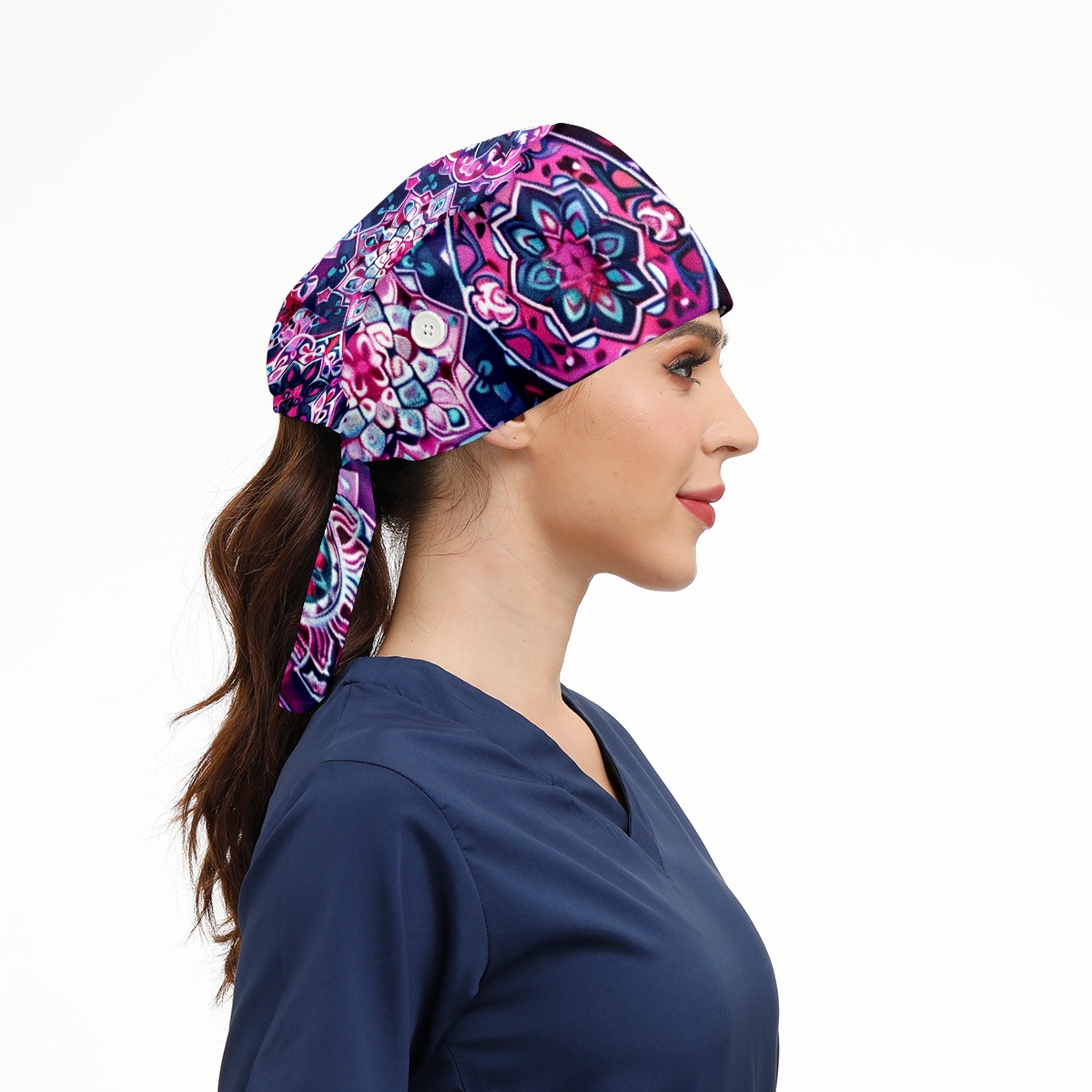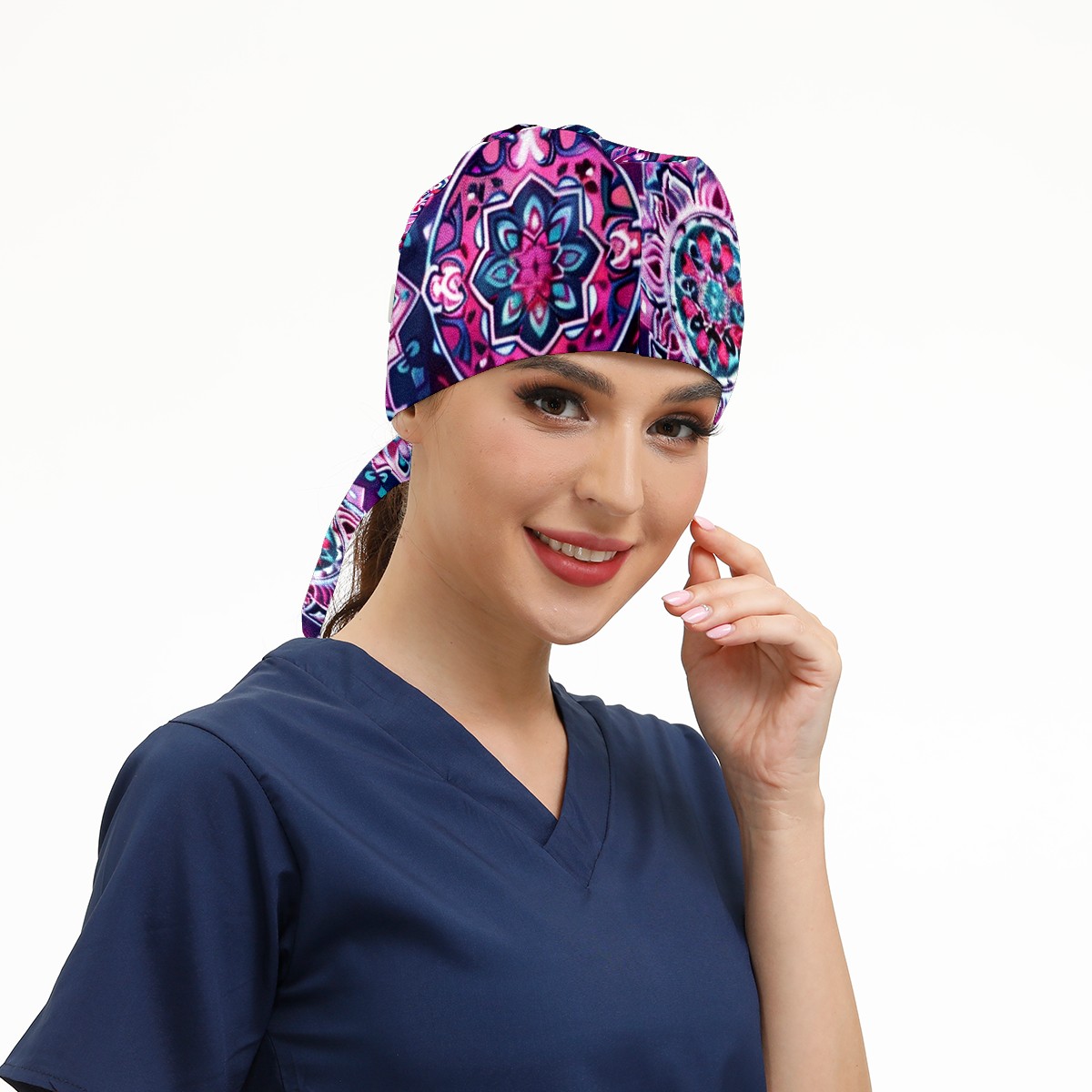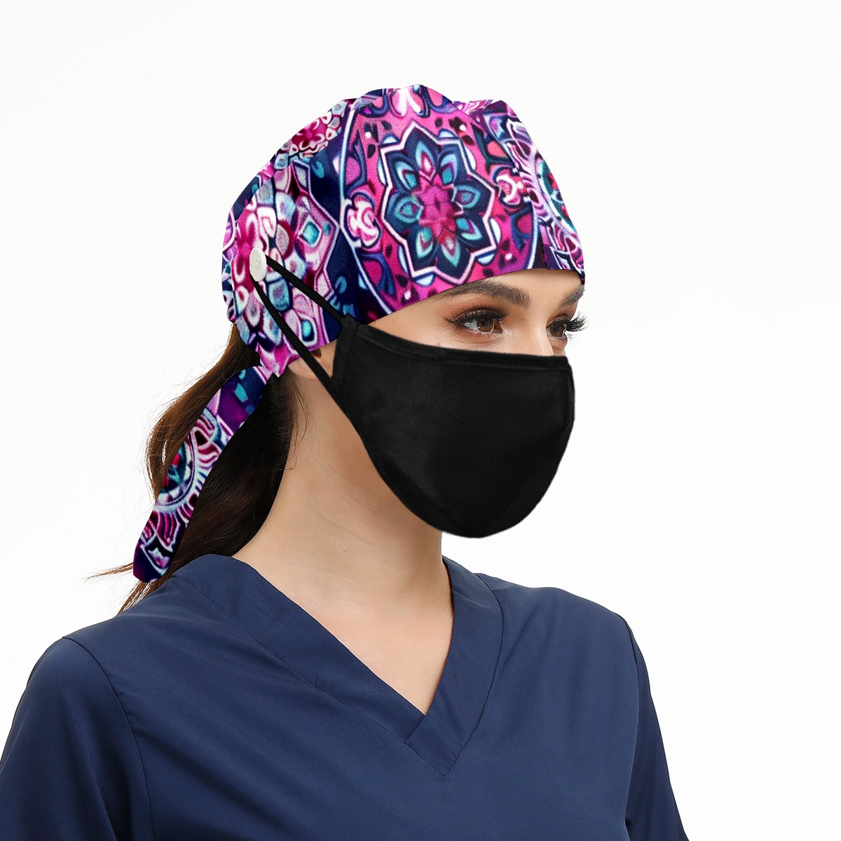 Working Caps with Button & Sweatband Satin Lined Cotton Adjustable Nurse Hats Elastic Band Scrub Cap Surgeon Hat Symmetrical Lattice (1)