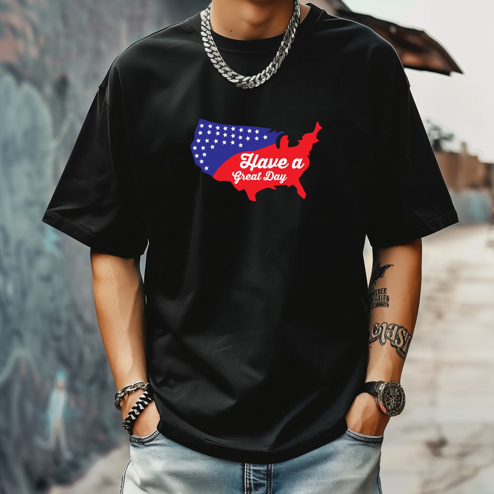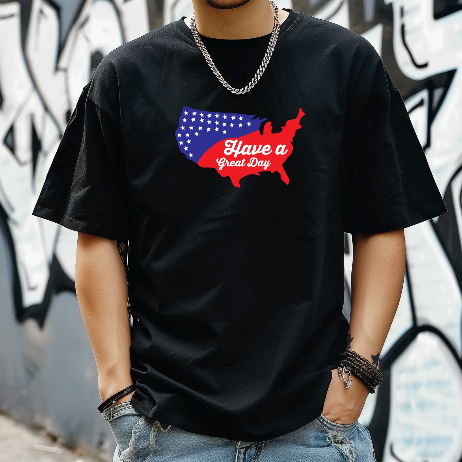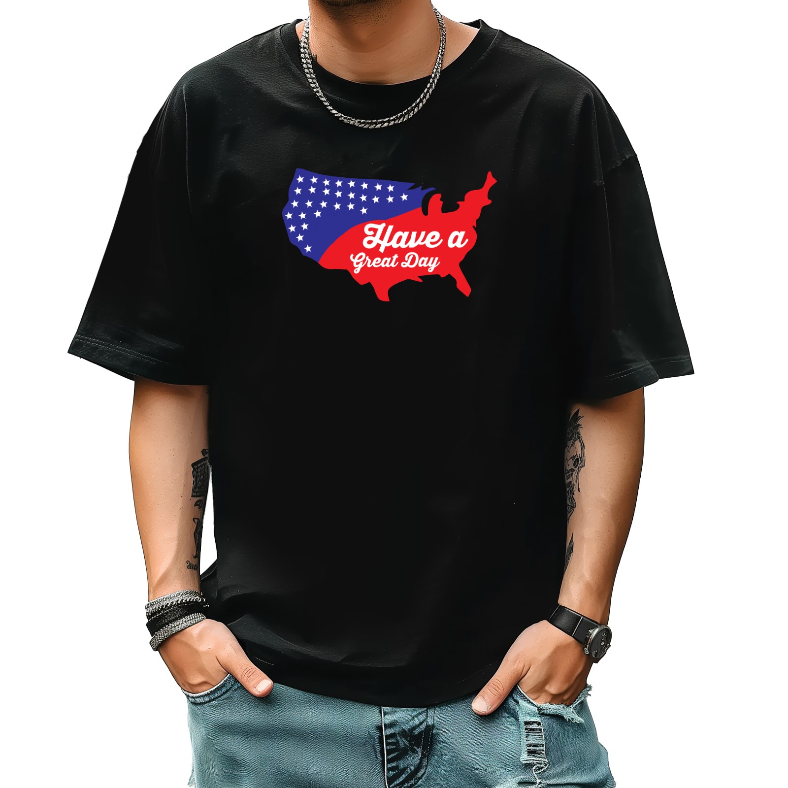 Have A Great 4th T-Shirt for Man Tops Short Sleeves Shirt Crew Neck Shirt XS