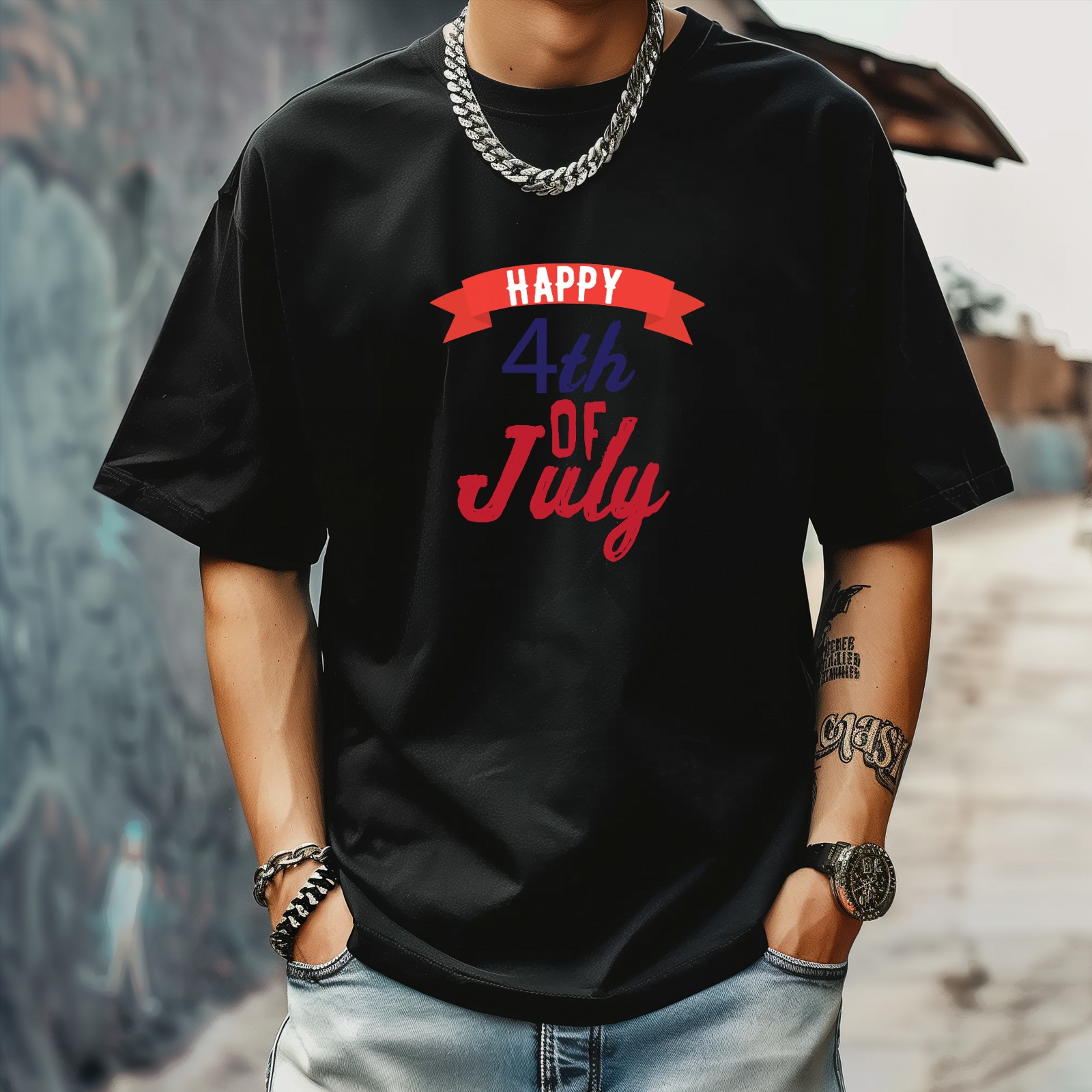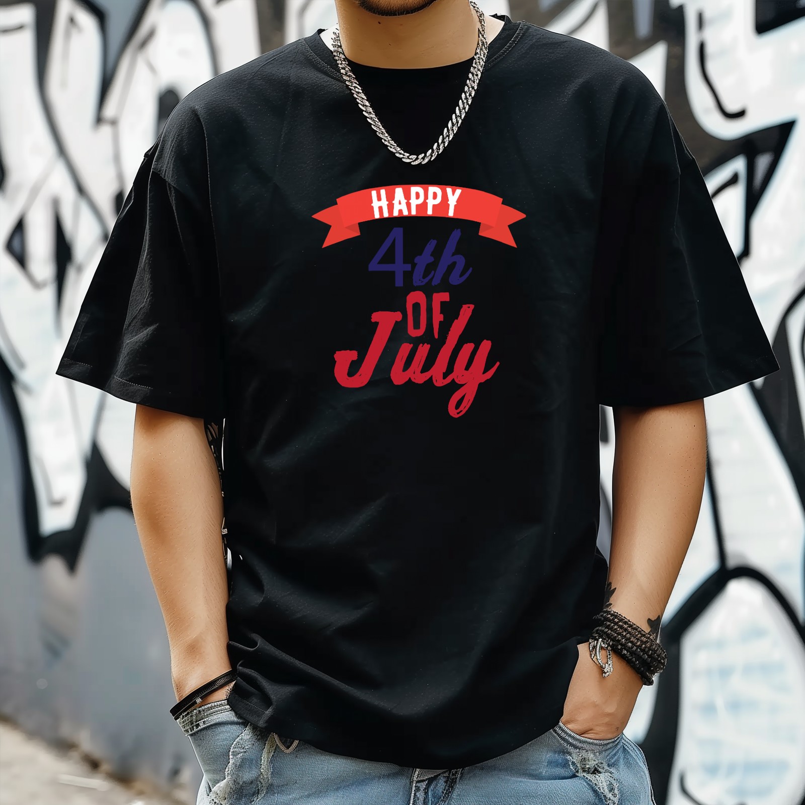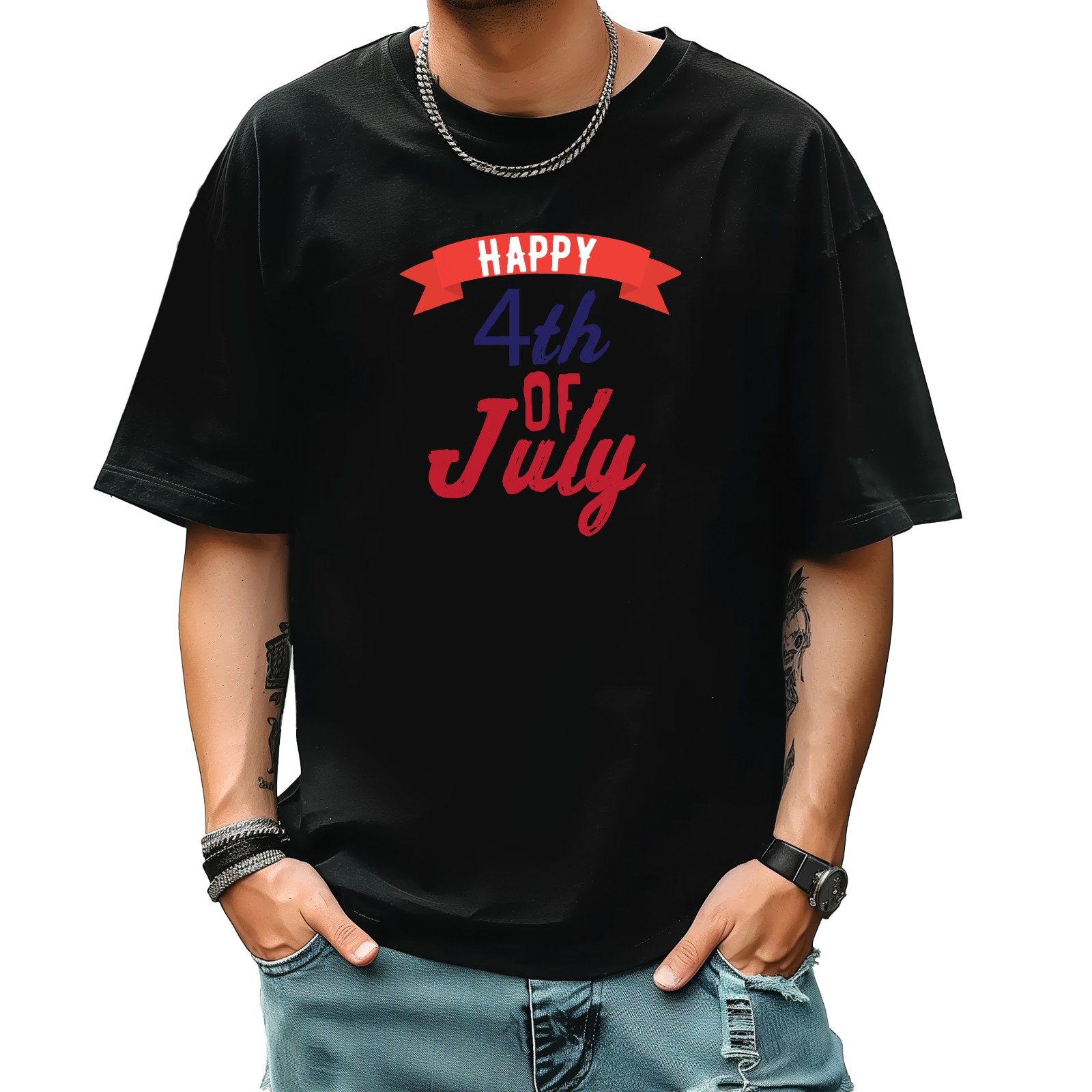 Happy July Independence Day T-Shirt for Man Tops Short Sleeves Shirt Crew Neck Shirt XS