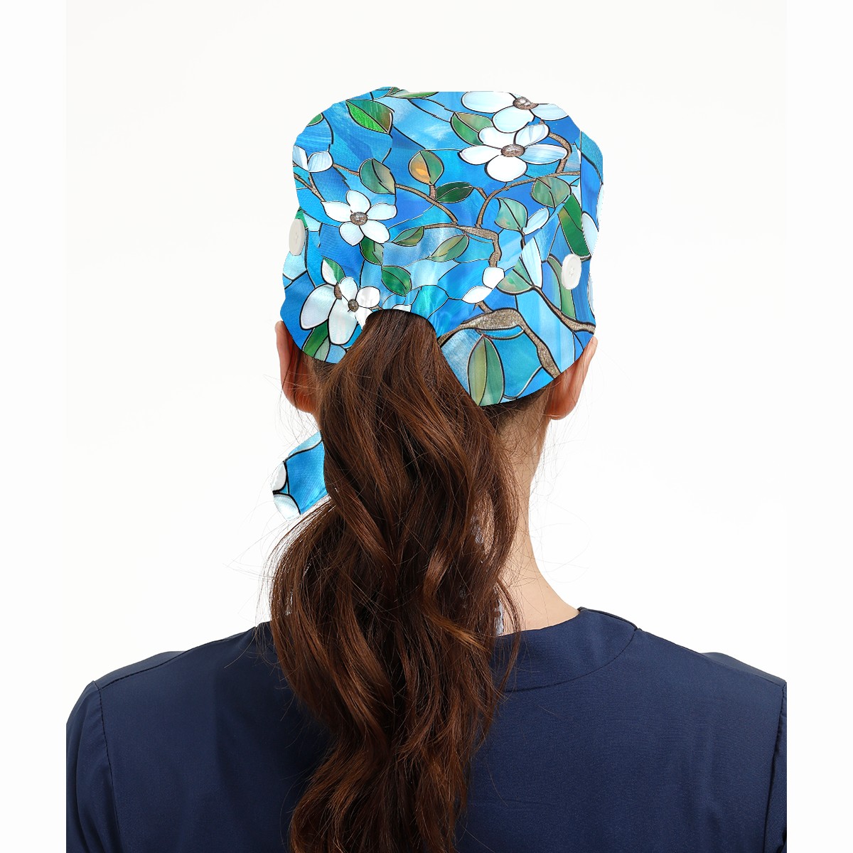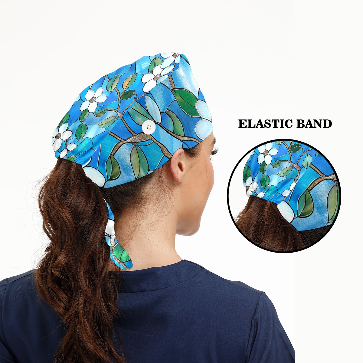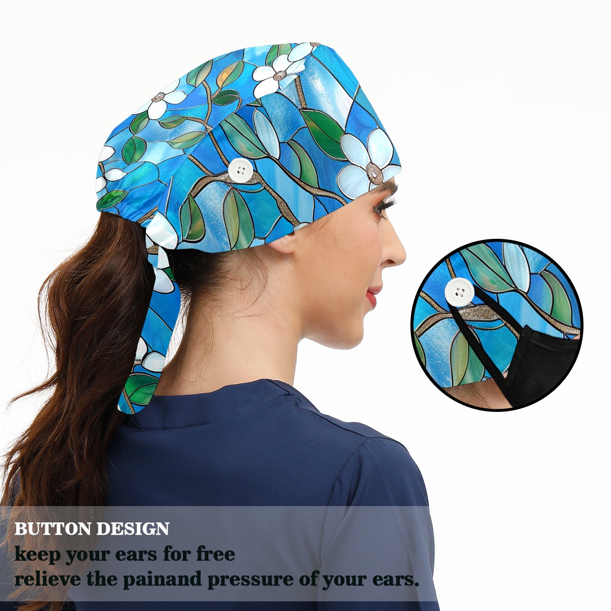 Working Caps with Button & Sweatband Satin Lined Cotton Adjustable Nurse Hats Elastic Band Scrub Cap Surgeon Hat Lily (6)