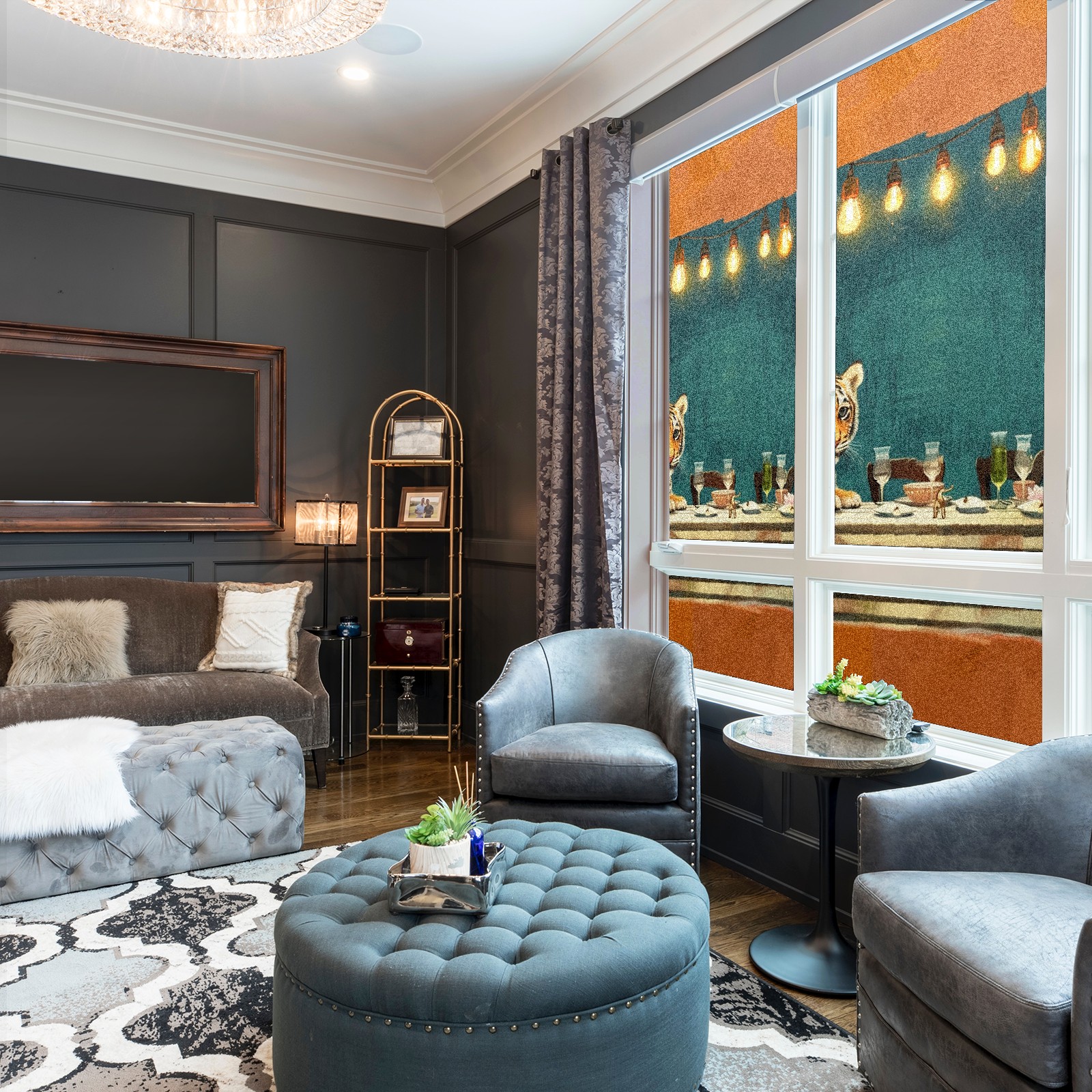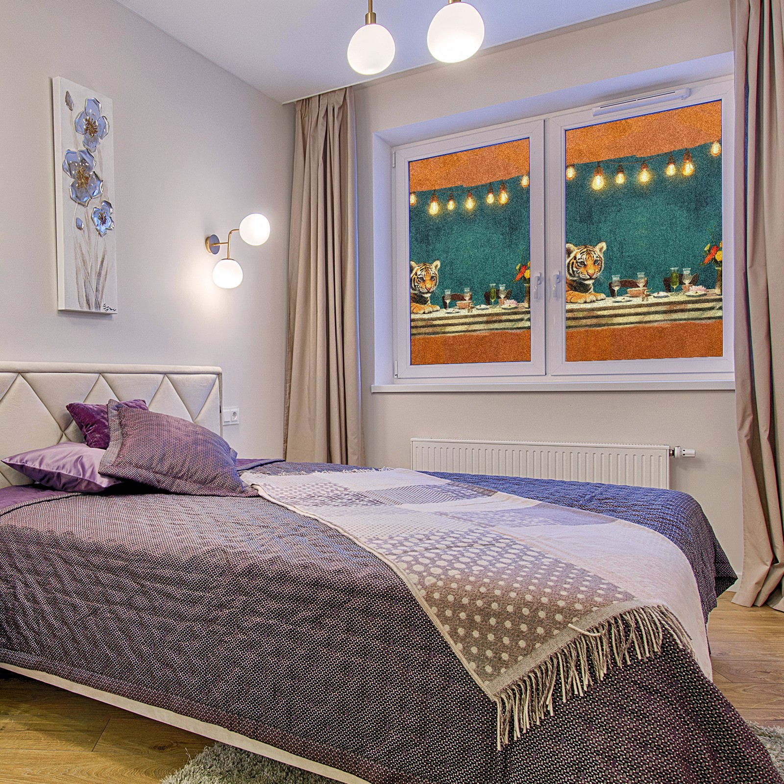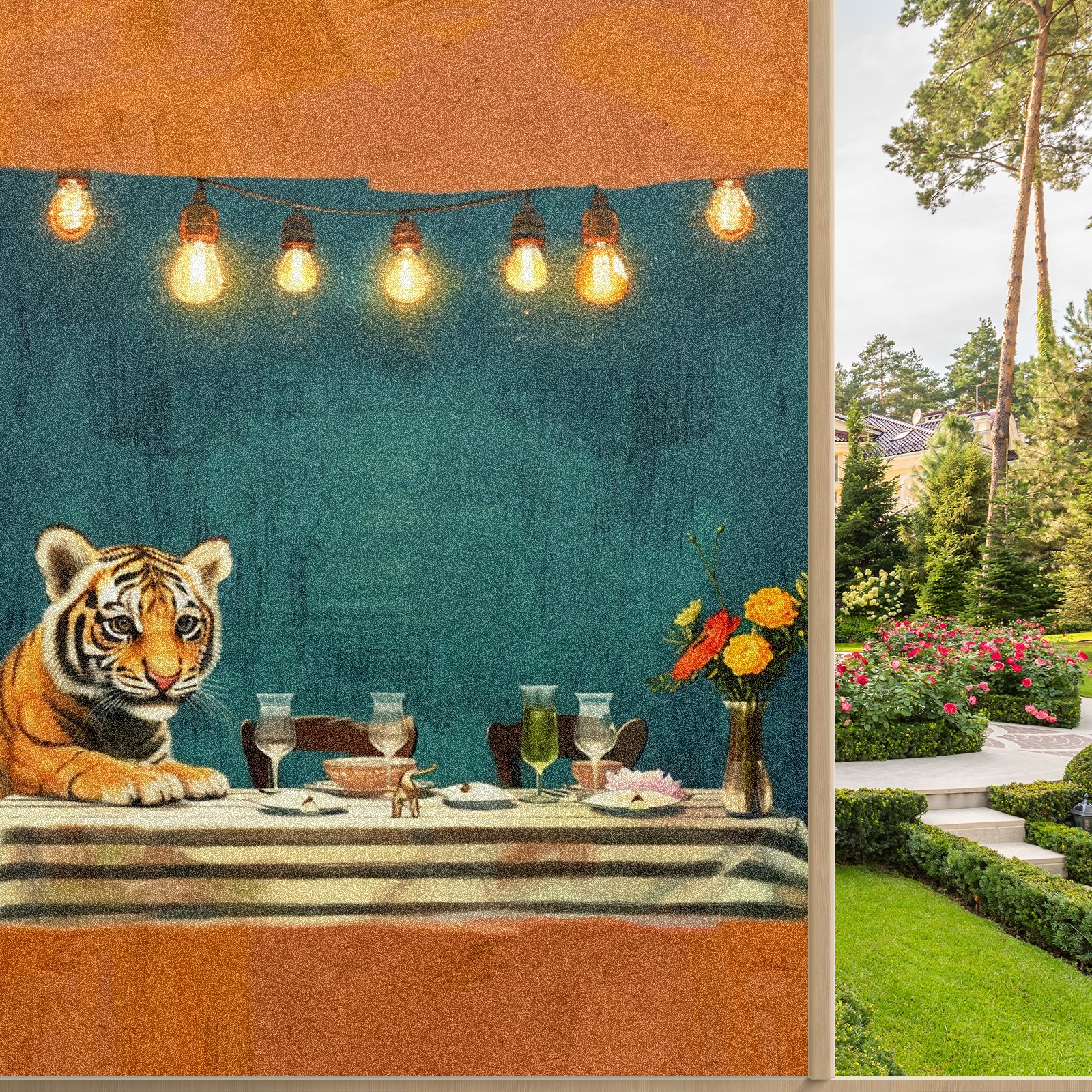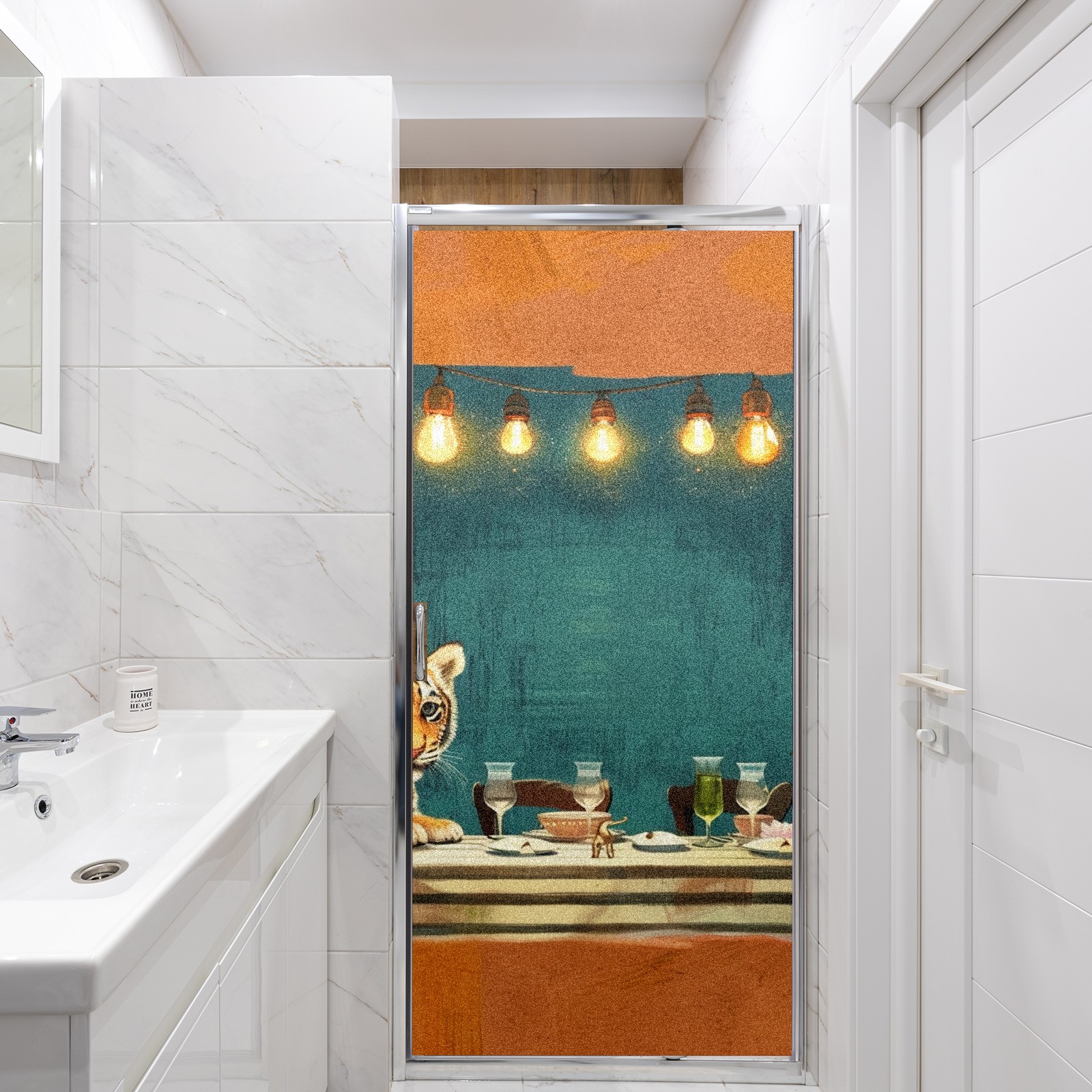 Static Cling Decorative Window Film Frosted Privacy Film Window Clings for Glass Windows No Glue Window Sticker for Bathroom Bedroom Office Tiger