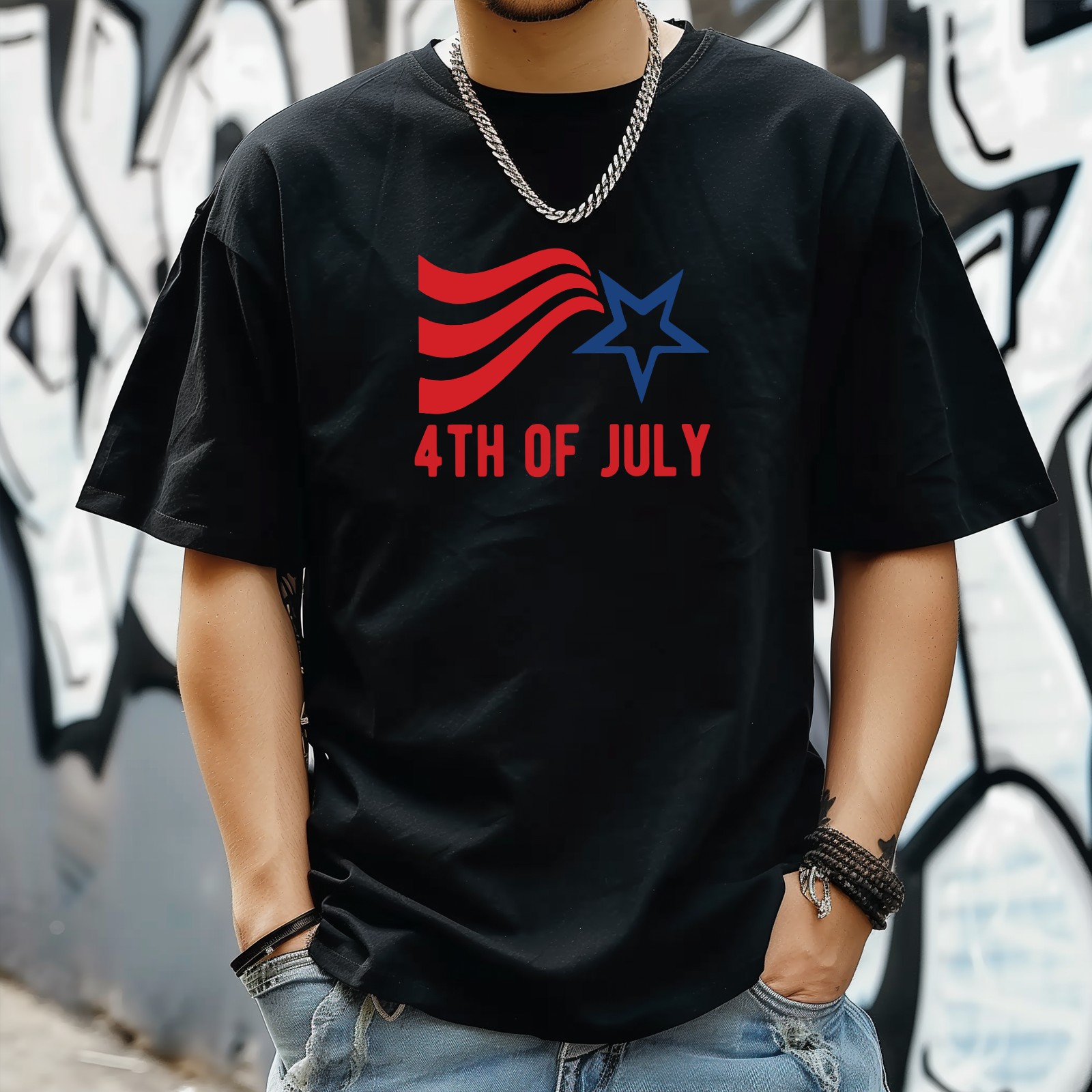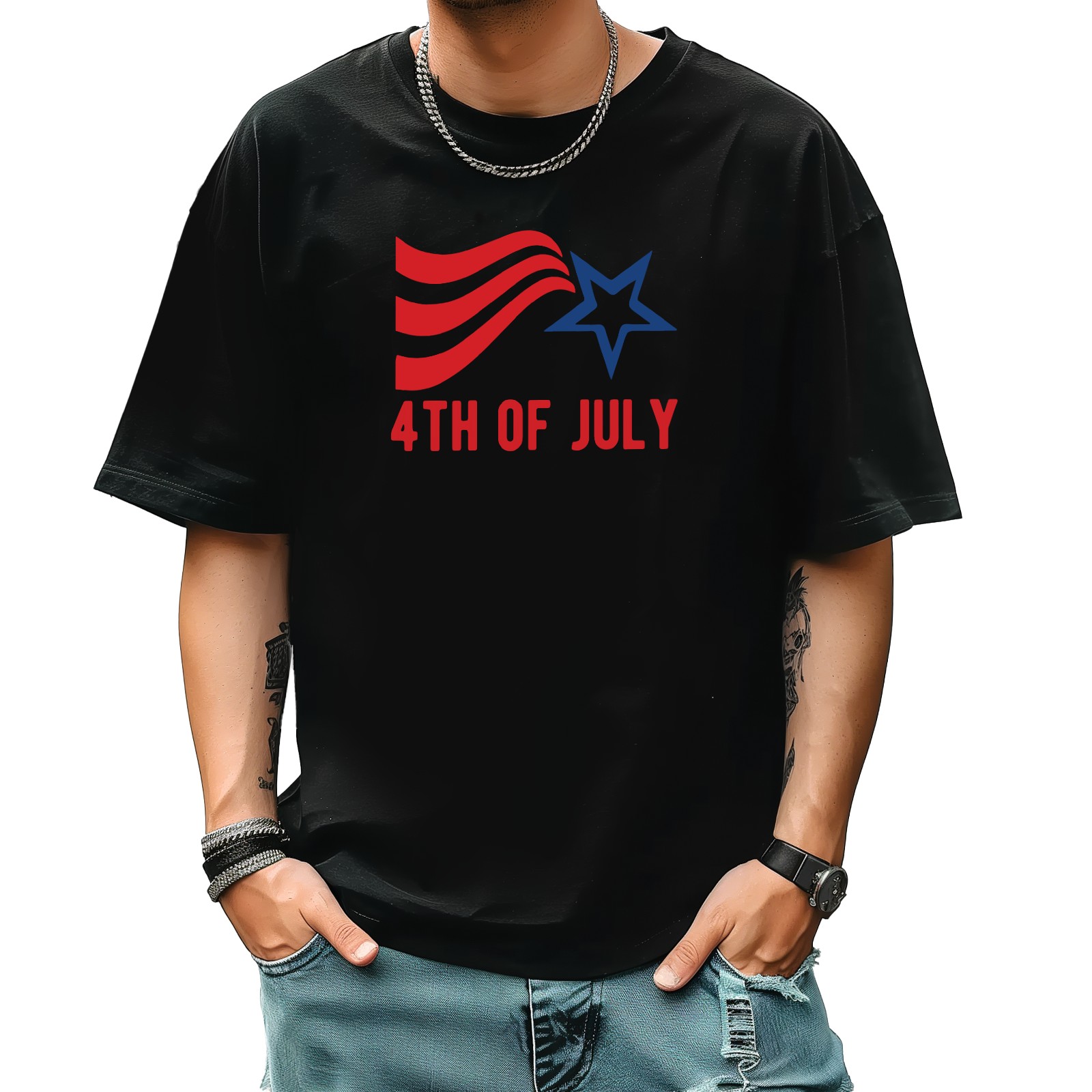 Happy July Independence Day (5) T-Shirt for Man Tops Short Sleeves Shirt Crew Neck Shirt XS