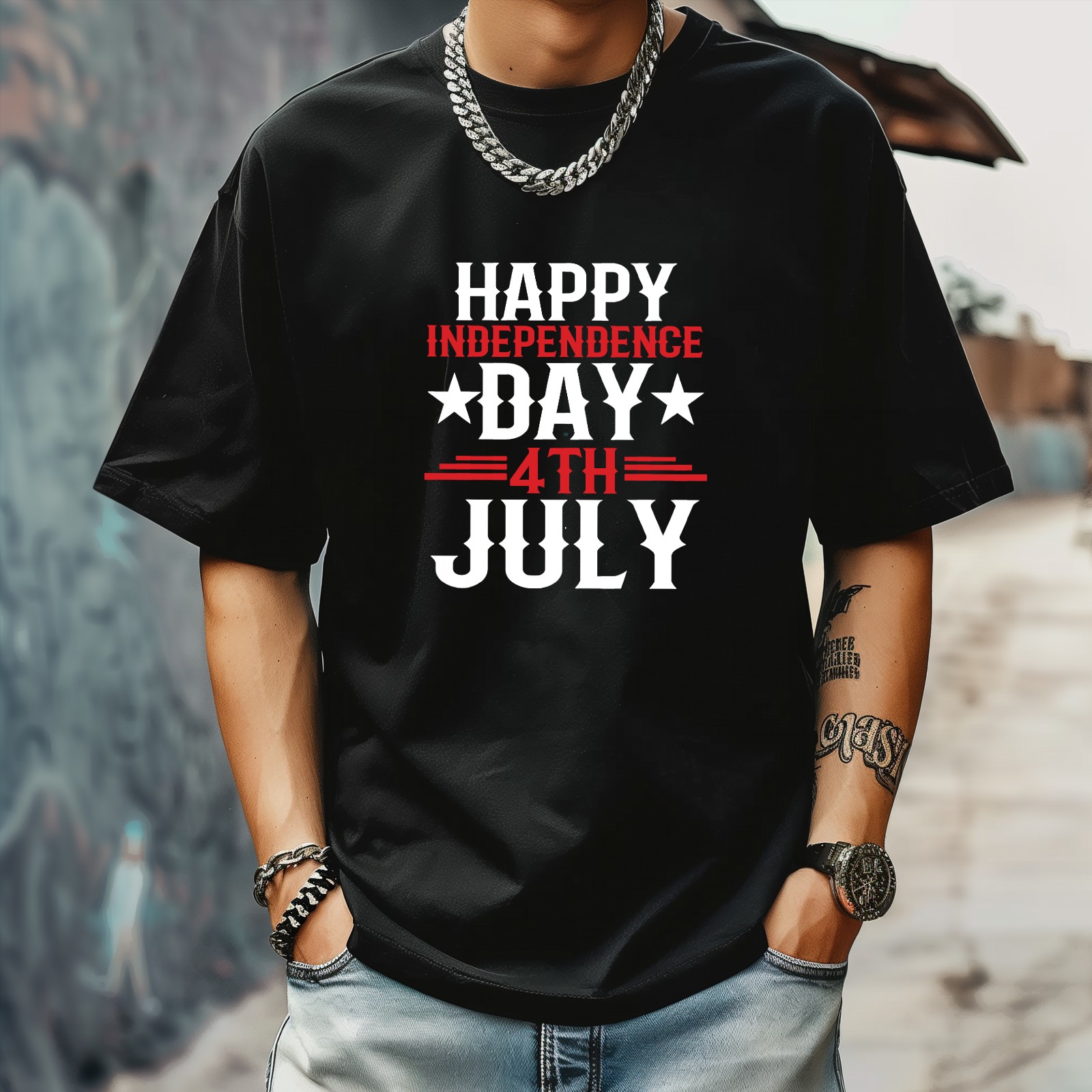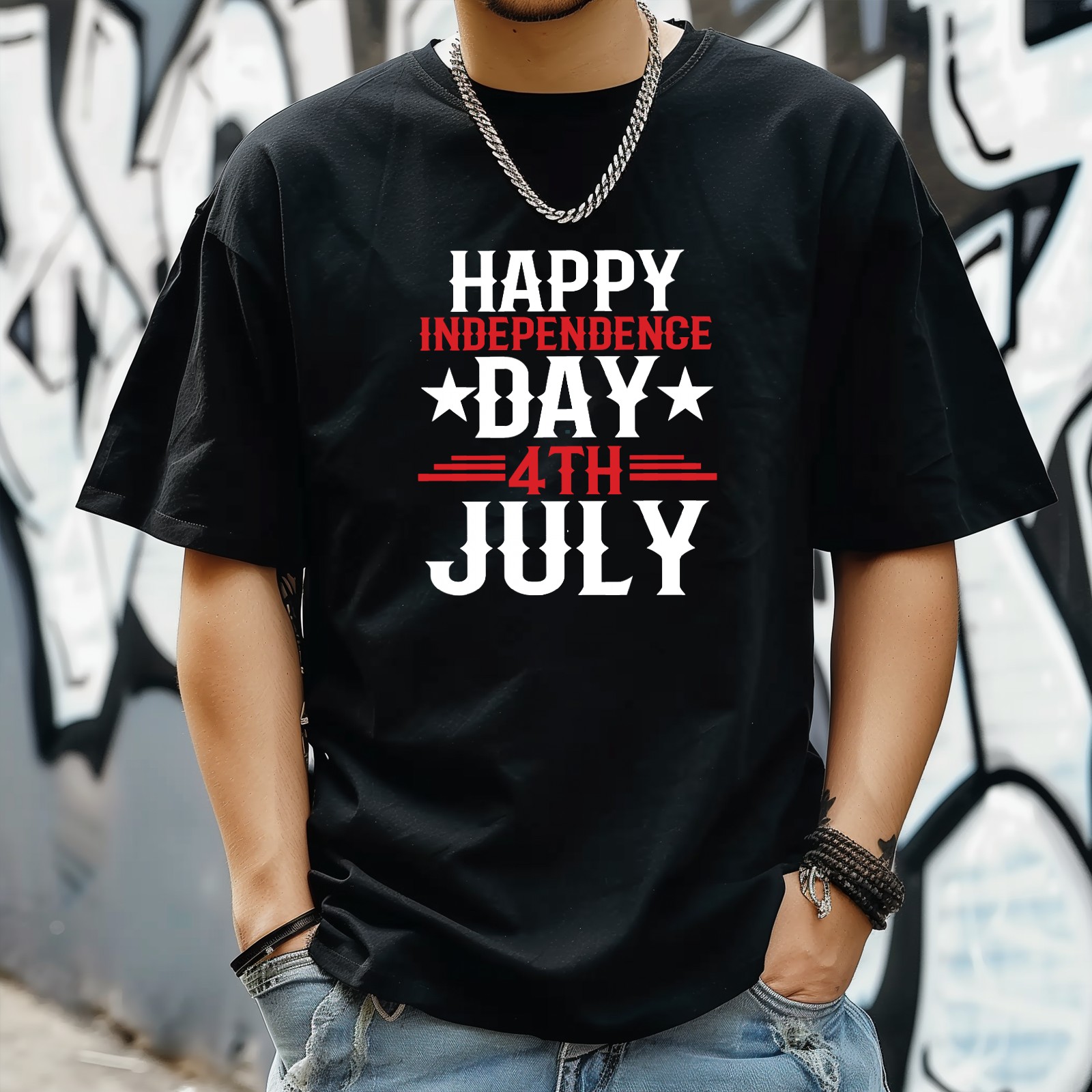 Happy July Independence Day (3) T-Shirt for Man Tops Short Sleeves Shirt Crew Neck Shirt XS