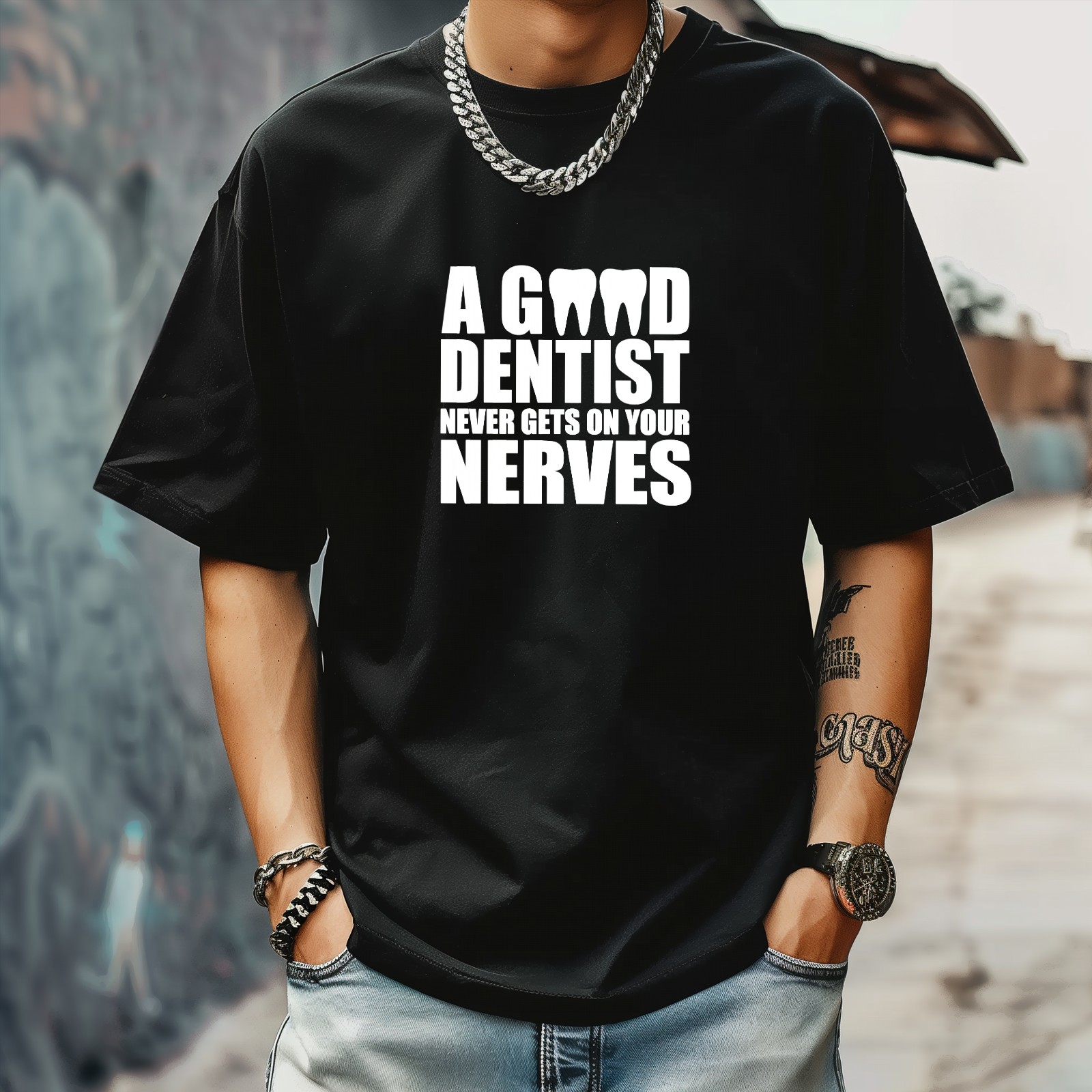 Good Dentist Never Gets On Your Nervess (4) T-Shirt for Man Tops Short Sleeves Shirt Crew Neck Shirt XS