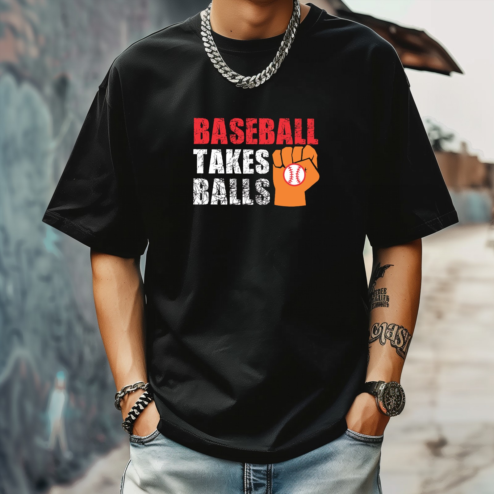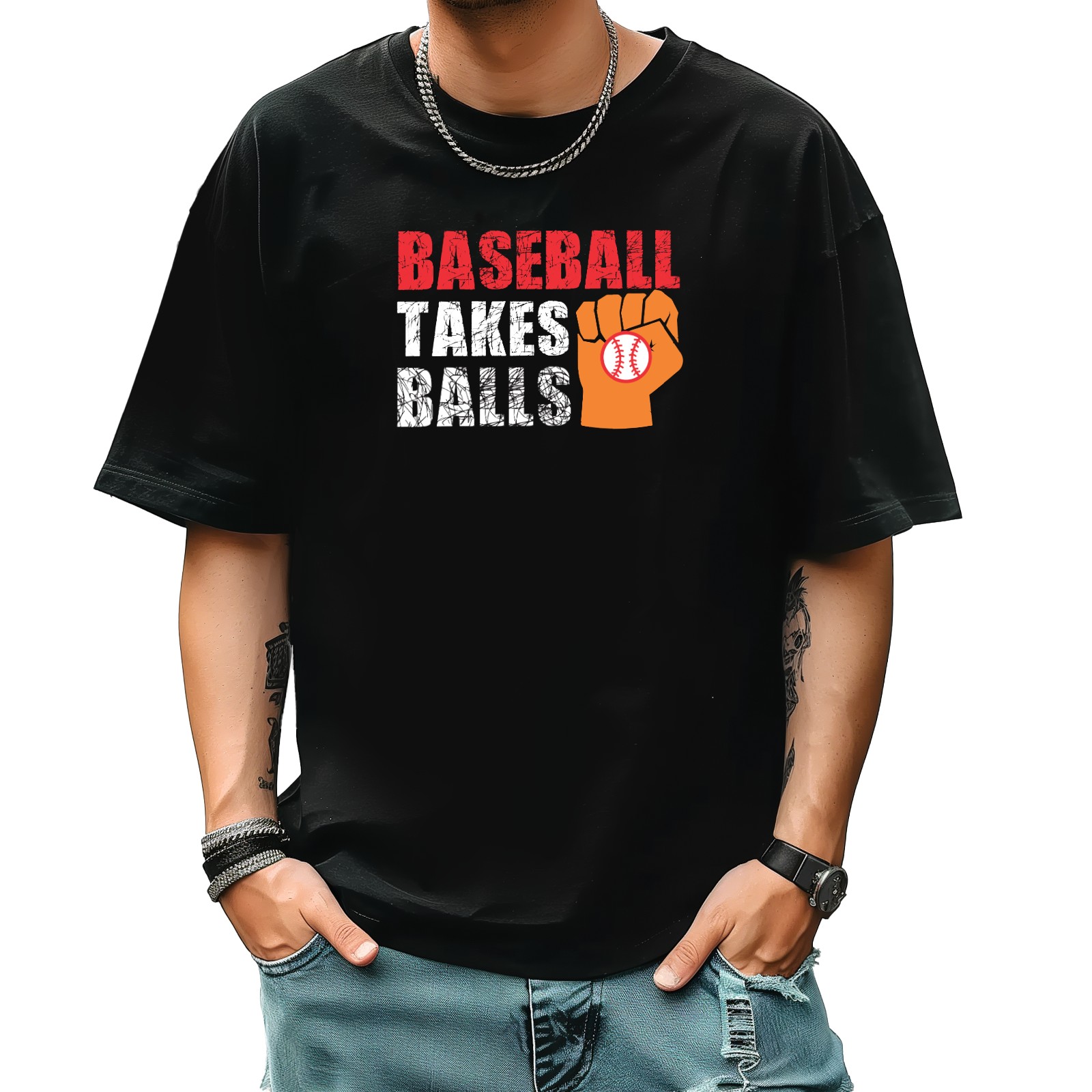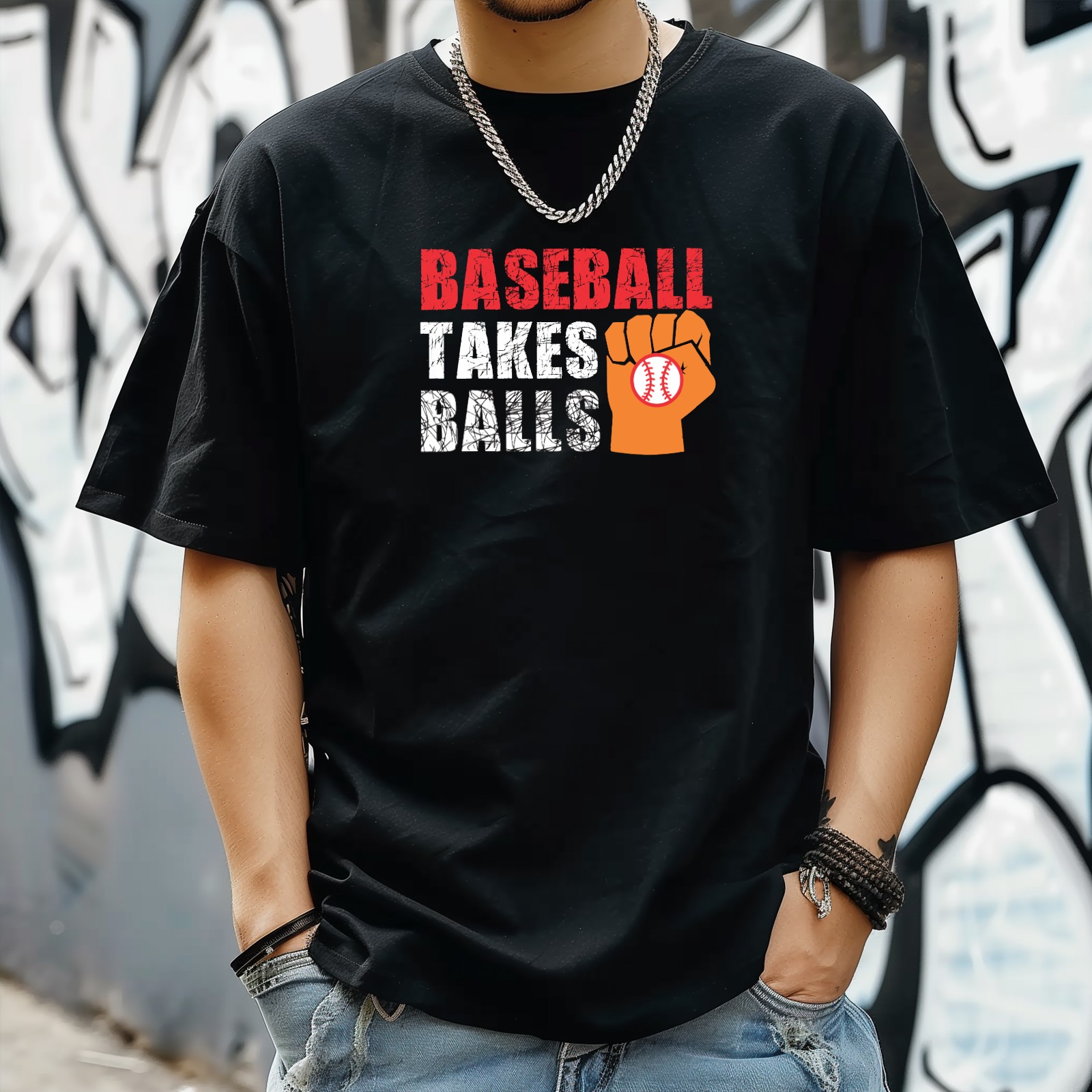 Baseball Takes Balls (2) T-Shirt for Man Tops Short Sleeves Shirt Crew Neck Shirt XS