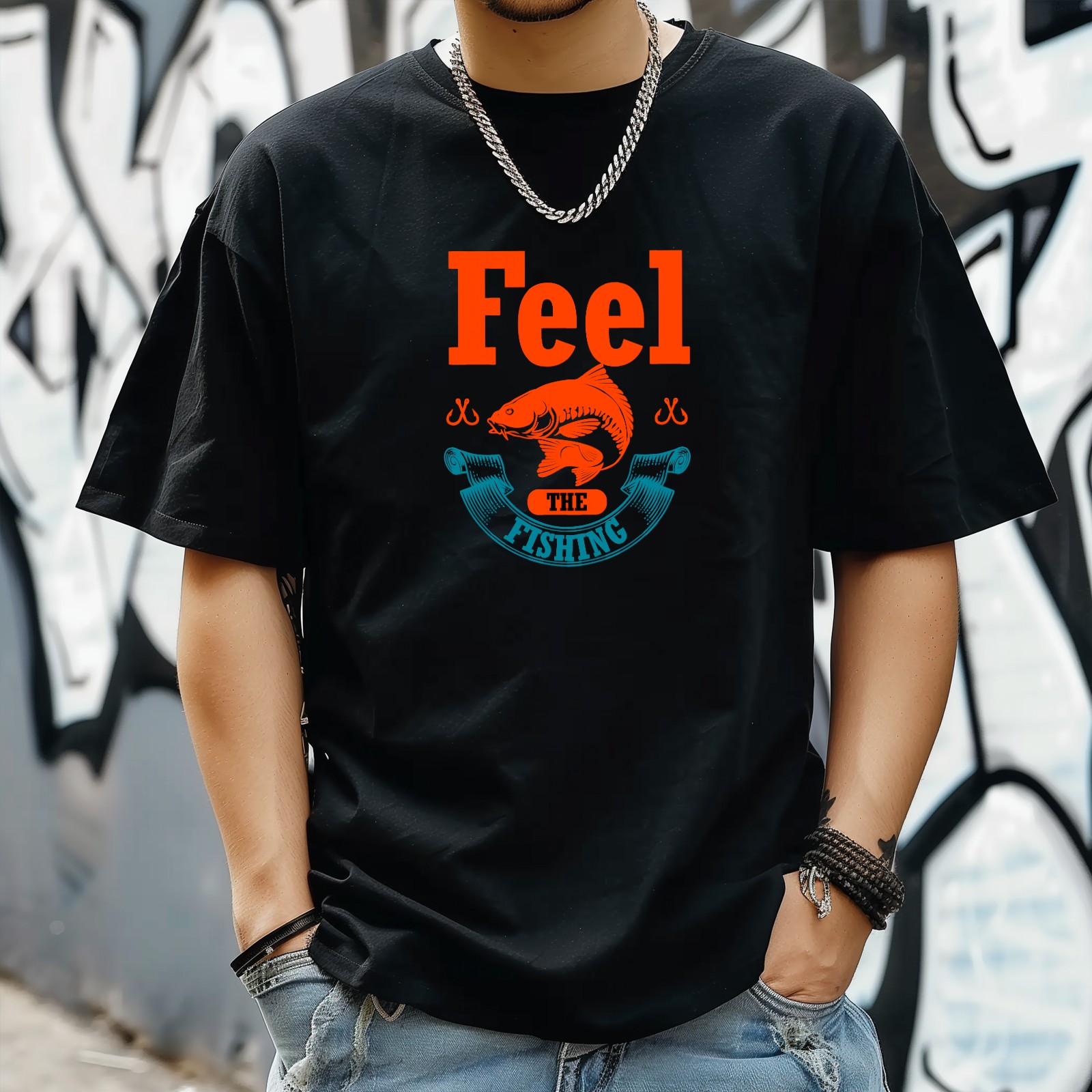 Feel The Fishing T-Shirt for Man Tops Short Sleeves Shirt Crew Neck Shirt XS