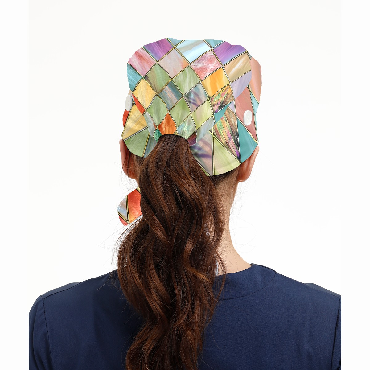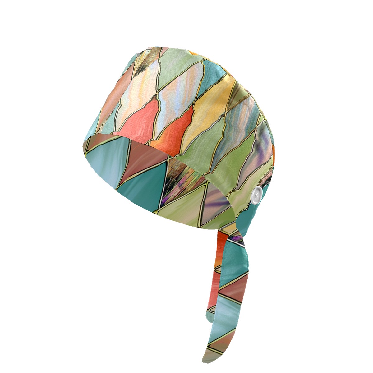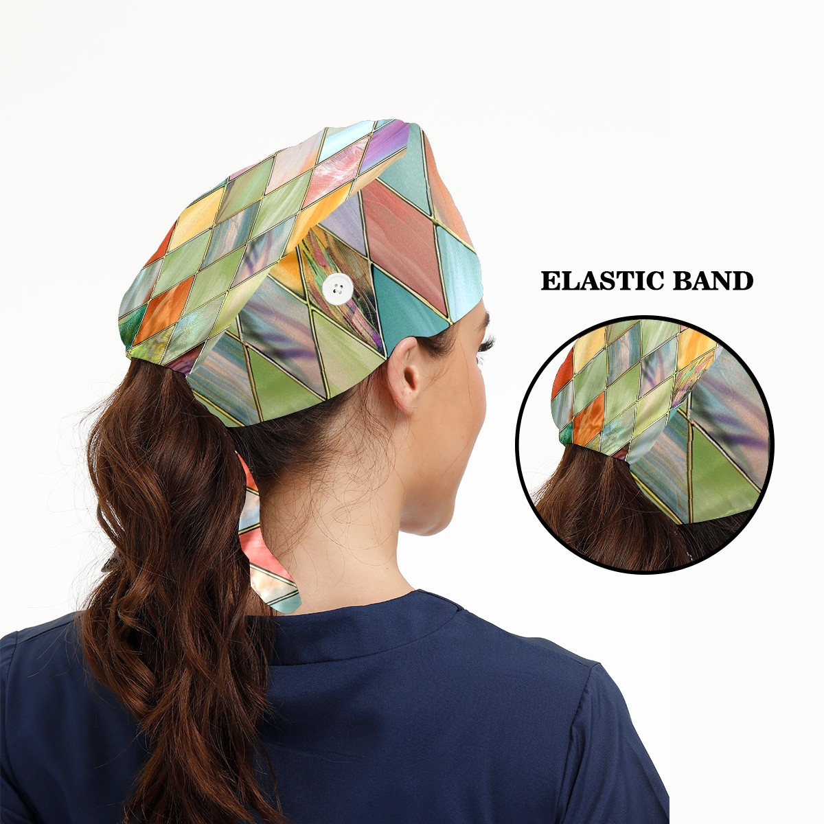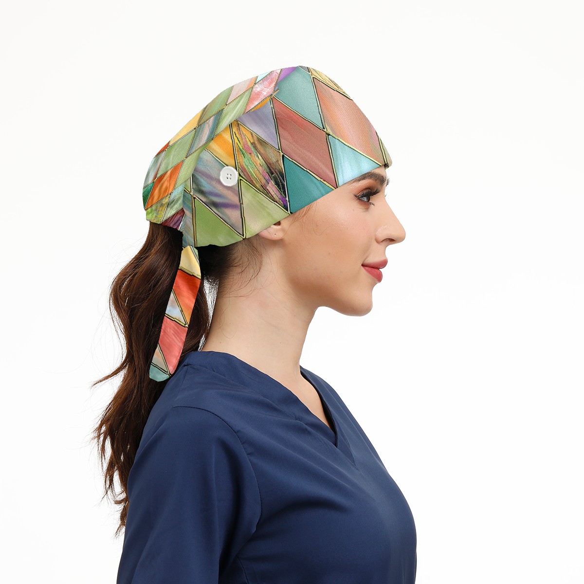 Working Caps with Button & Sweatband Satin Lined Cotton Adjustable Nurse Hats Elastic Band Scrub Cap Surgeon Hat Color Lattice (5)