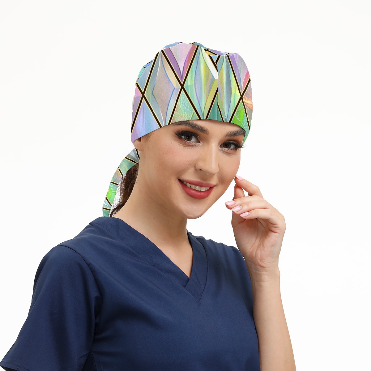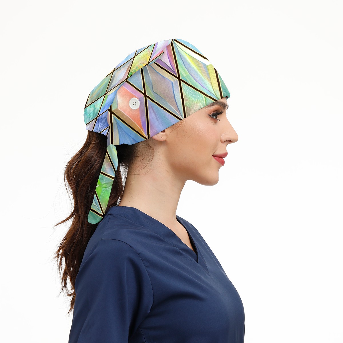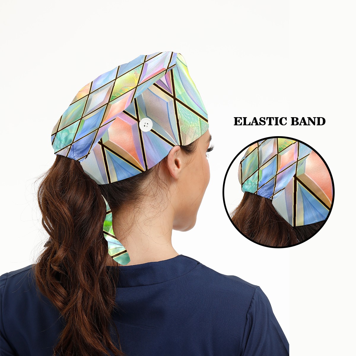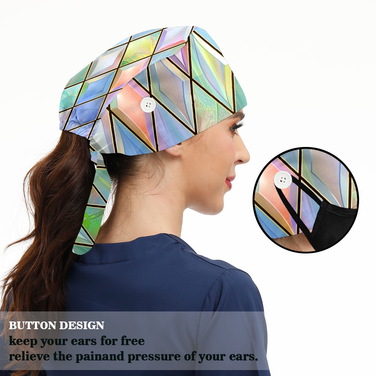 Working Caps with Button & Sweatband Satin Lined Cotton Adjustable Nurse Hats Elastic Band Scrub Cap Surgeon Hat Color Lattice (4)
