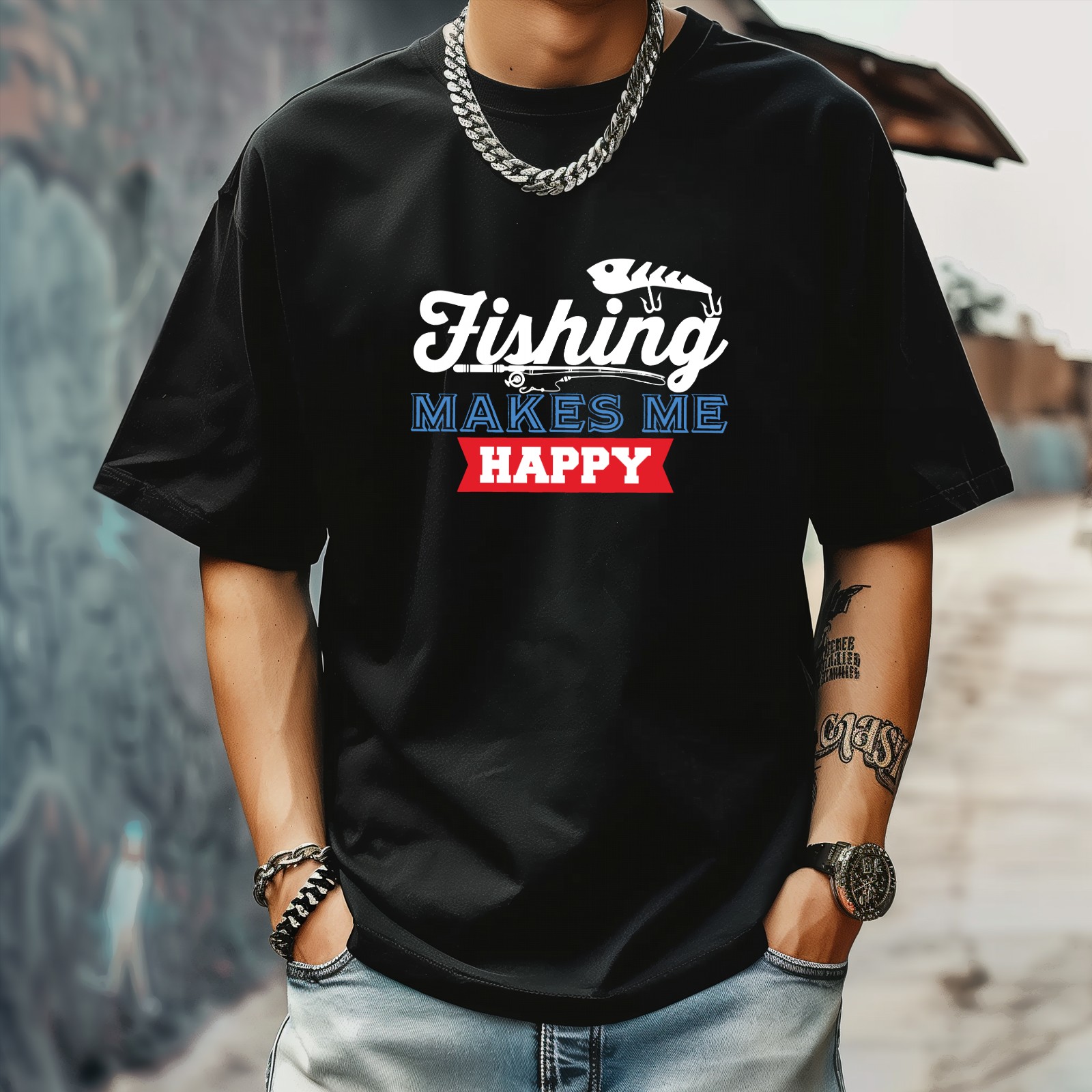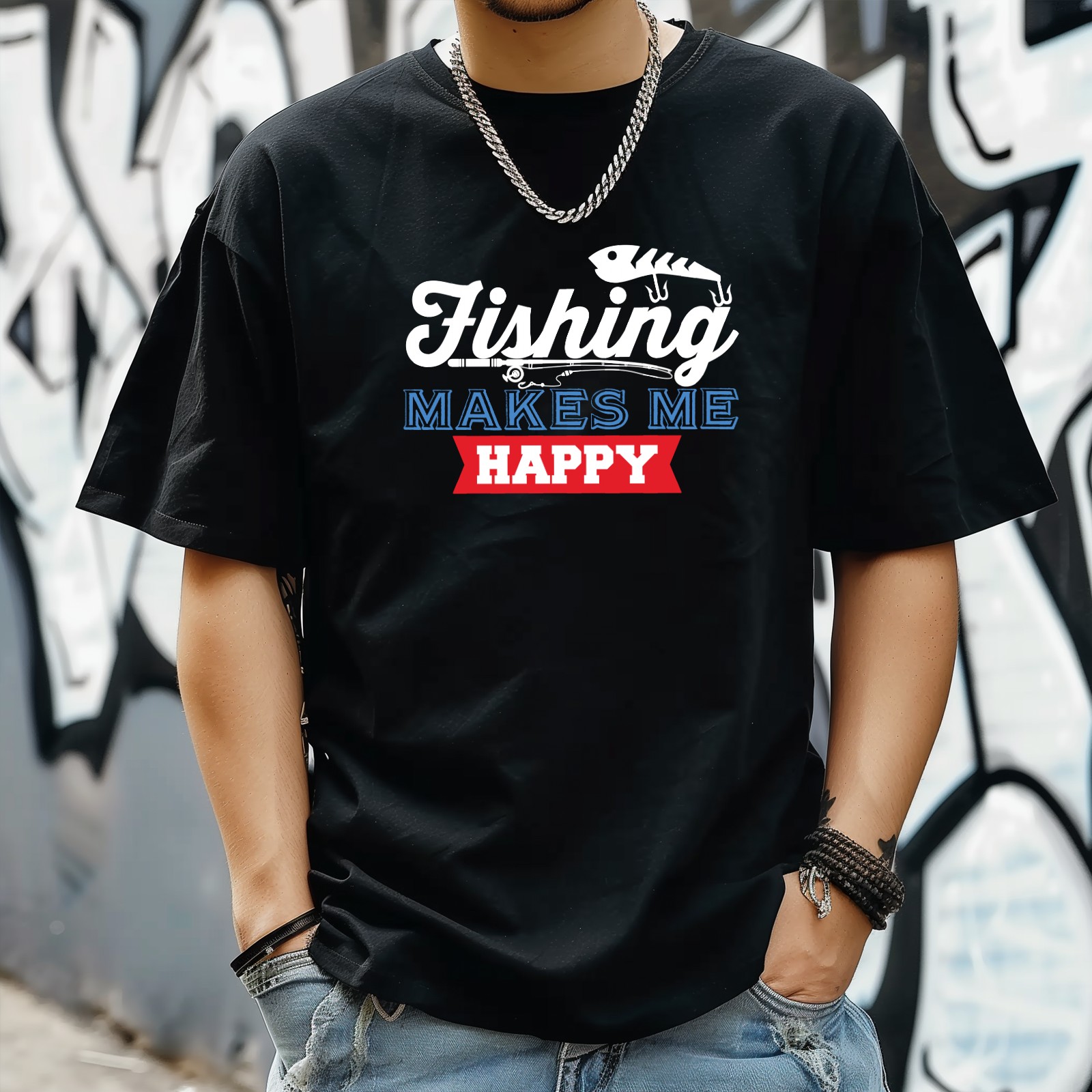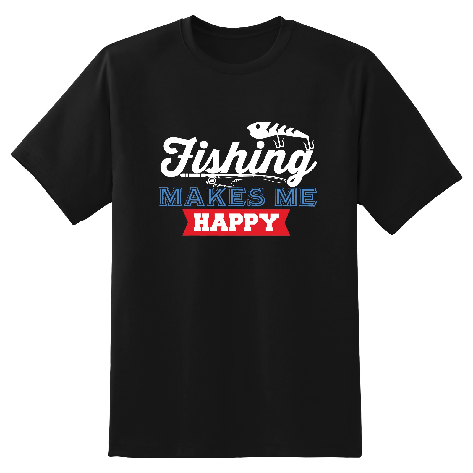 Fishing Make Me Happy T-Shirt for Man Tops Short Sleeves Shirt Crew Neck Shirt XS