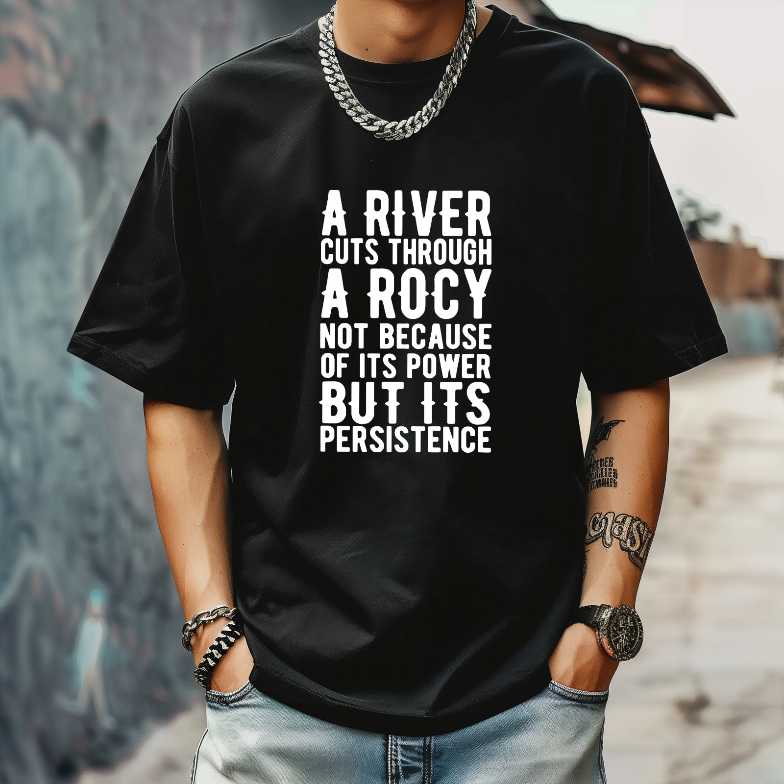 A River Cuts Through A Roky T-Shirt for Man Tops Short Sleeves Shirt Crew Neck Shirt XS