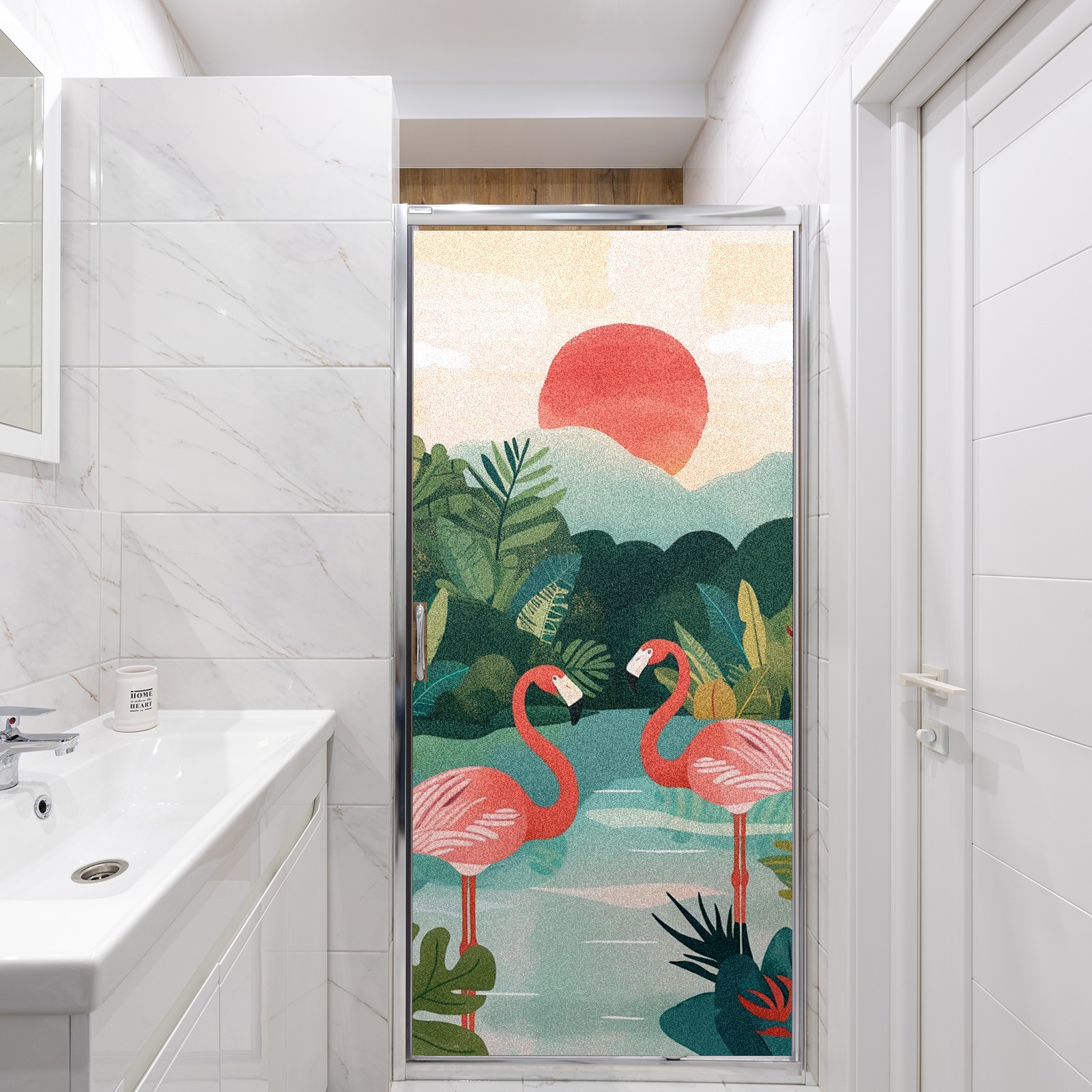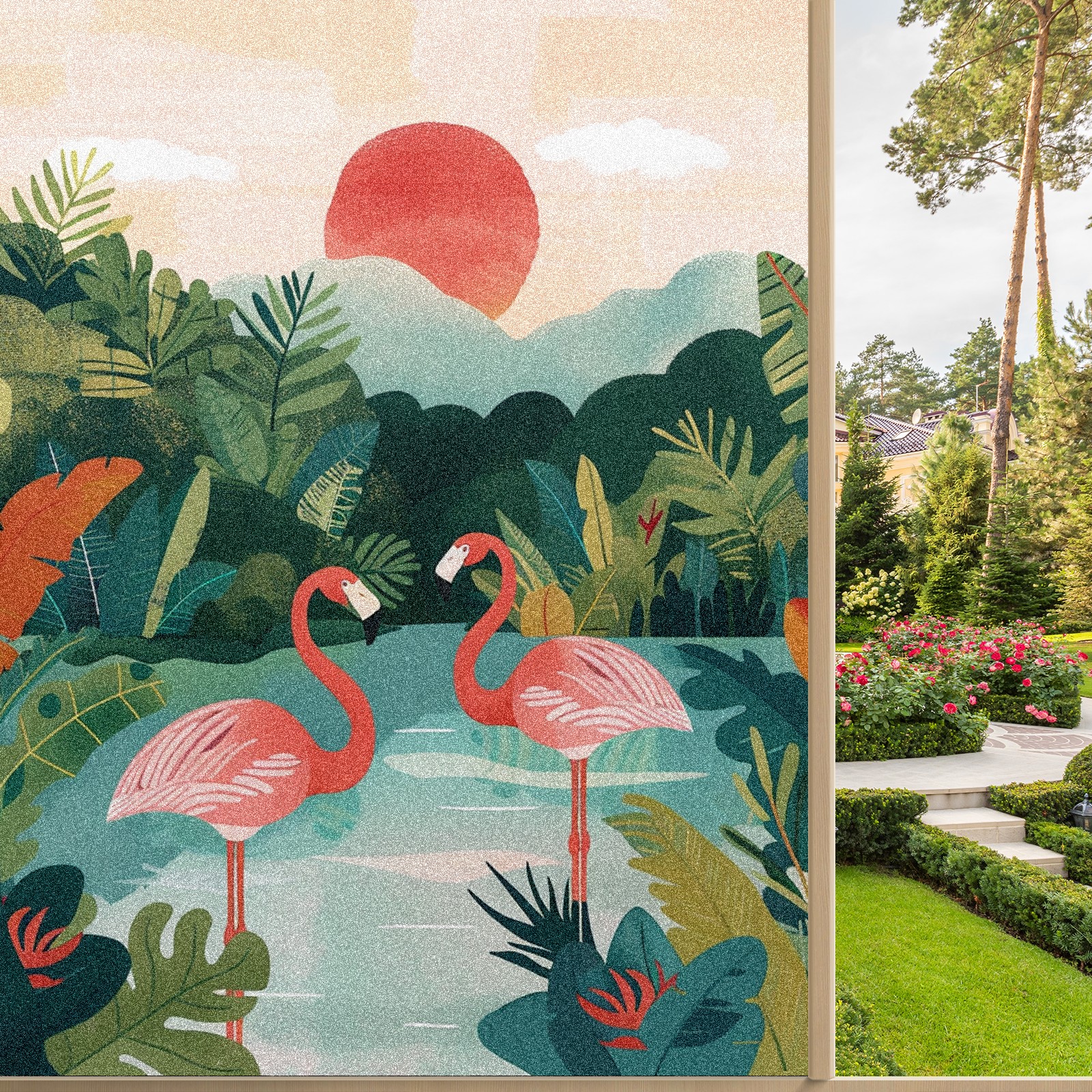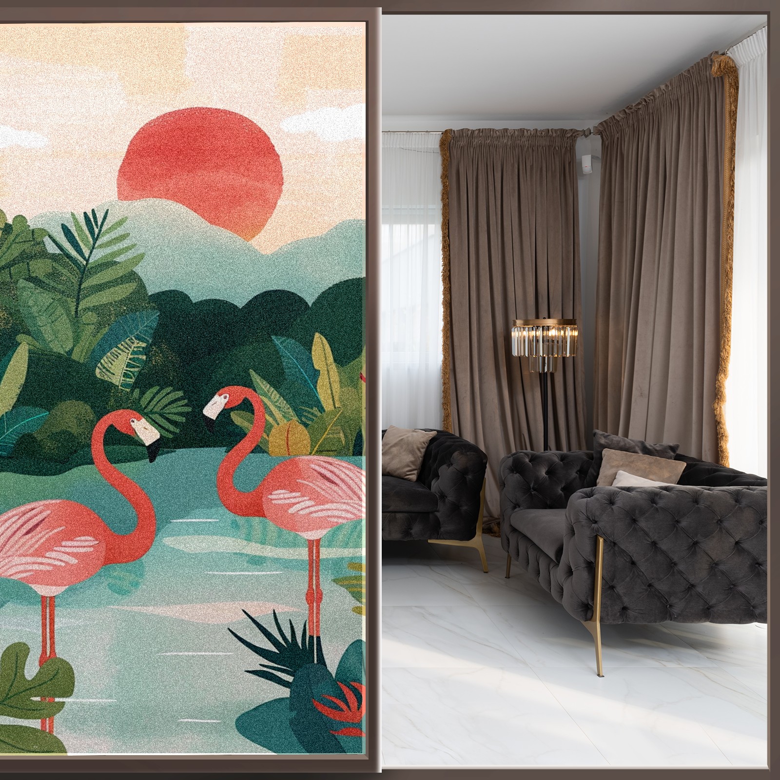 Static Cling Decorative Window Film Frosted Privacy Film Window Clings for Glass Windows No Glue Window Sticker for Bathroom Bedroom Office Crane