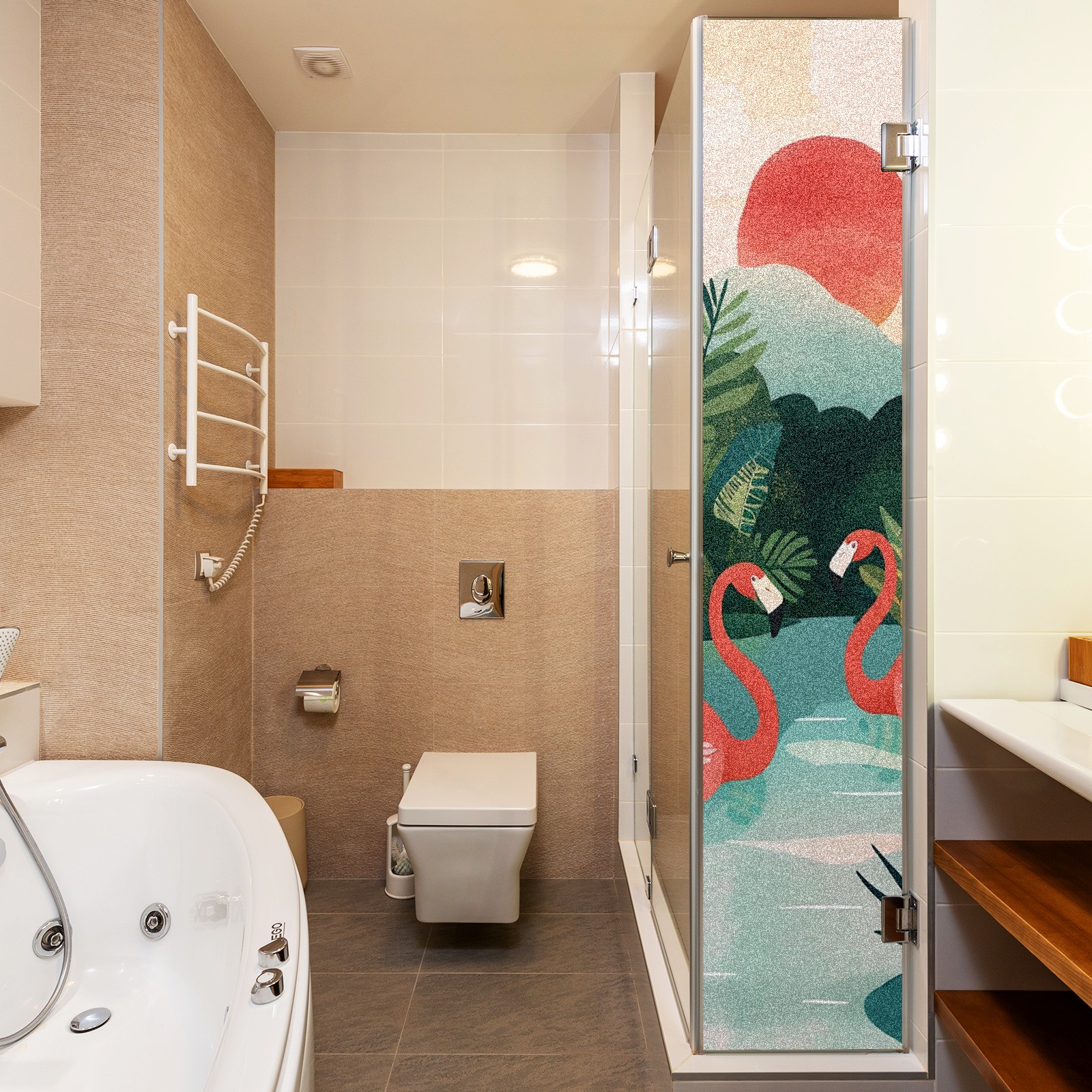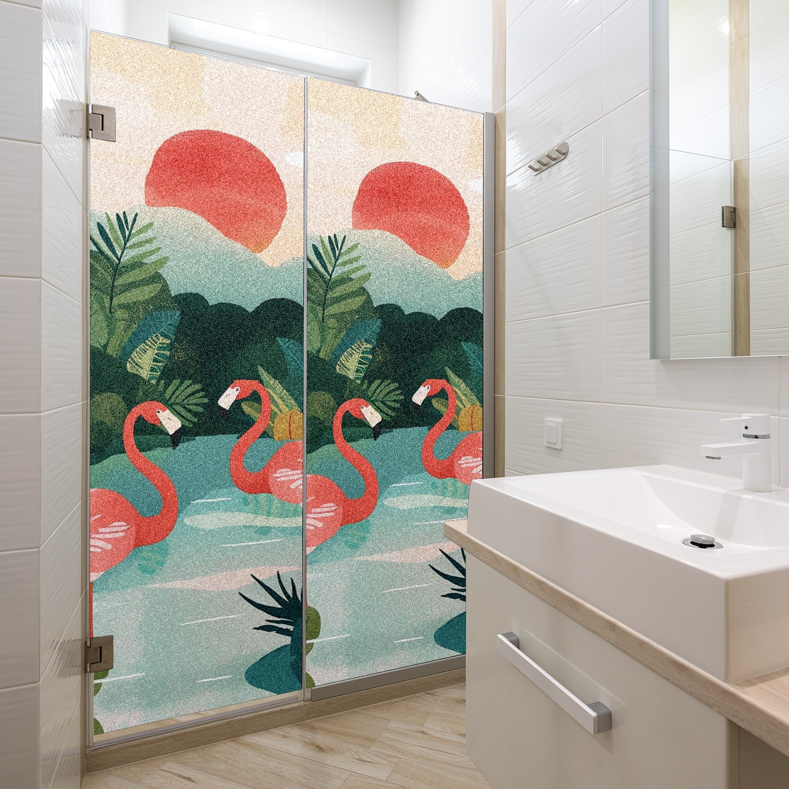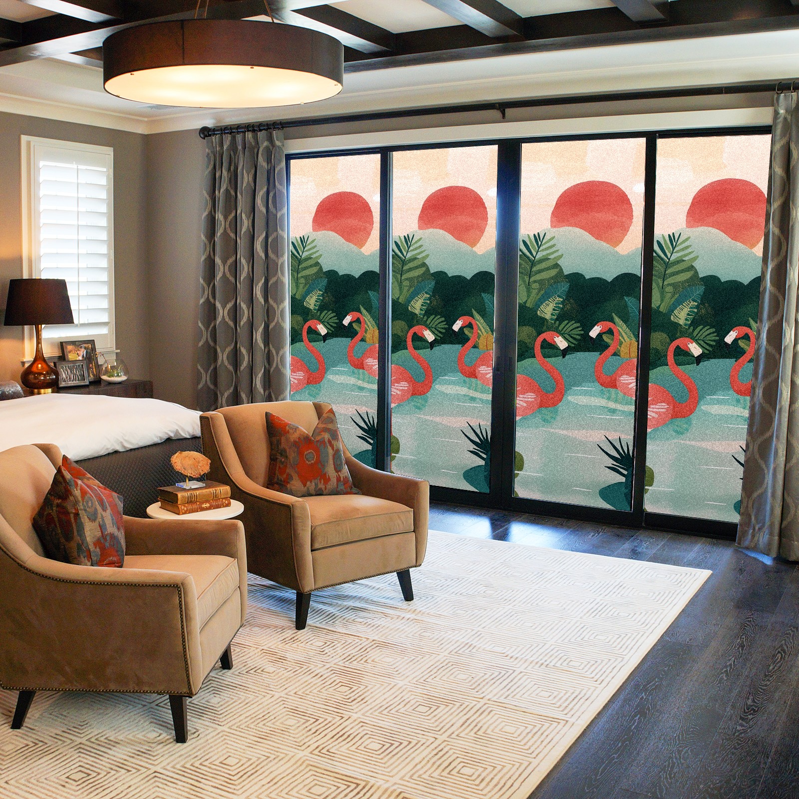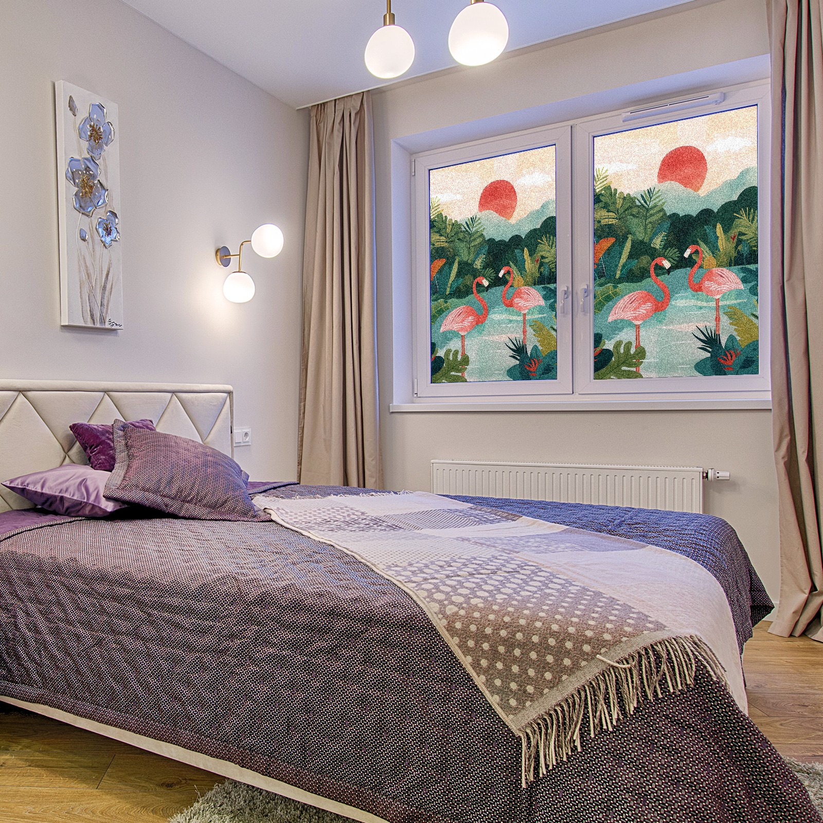 Static Cling Decorative Window Film Frosted Privacy Film Window Clings for Glass Windows No Glue Window Sticker for Bathroom Bedroom Office Crane