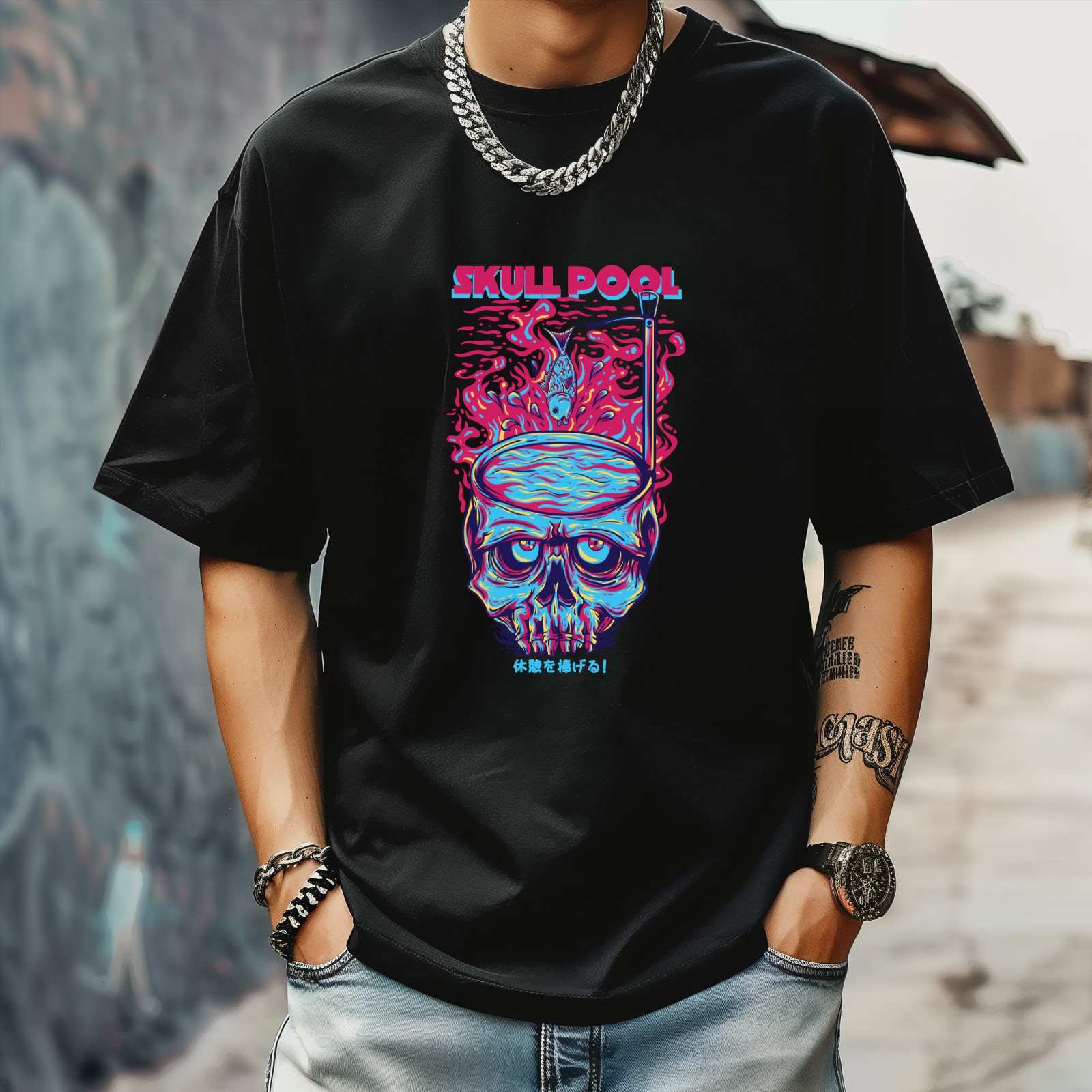 Skull Pool T-Shirt for Man Tops Short Sleeves Shirt Crew Neck Shirt XS