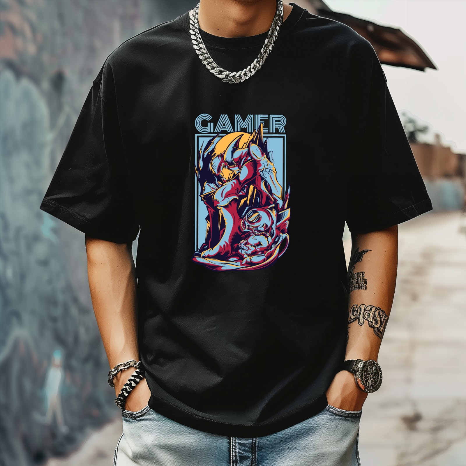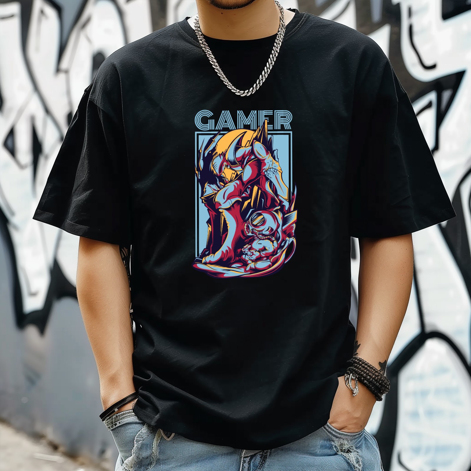 Gamer T-Shirt for Man Tops Short Sleeves Shirt Crew Neck Shirt XS