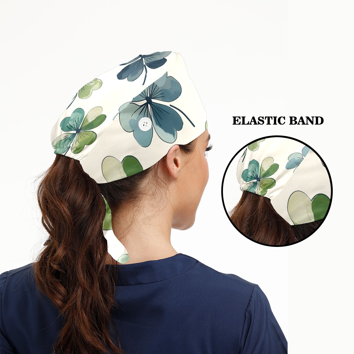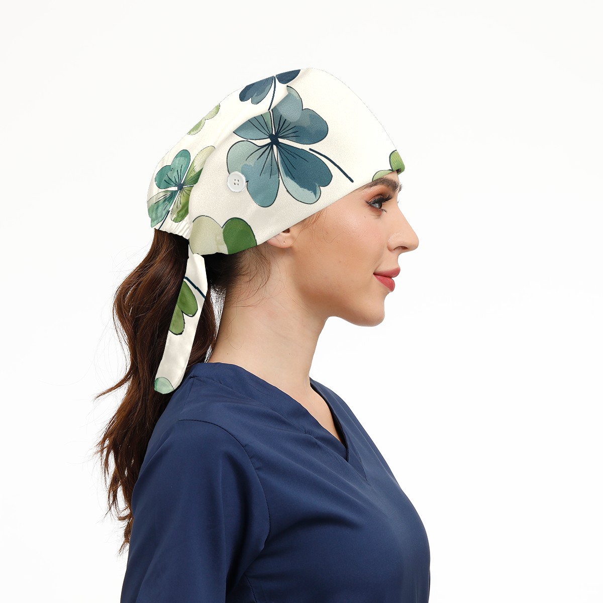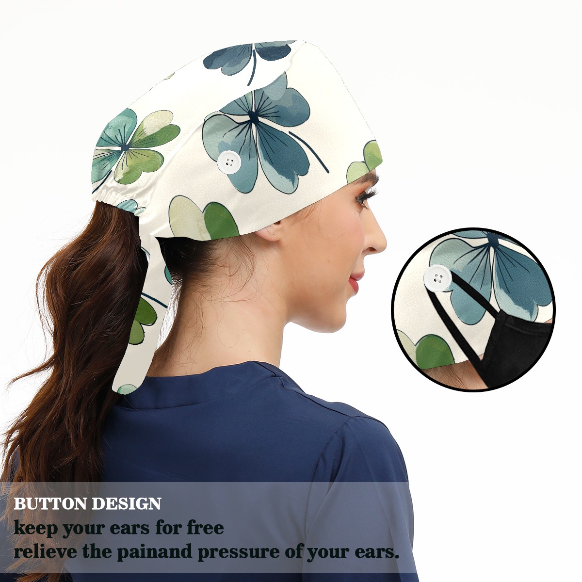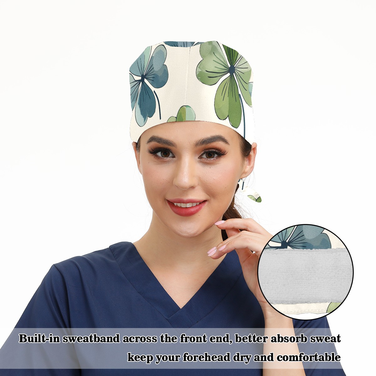 Working Caps with Button & Sweatband Satin Lined Cotton Adjustable Nurse Hats Elastic Band Scrub Cap Surgeon Hat St. Patrick's Day