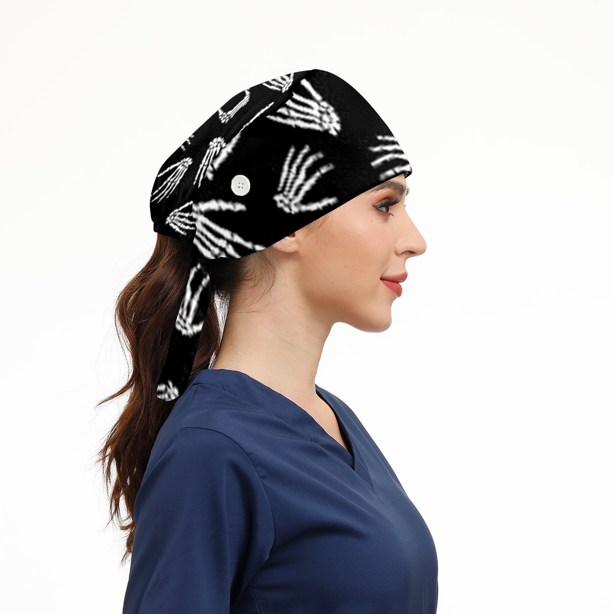 Working Caps with Button & Sweatband Satin Lined Cotton Adjustable Nurse Hats Elastic Band Scrub Cap Surgeon Hat Finger