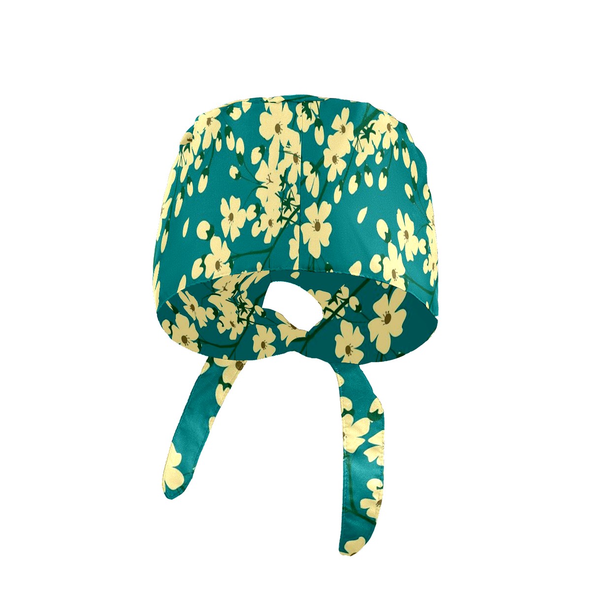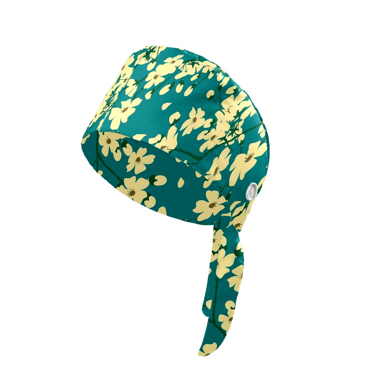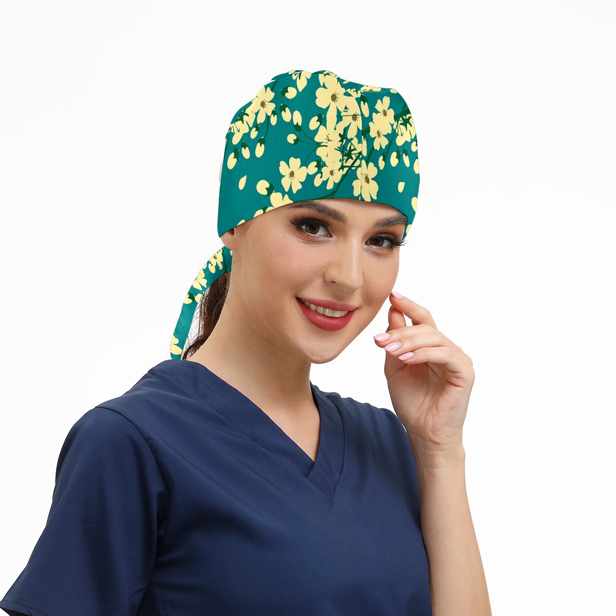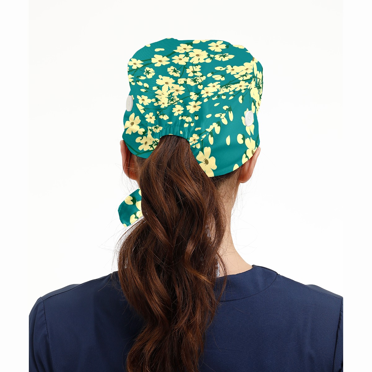 Working Caps with Button & Sweatband Satin Lined Cotton Adjustable Nurse Hats Elastic Band Scrub Cap Surgeon Hat Floral (5)
