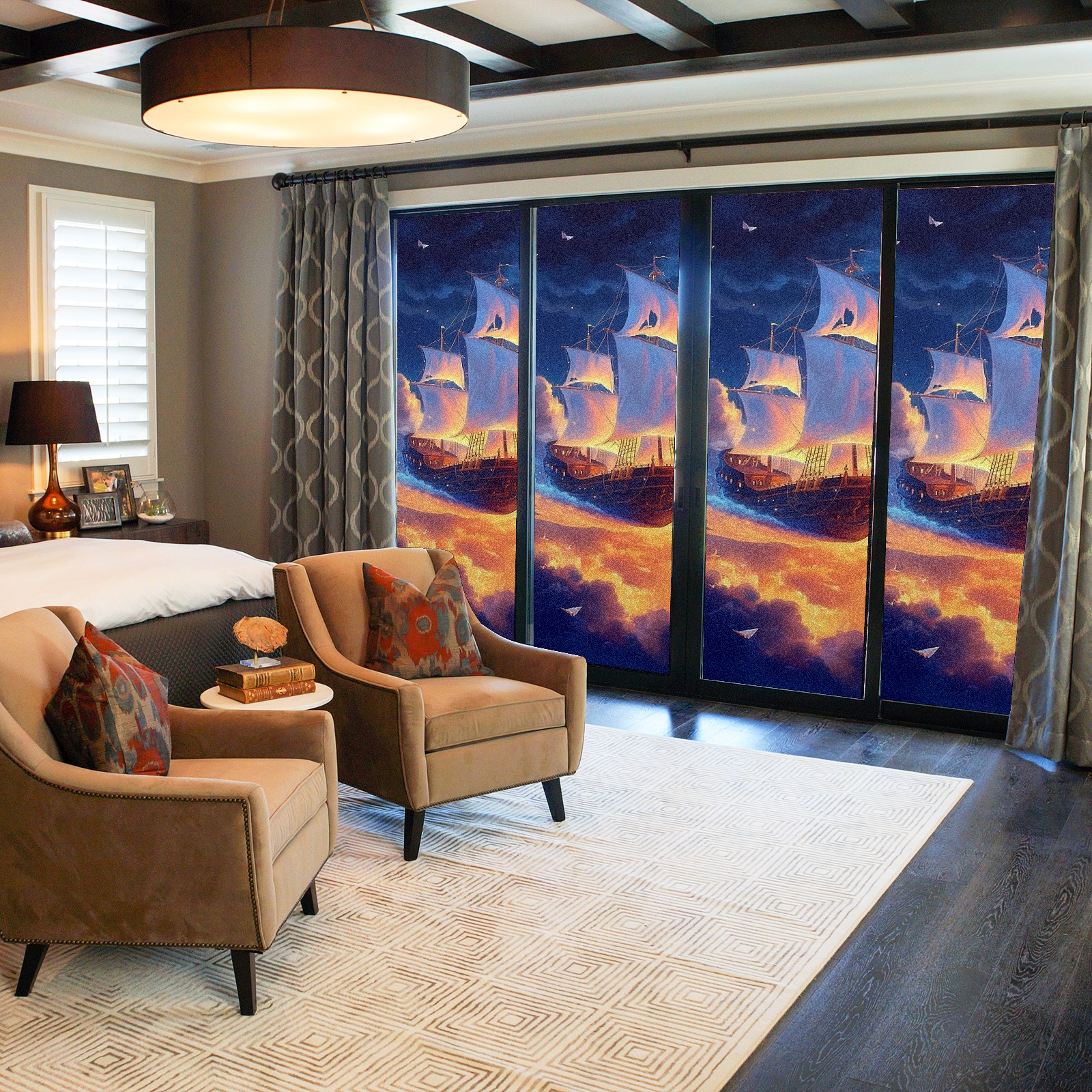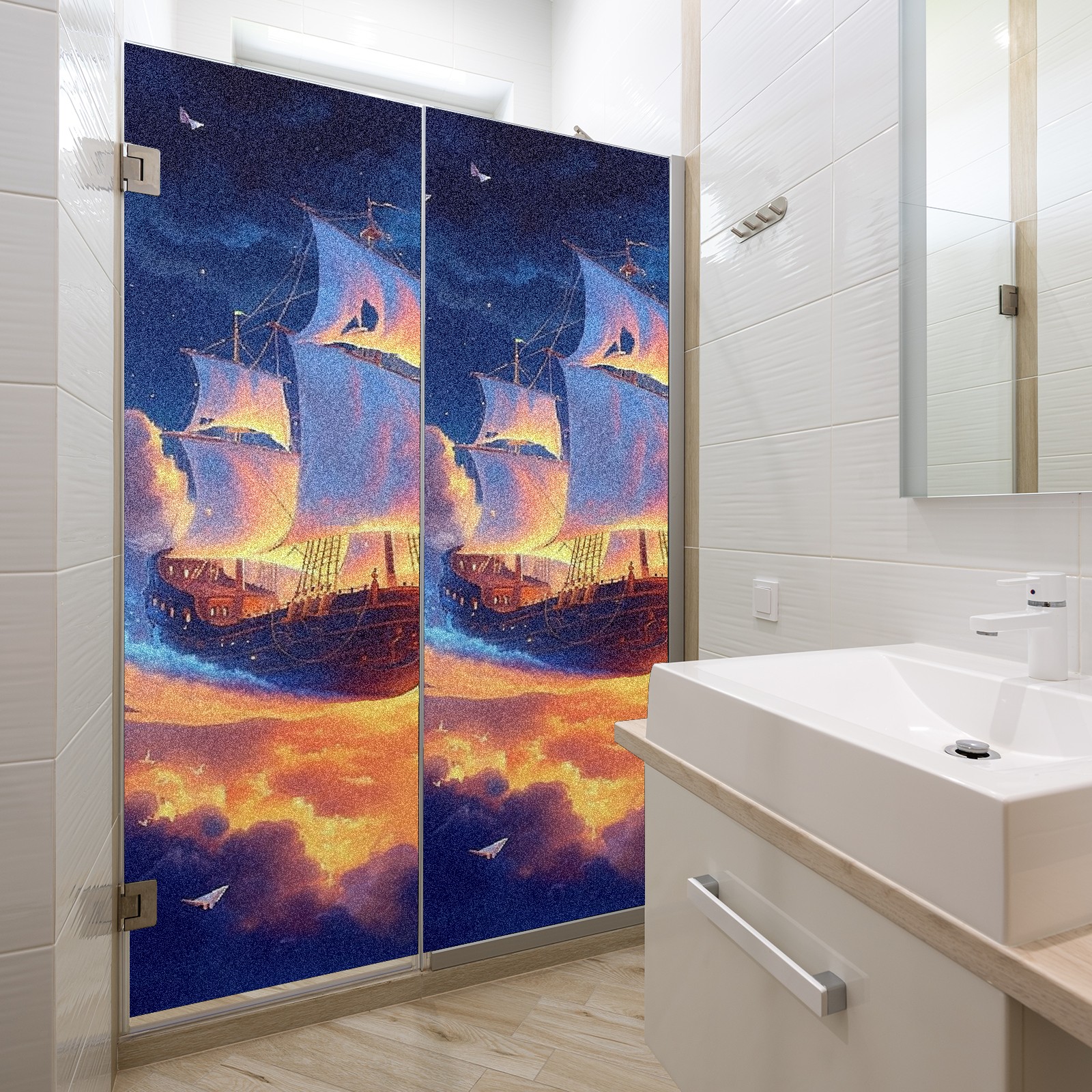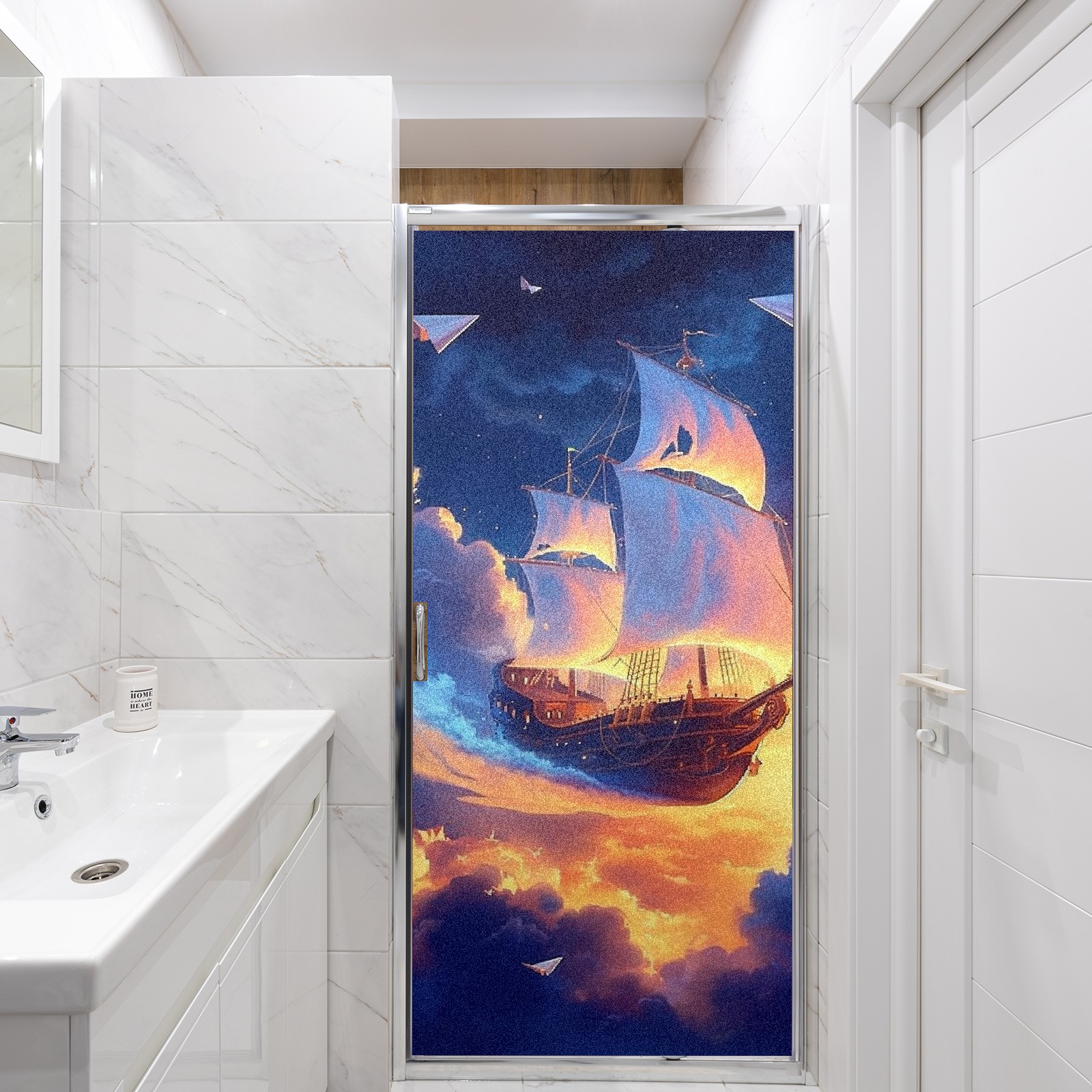 Static Cling Decorative Window Film Frosted Privacy Film Window Clings for Glass Windows No Glue Window Sticker for Bathroom Bedroom Office Sailboats