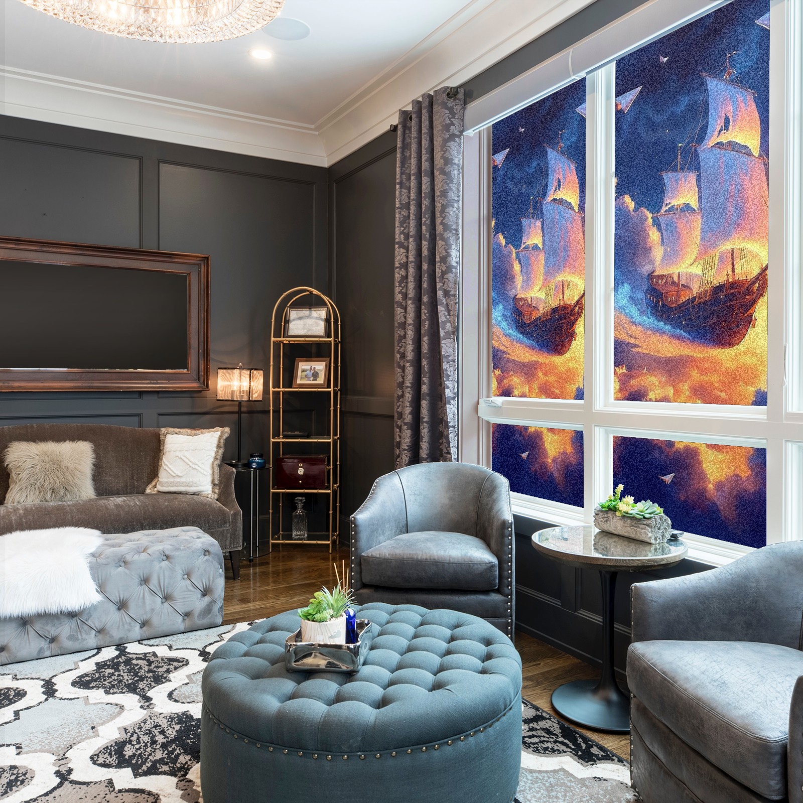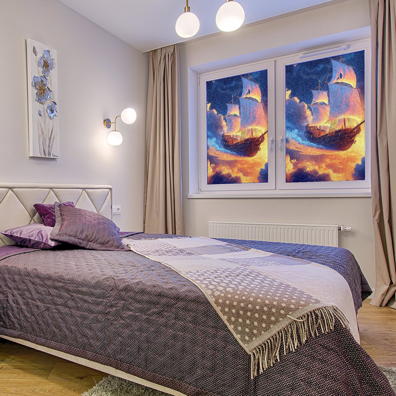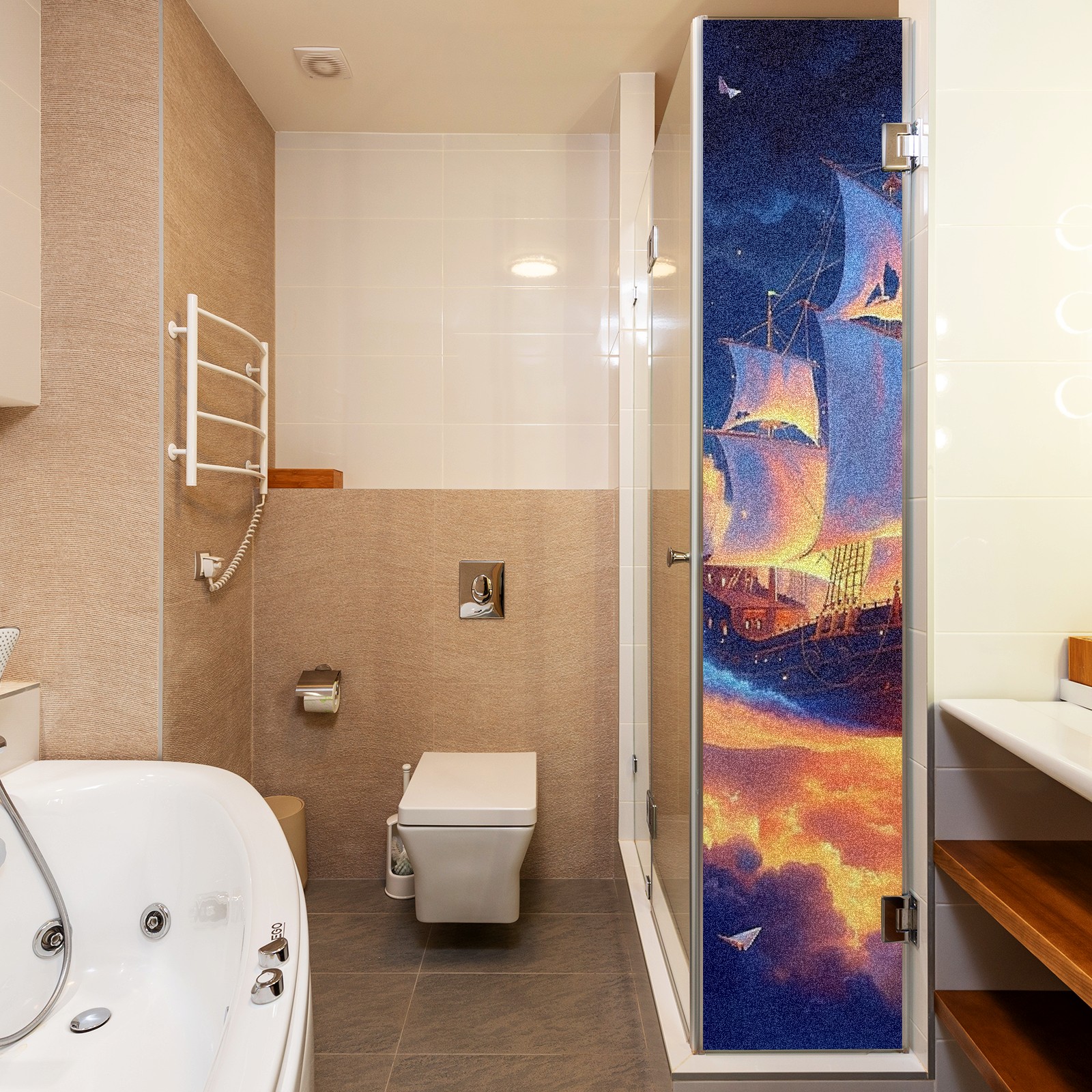 Static Cling Decorative Window Film Frosted Privacy Film Window Clings for Glass Windows No Glue Window Sticker for Bathroom Bedroom Office Sailboats