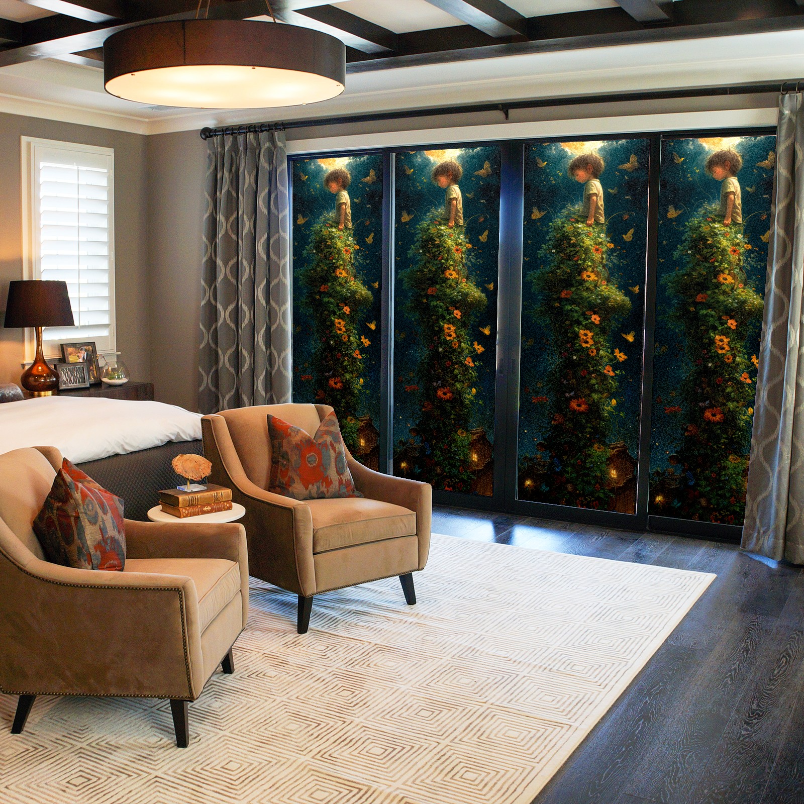 Static Cling Decorative Window Film Frosted Privacy Film Window Clings for Glass Windows No Glue Window Sticker for Bathroom Bedroom Office The Firmament