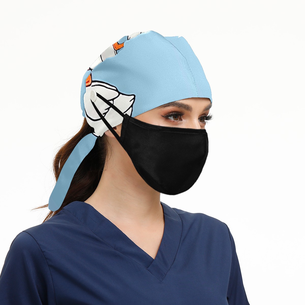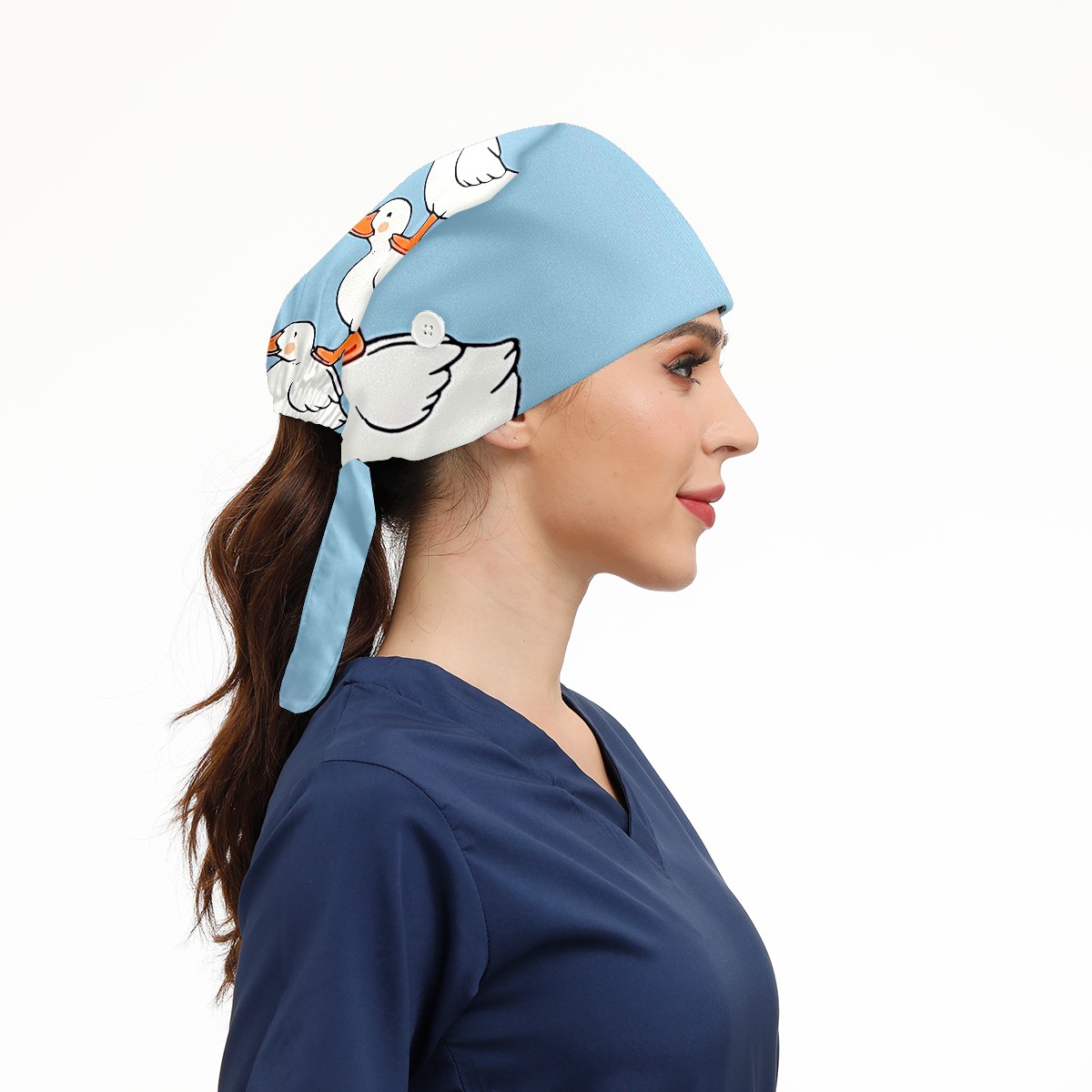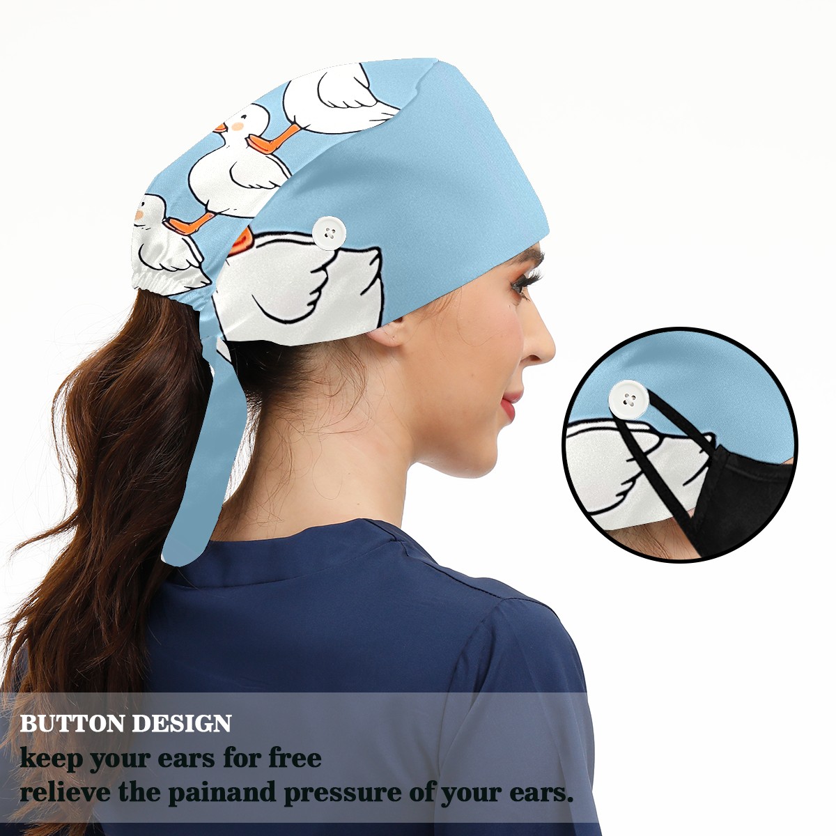 Working Caps with Button & Sweatband Satin Lined Cotton Adjustable Nurse Hats Elastic Band Scrub Cap Surgeon Hat Duck