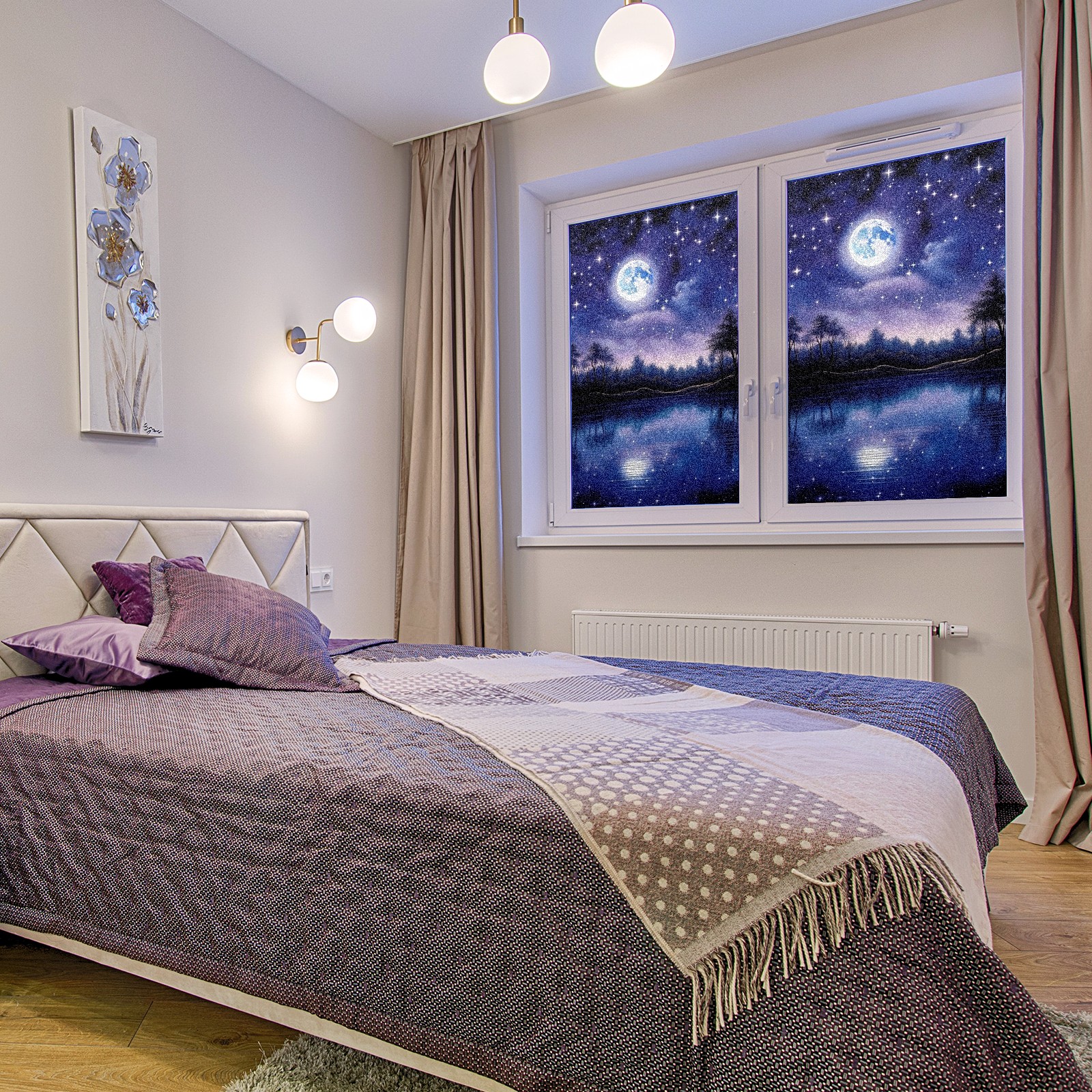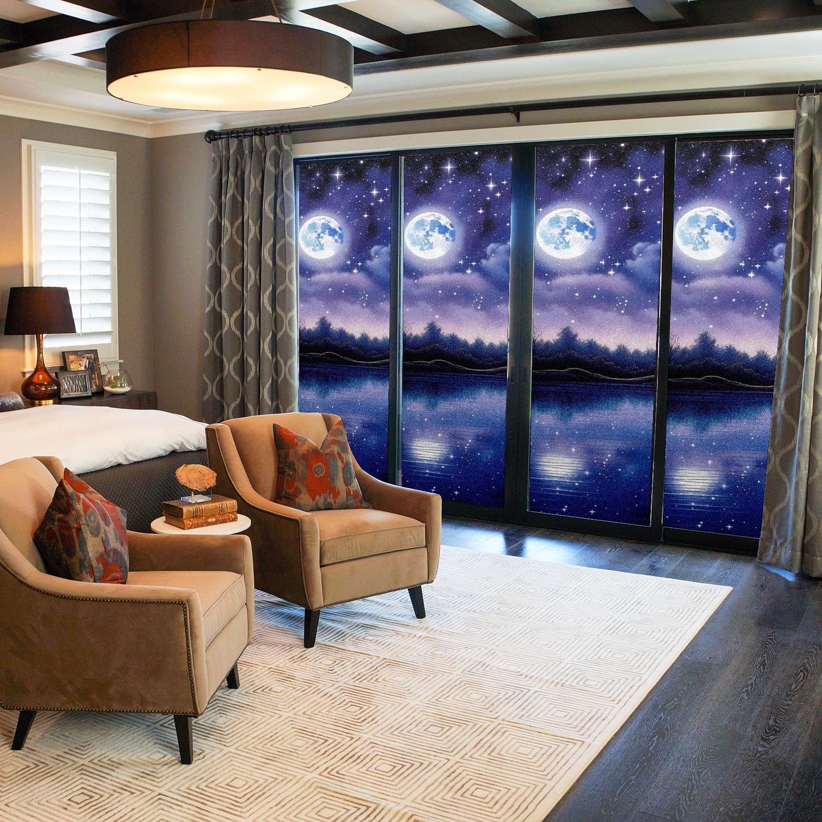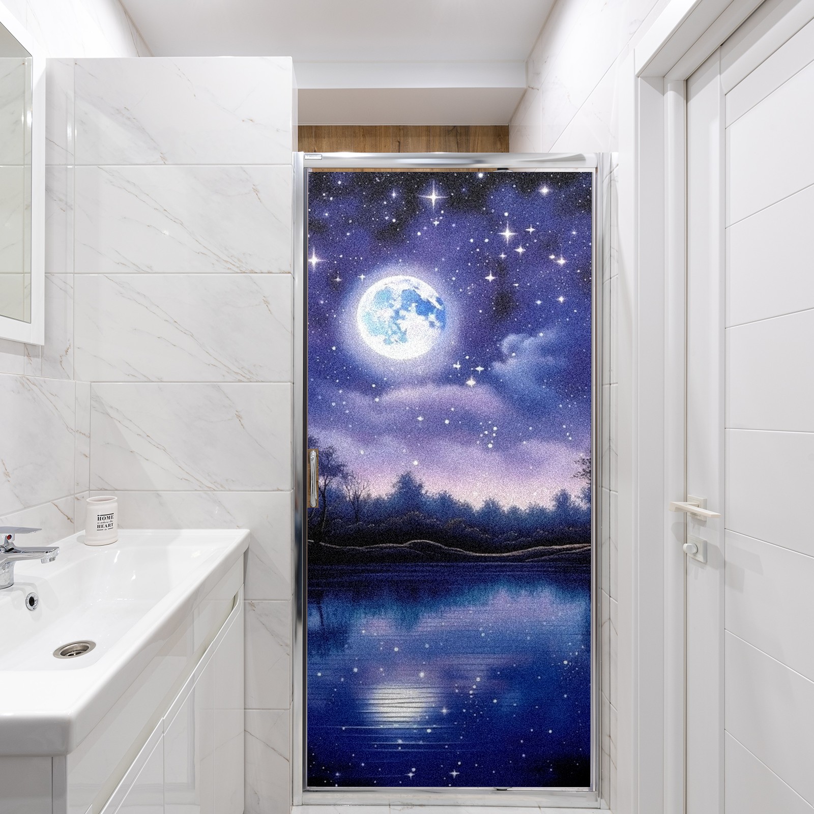 Static Cling Decorative Window Film Frosted Privacy Film Window Clings for Glass Windows No Glue Window Sticker for Bathroom Bedroom Office Night Sky Stars Moon Lake