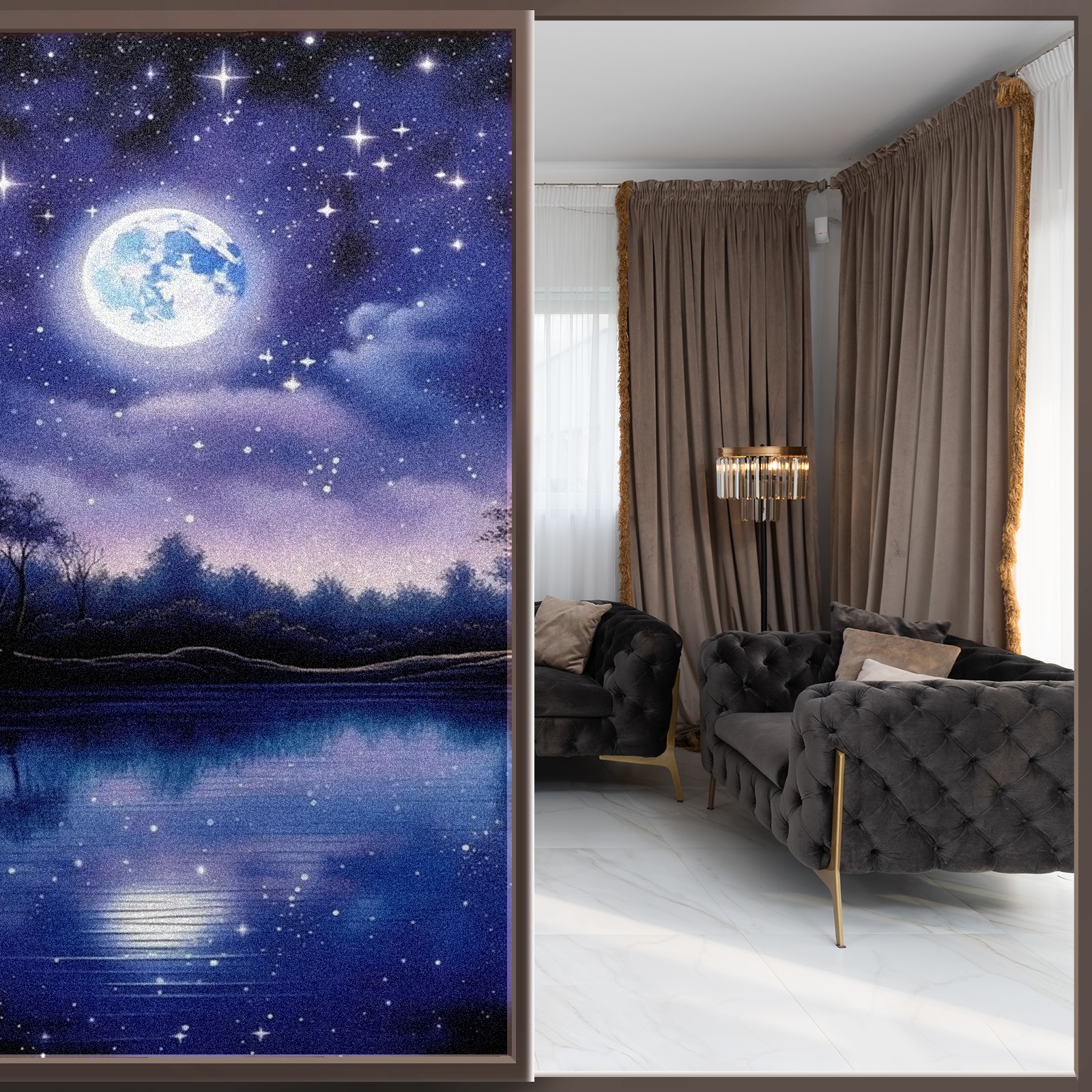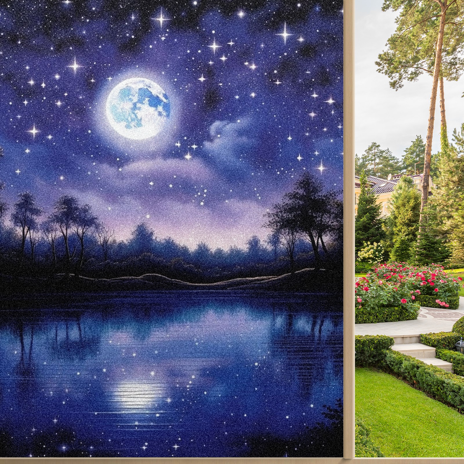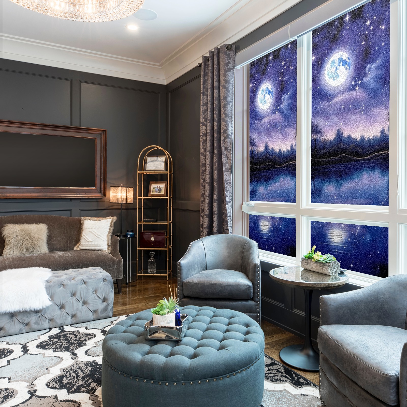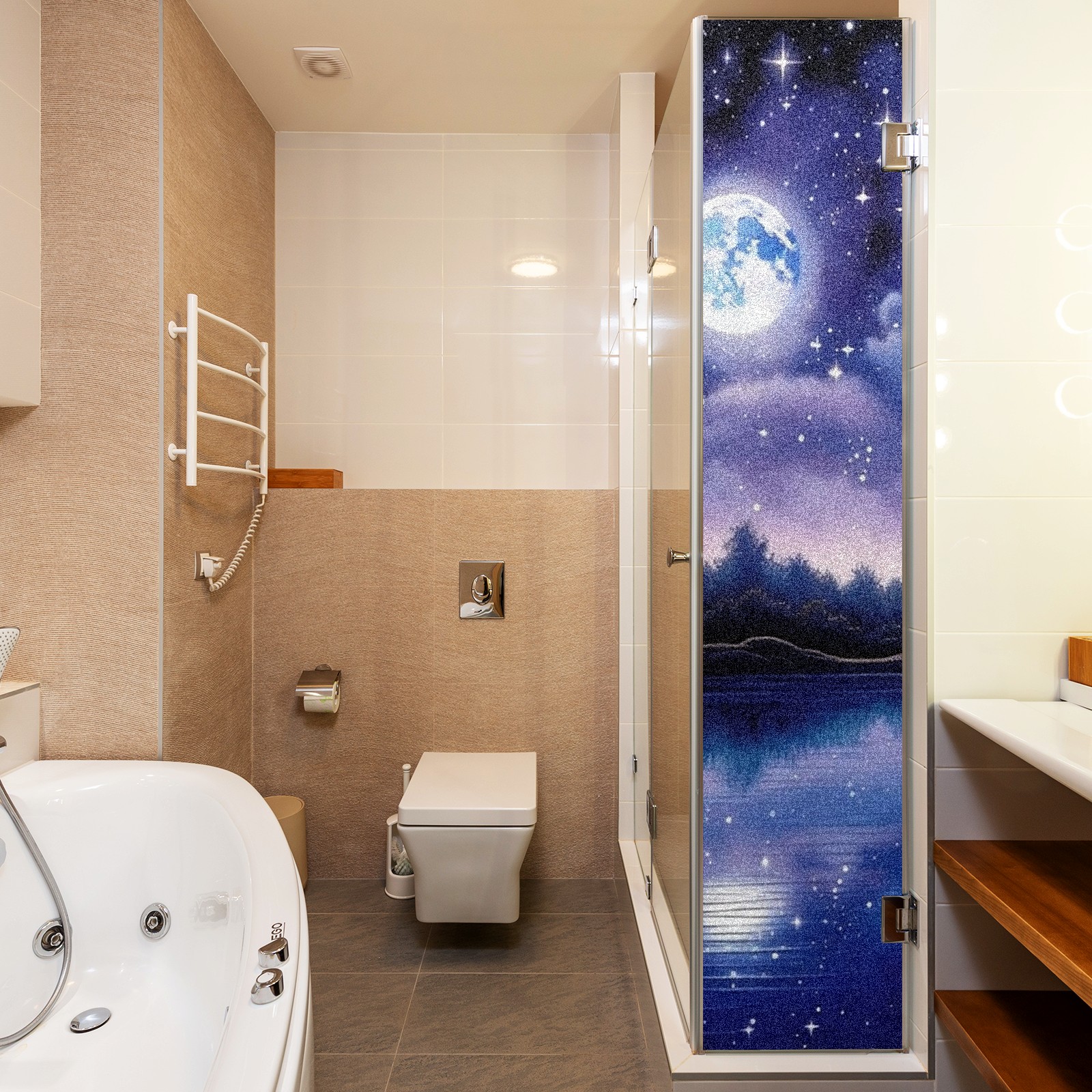 Static Cling Decorative Window Film Frosted Privacy Film Window Clings for Glass Windows No Glue Window Sticker for Bathroom Bedroom Office Night Sky Stars Moon Lake