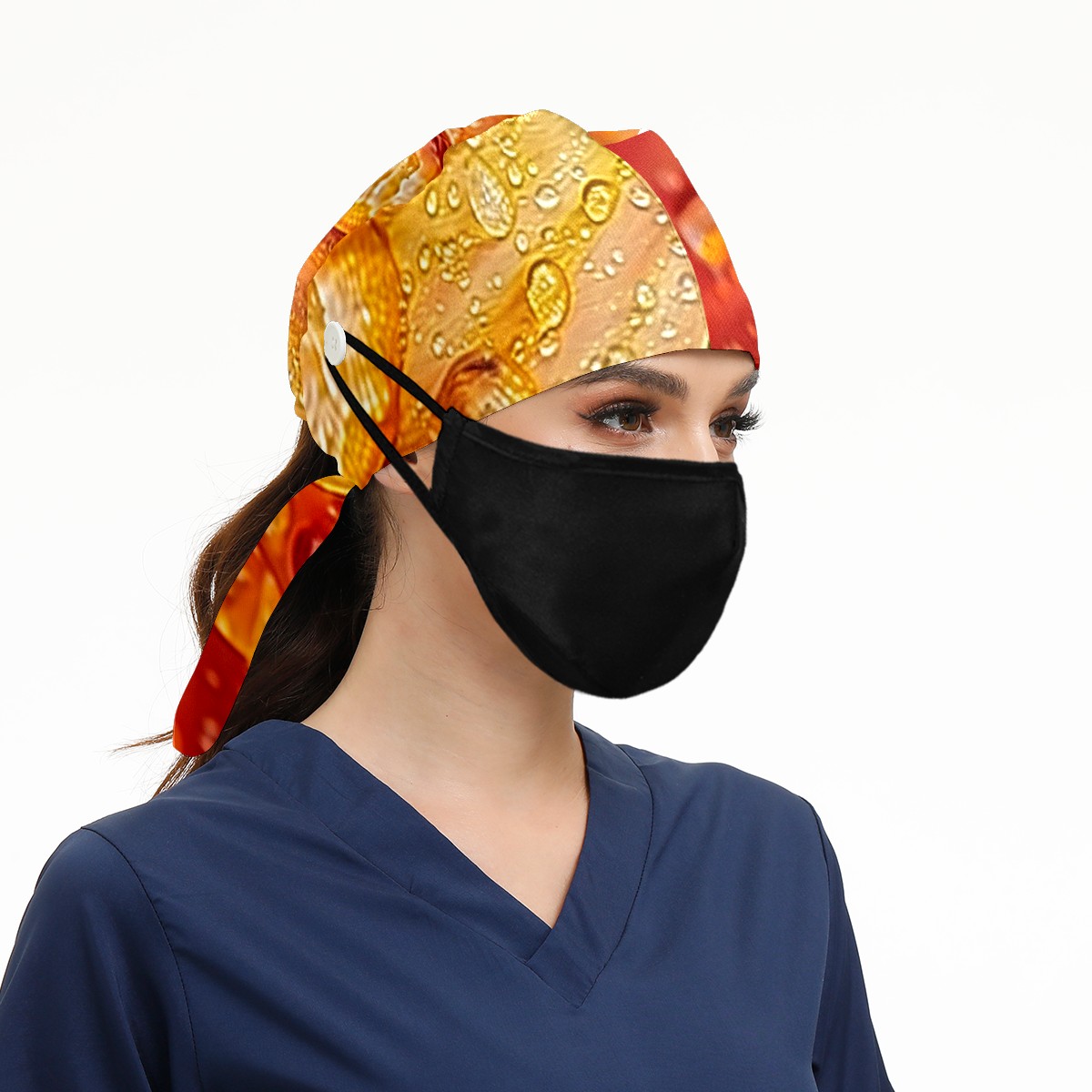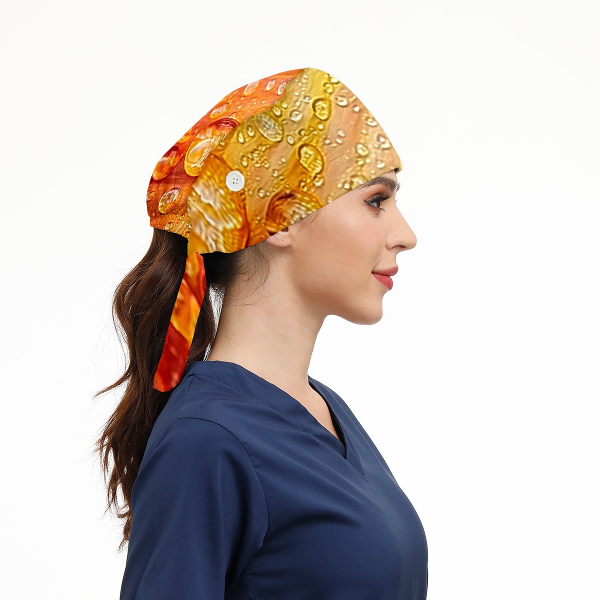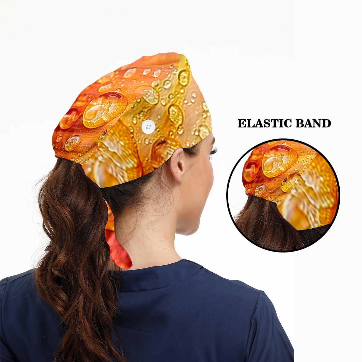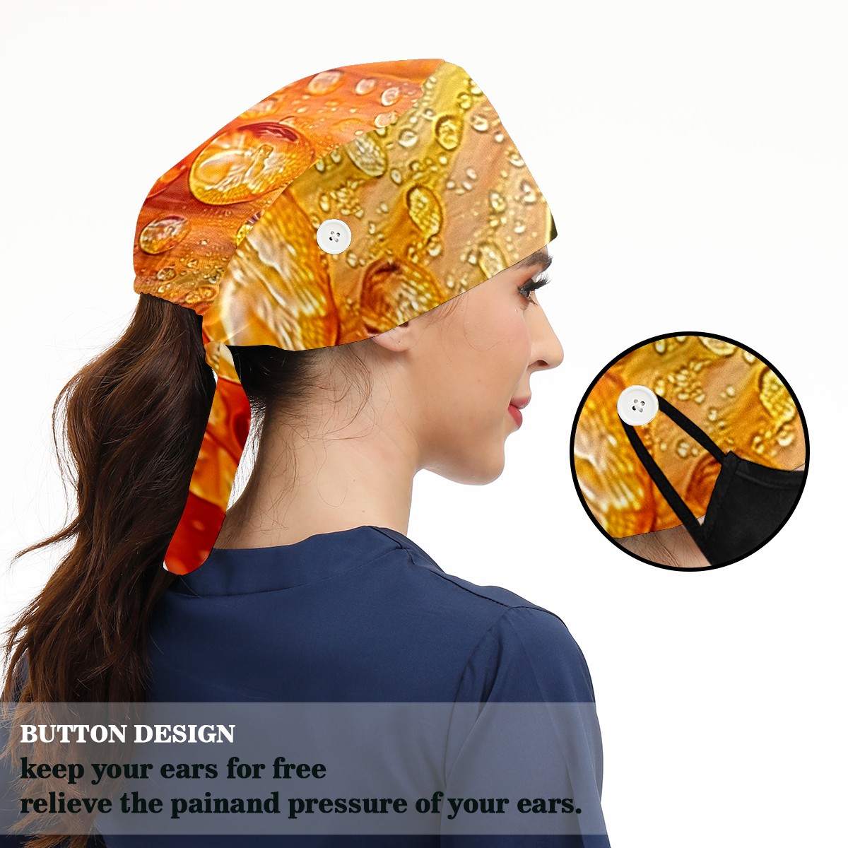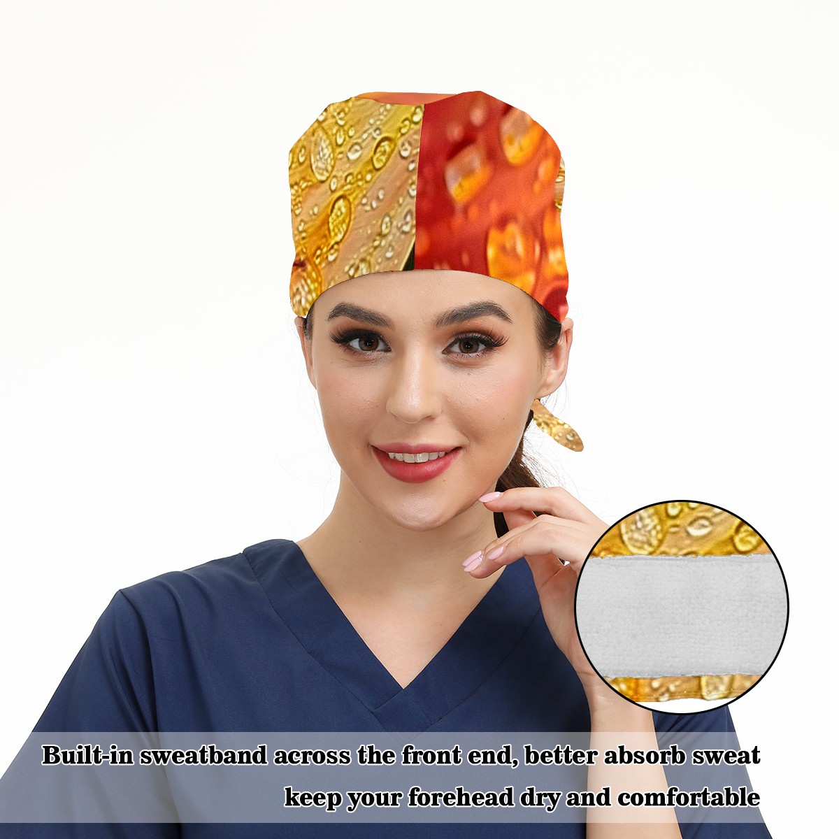 Working Caps with Button & Sweatband Satin Lined Cotton Adjustable Nurse Hats Elastic Band Scrub Cap Surgeon Hat Tree