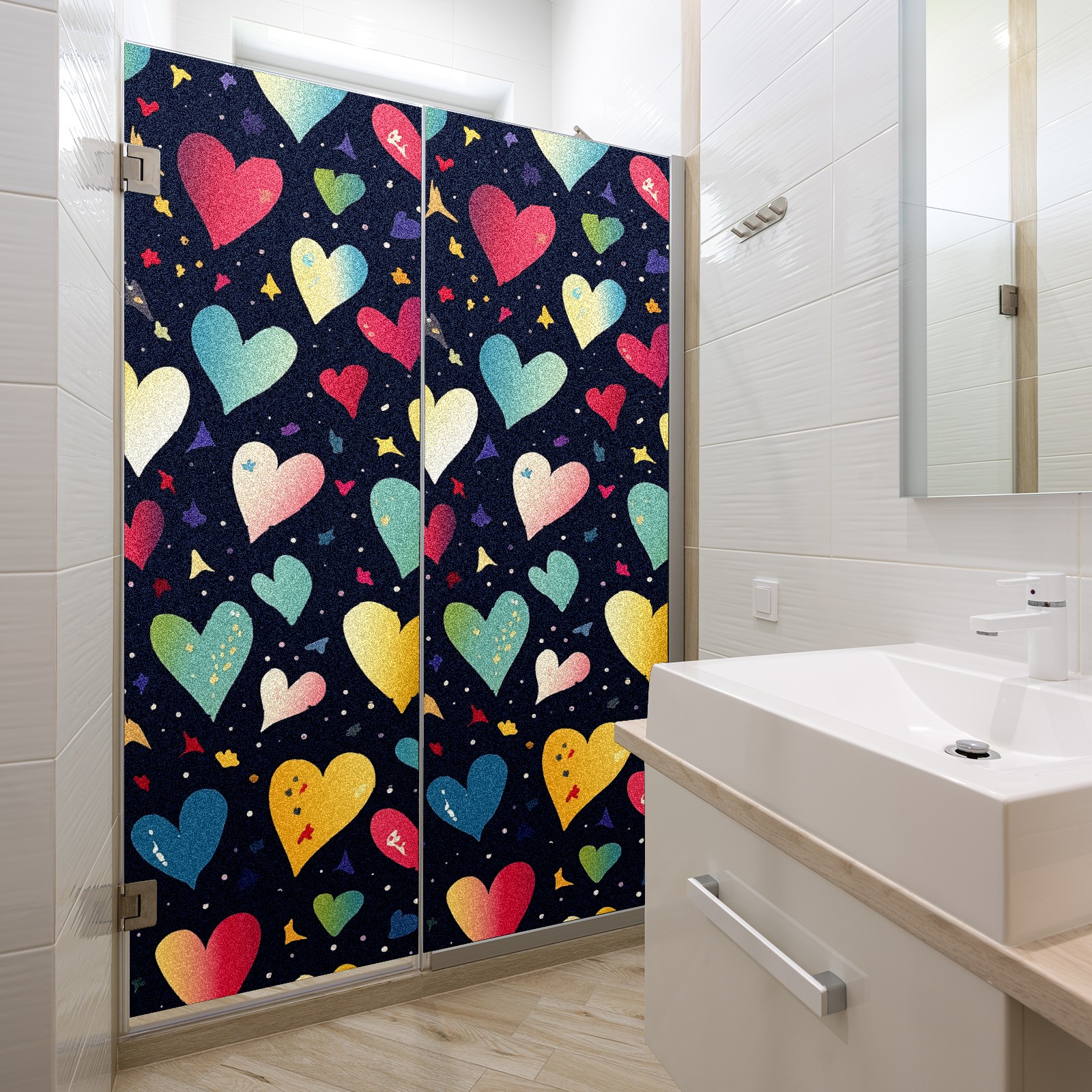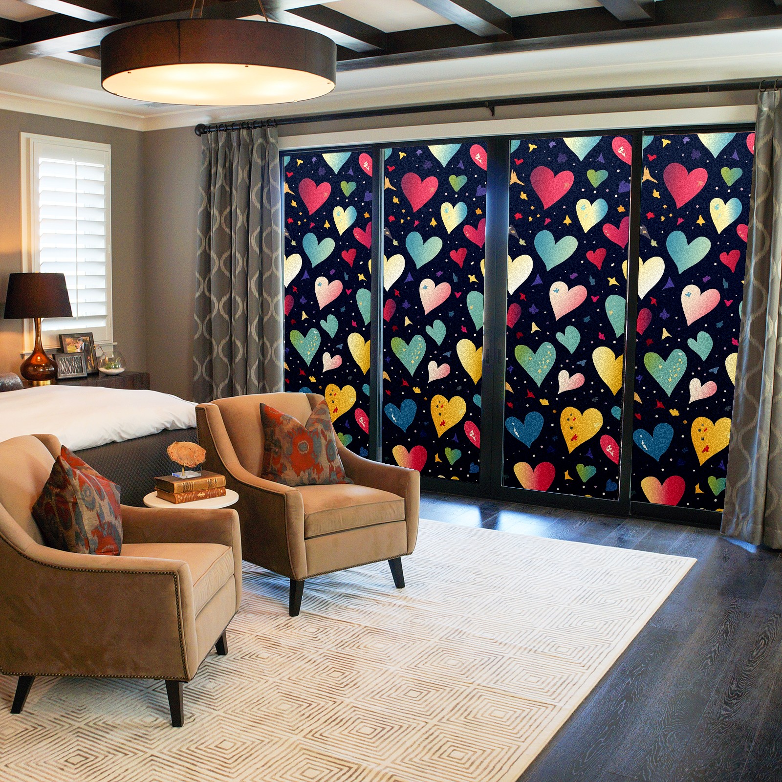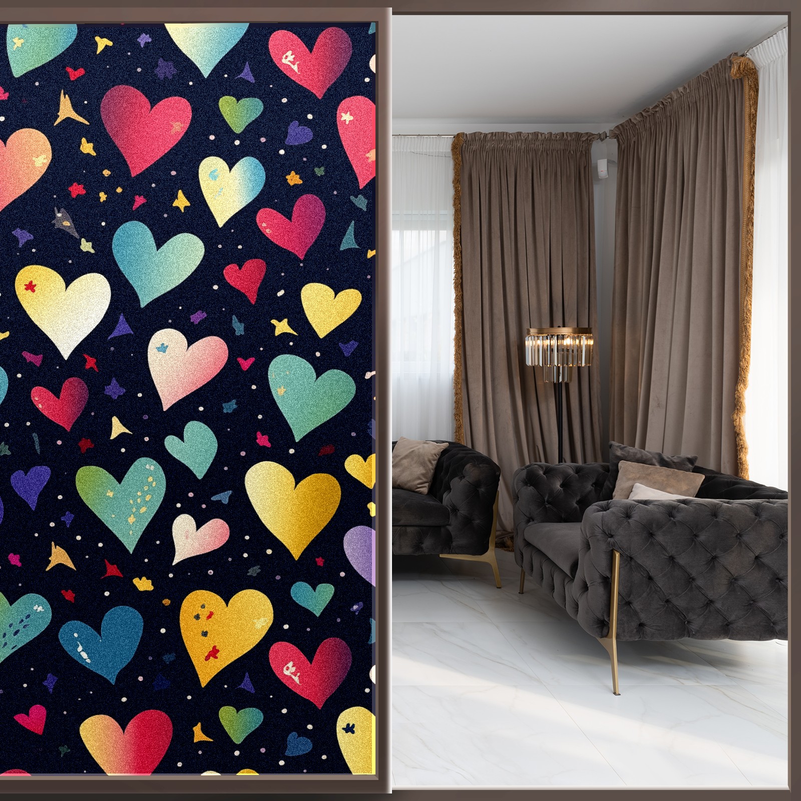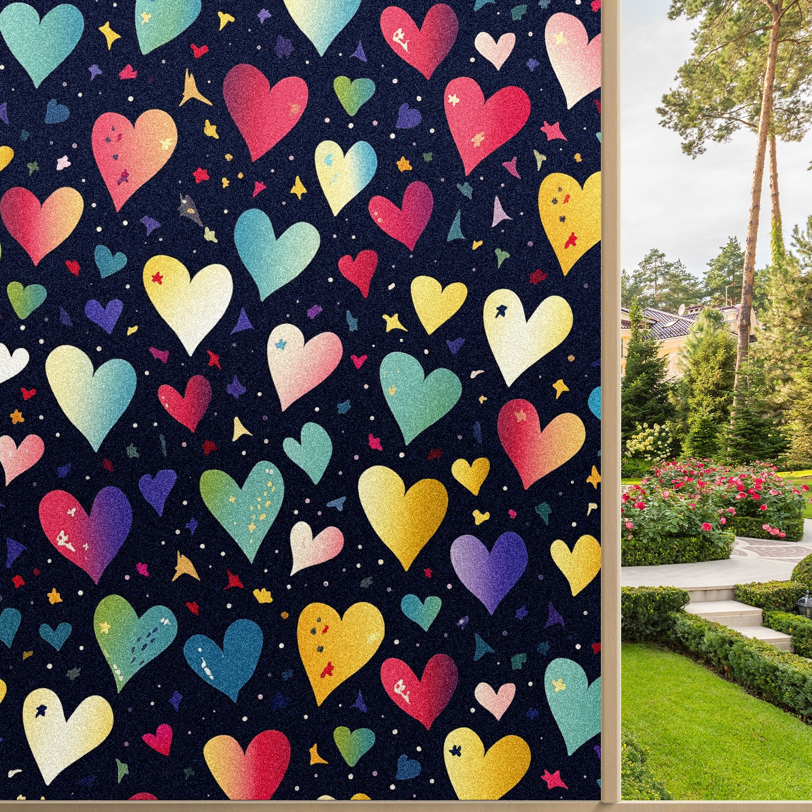 Static Cling Decorative Window Film Frosted Privacy Film Window Clings for Glass Windows No Glue Window Sticker for Bathroom Bedroom Office Colorful Hearts