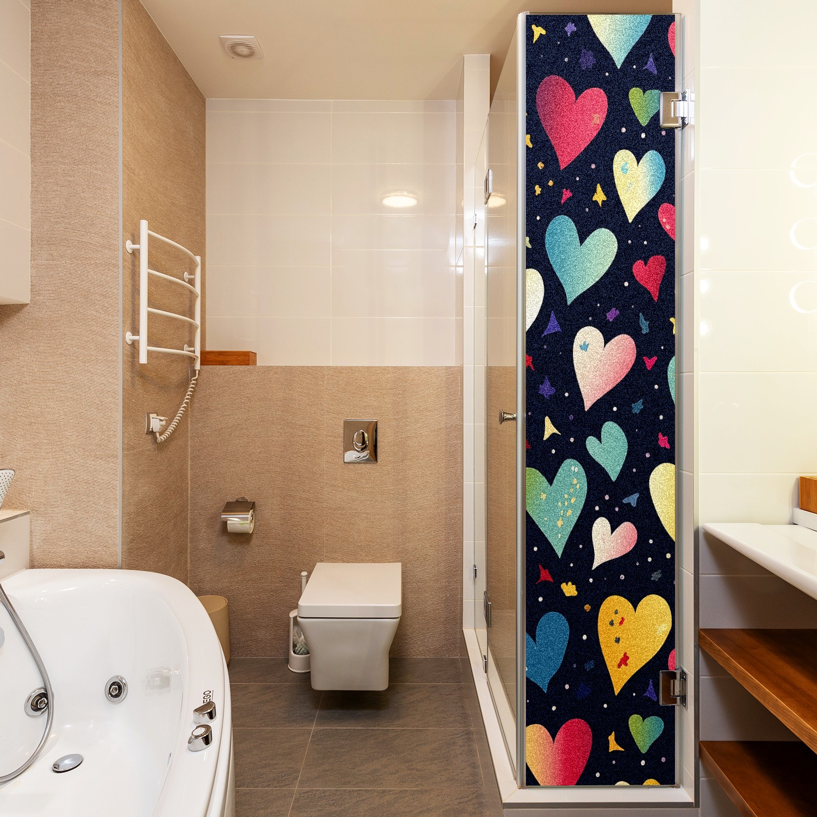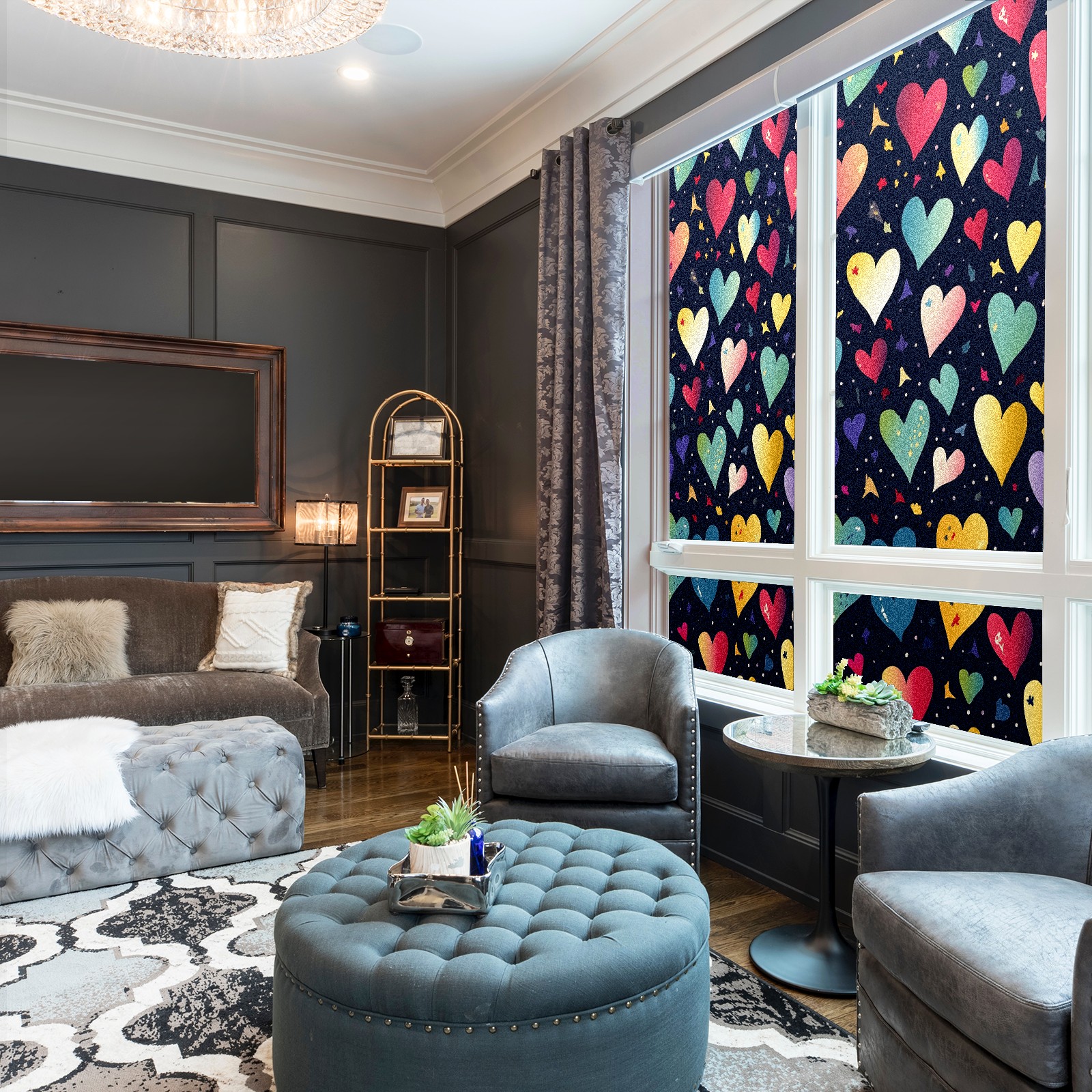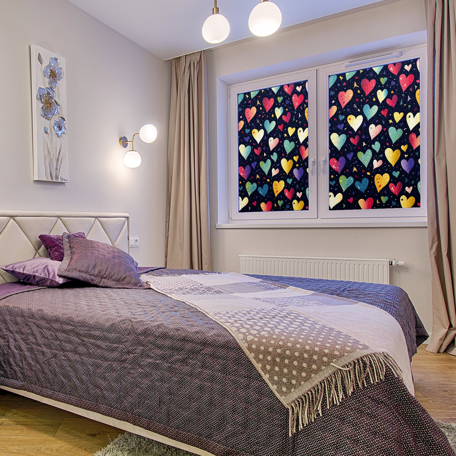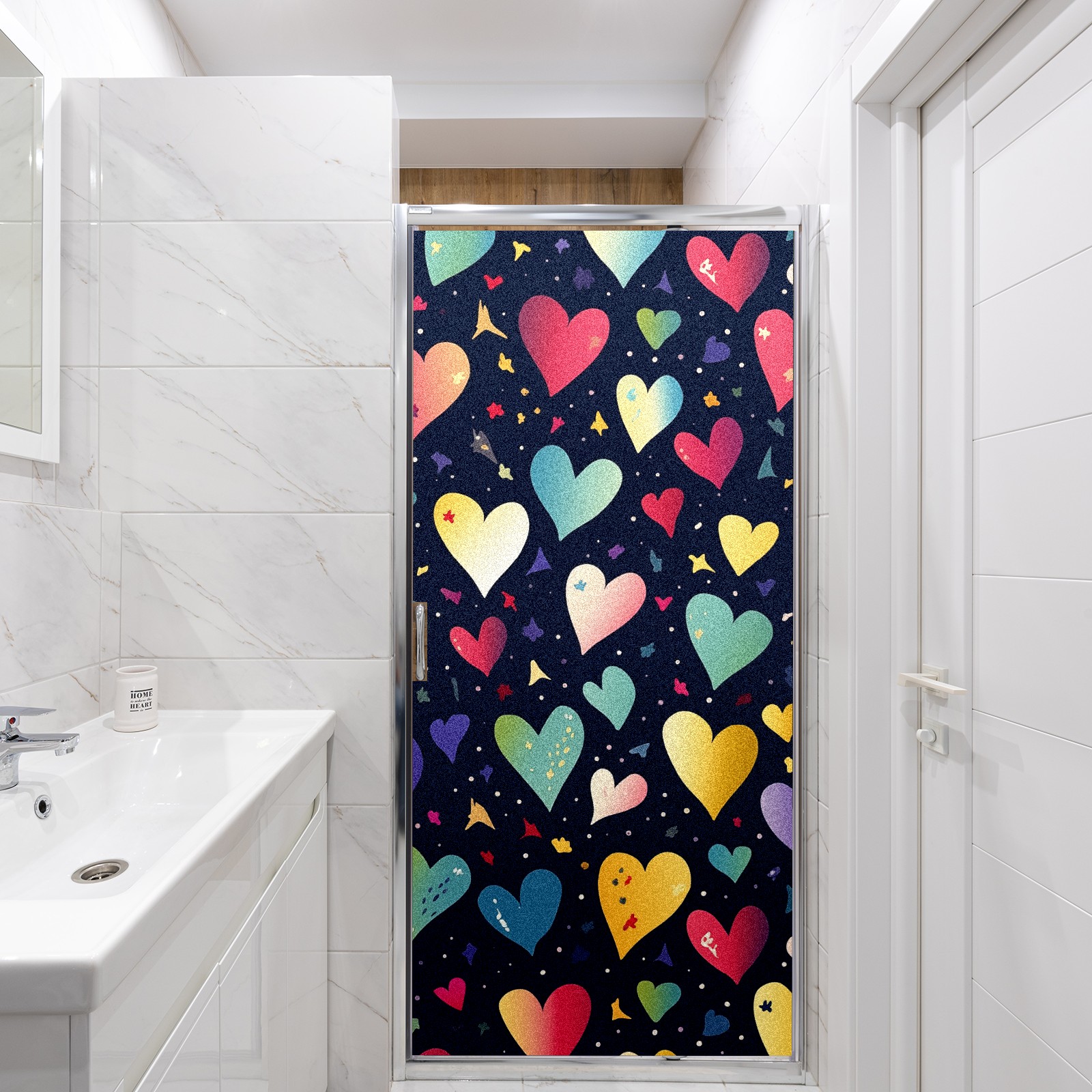 Static Cling Decorative Window Film Frosted Privacy Film Window Clings for Glass Windows No Glue Window Sticker for Bathroom Bedroom Office Colorful Hearts