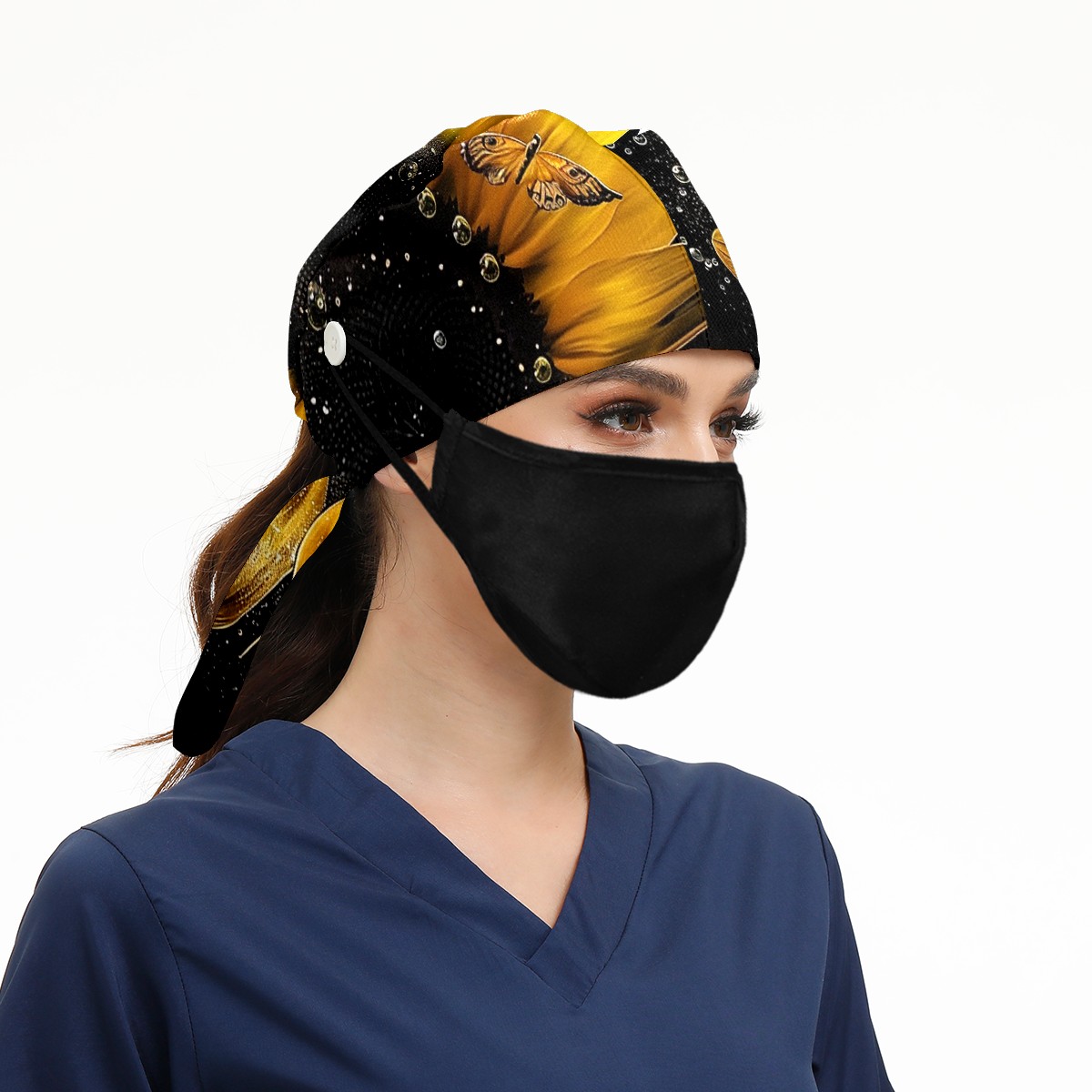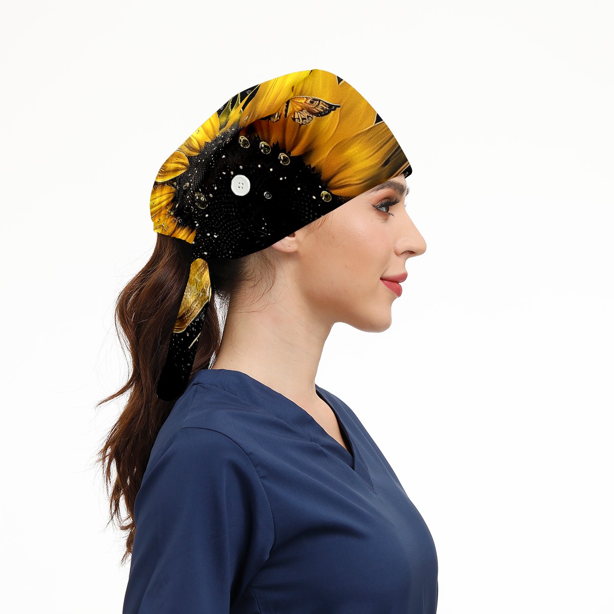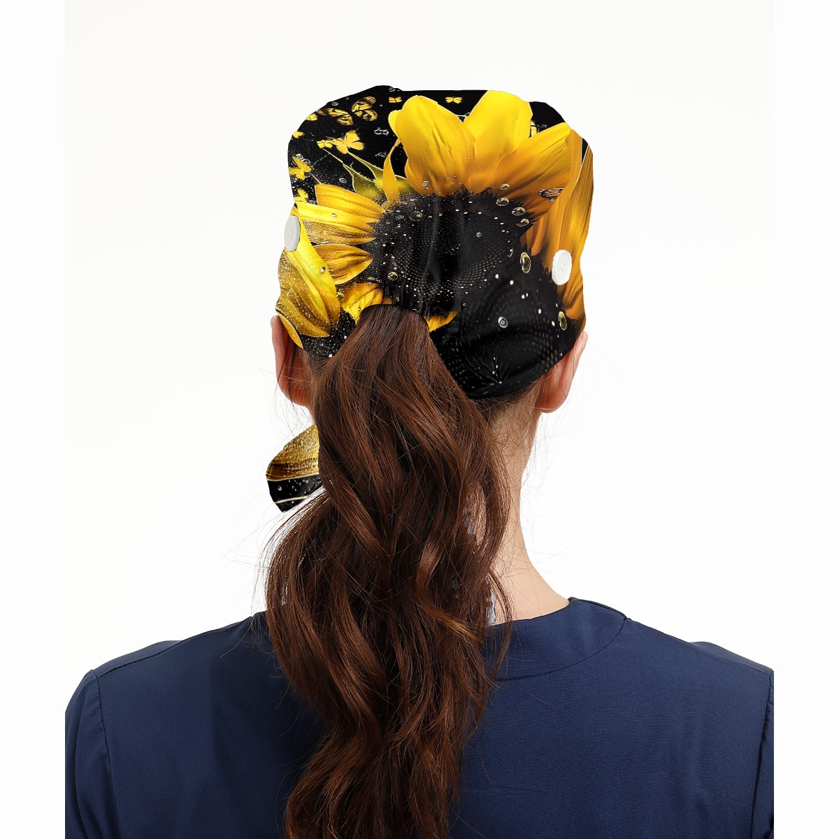 Working Caps with Button & Sweatband Satin Lined Cotton Adjustable Nurse Hats Elastic Band Scrub Cap Surgeon Hat Daisy
