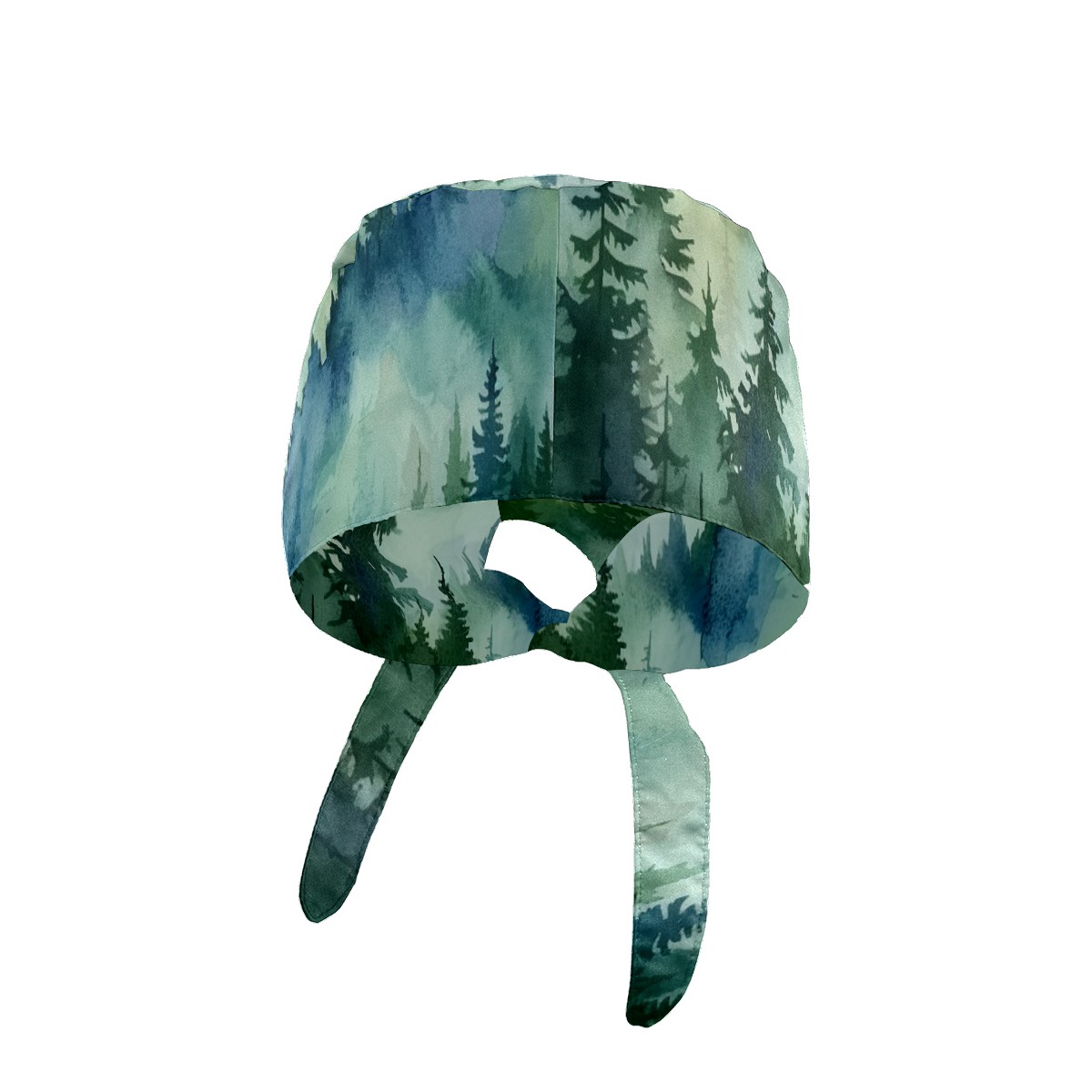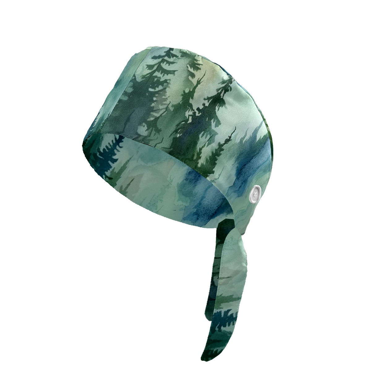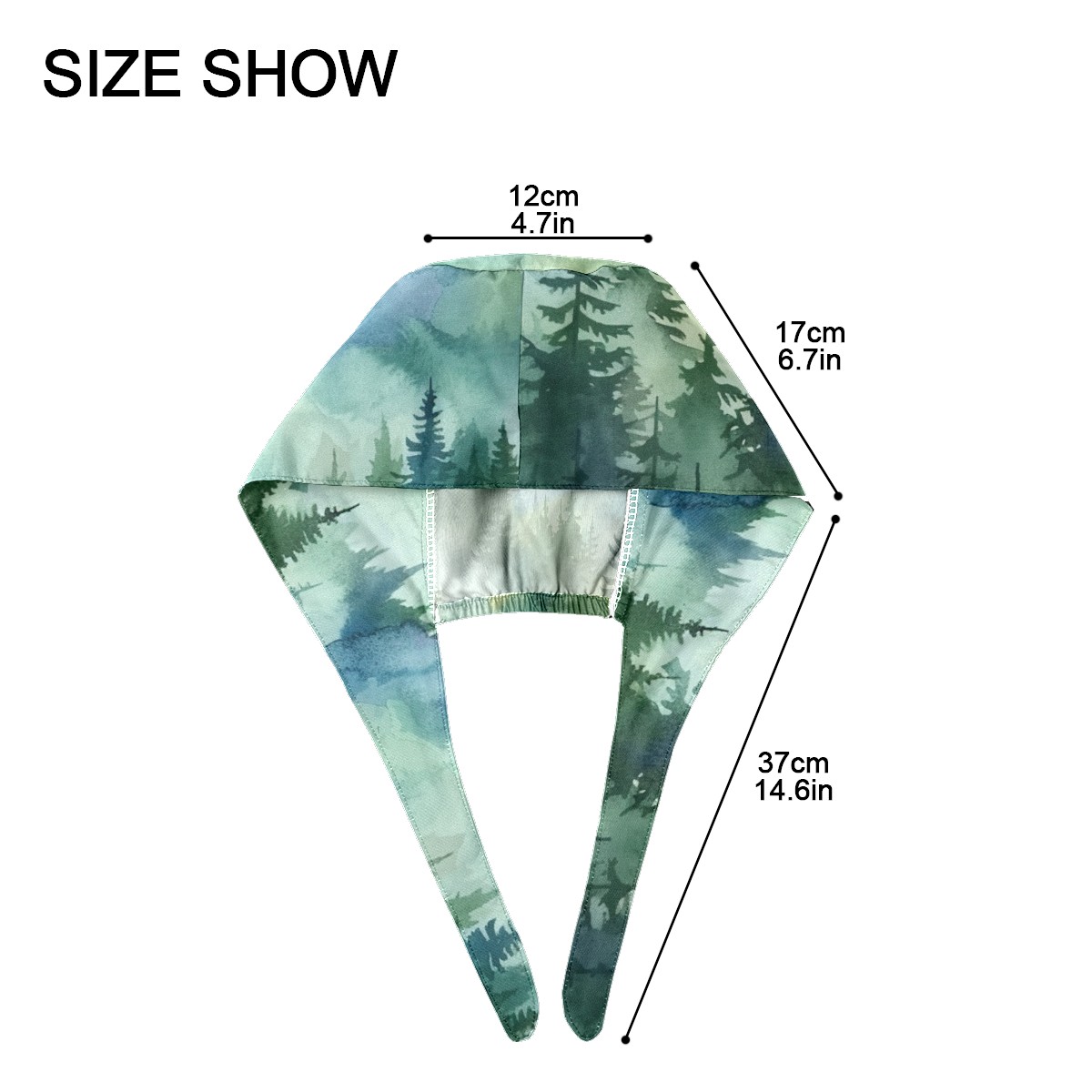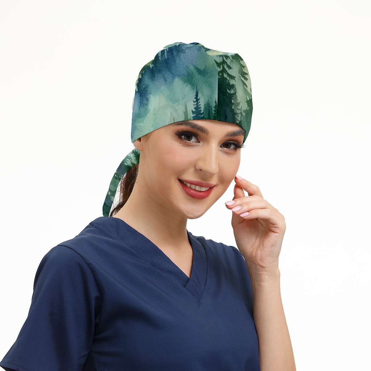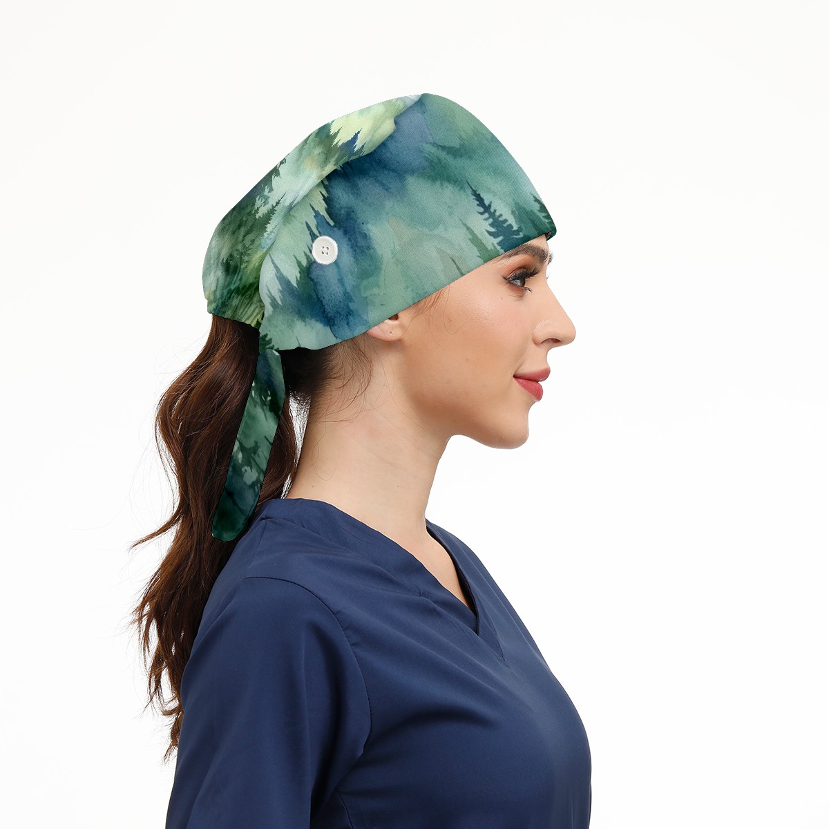 Working Caps with Button & Sweatband Satin Lined Cotton Adjustable Nurse Hats Elastic Band Scrub Cap Surgeon Hat Painting Moutain