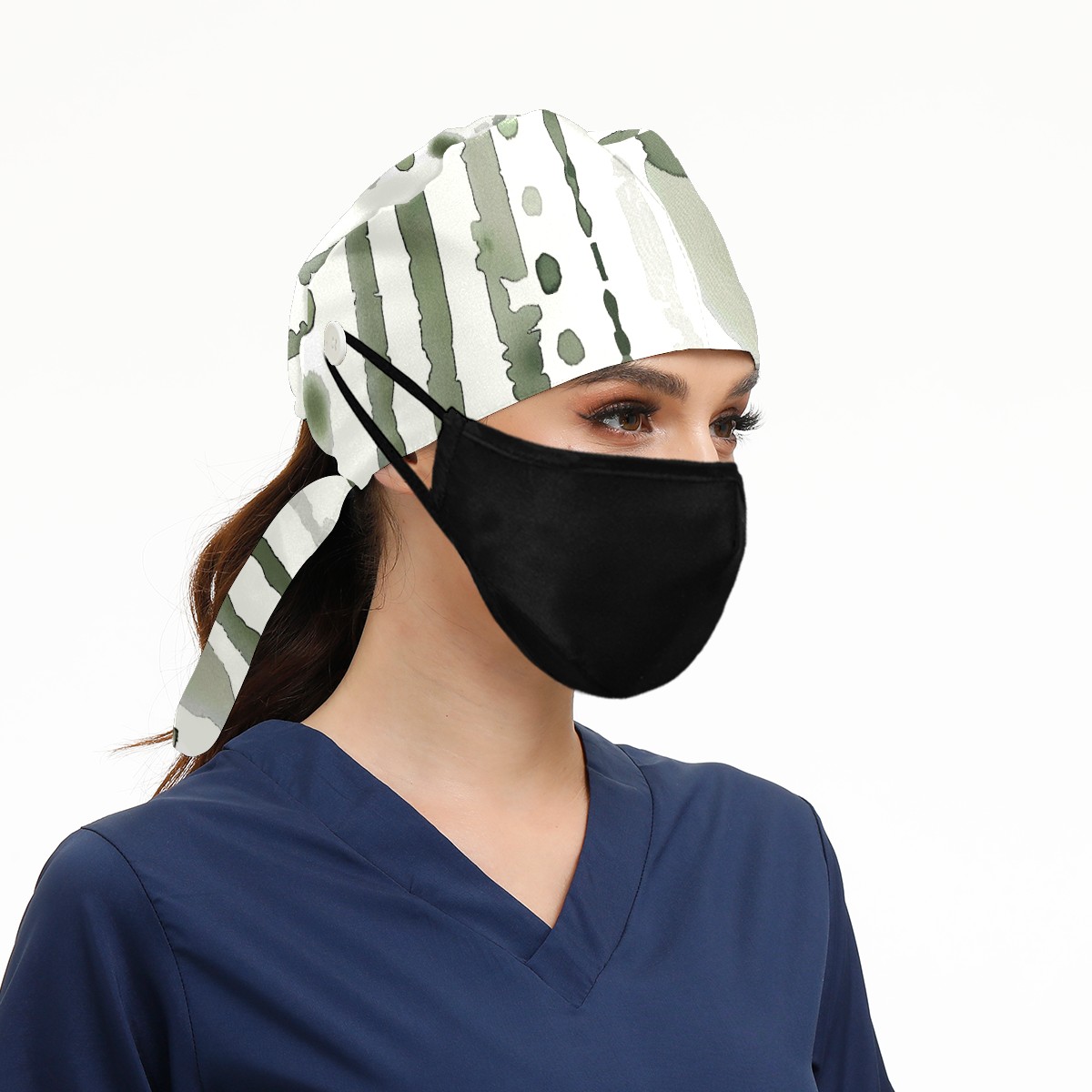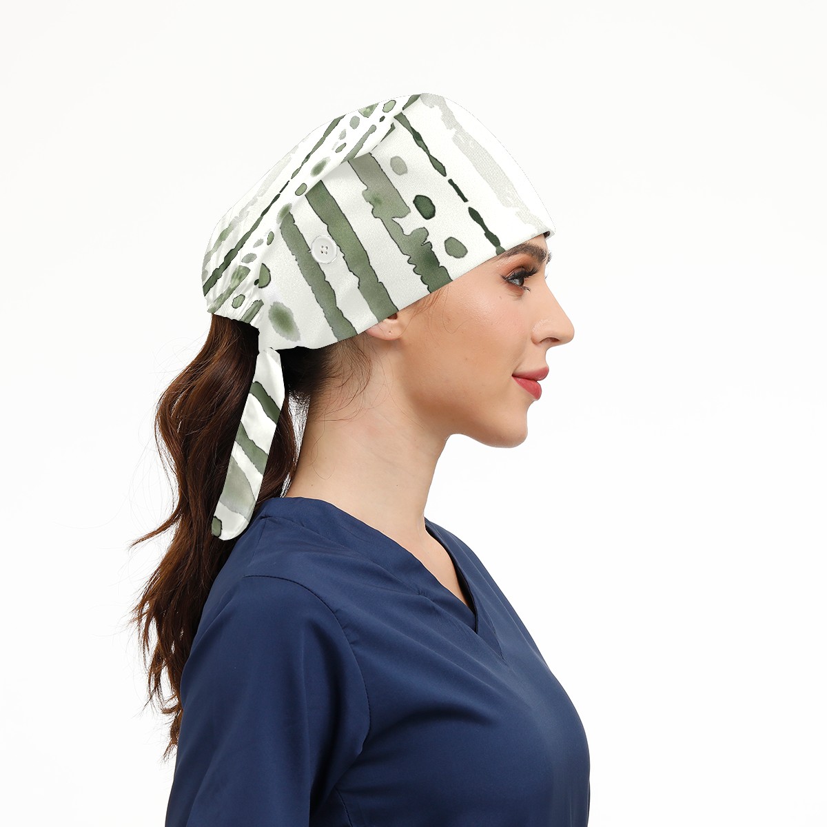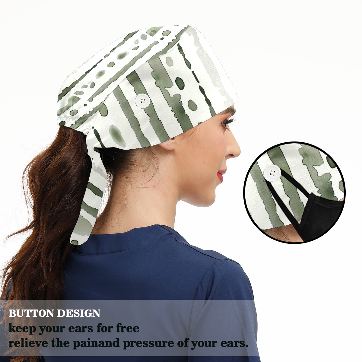 Working Caps with Button & Sweatband Satin Lined Cotton Adjustable Nurse Hats Elastic Band Scrub Cap Surgeon Hat Painting