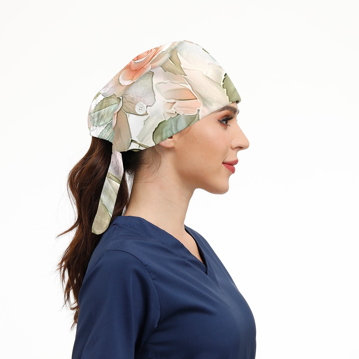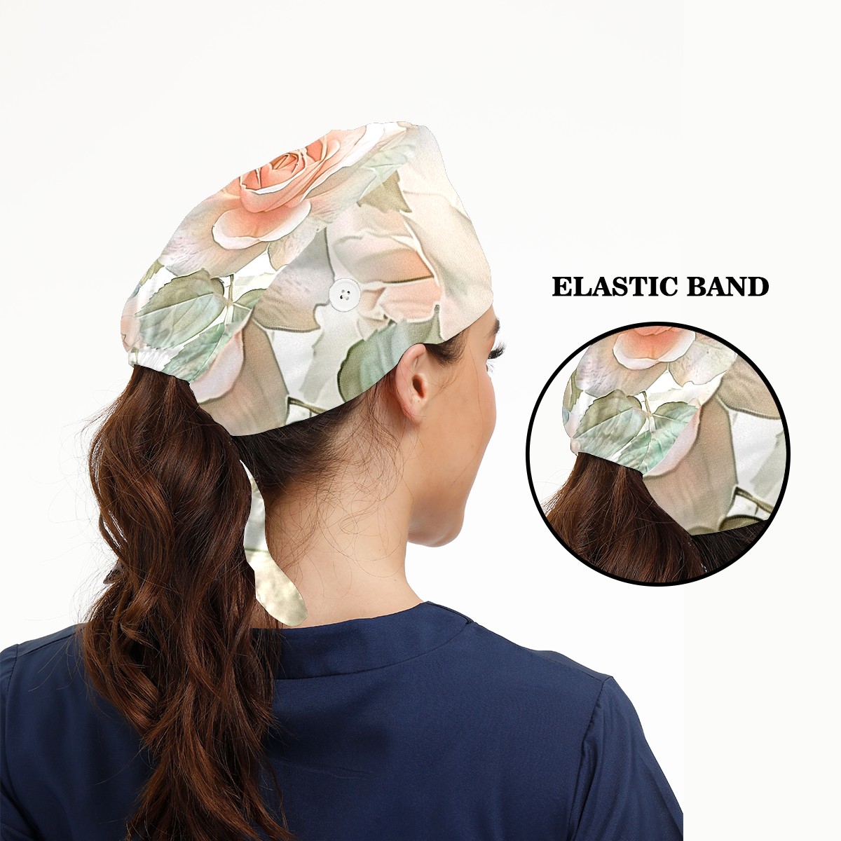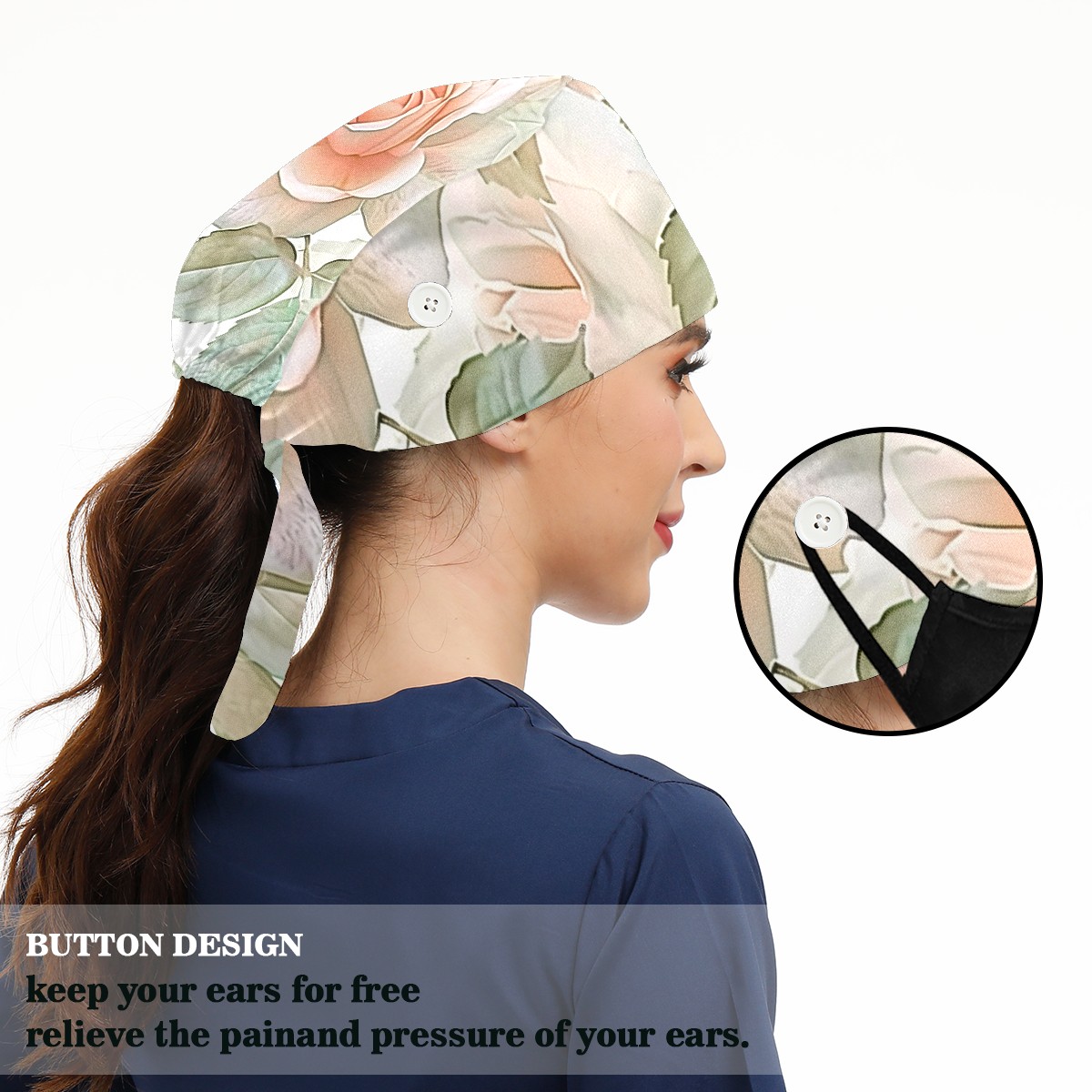 Working Caps with Button & Sweatband Satin Lined Cotton Adjustable Nurse Hats Elastic Band Scrub Cap Surgeon Hat Flowers Tree