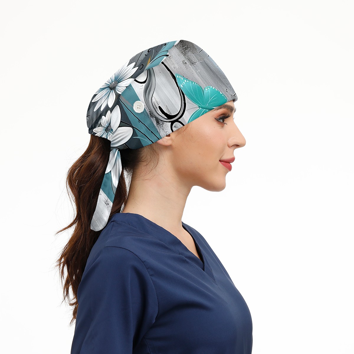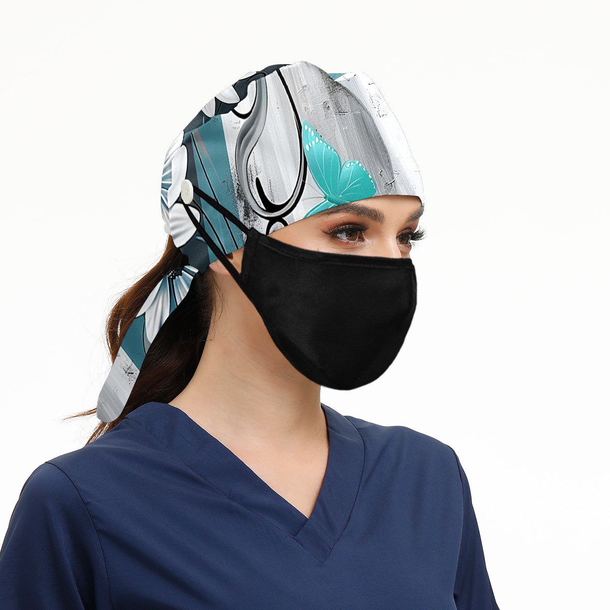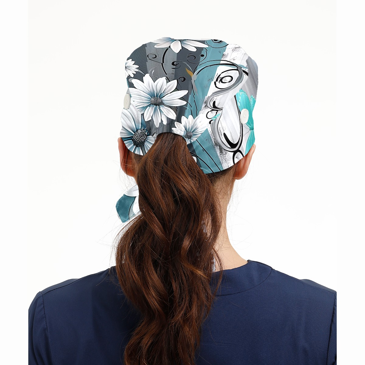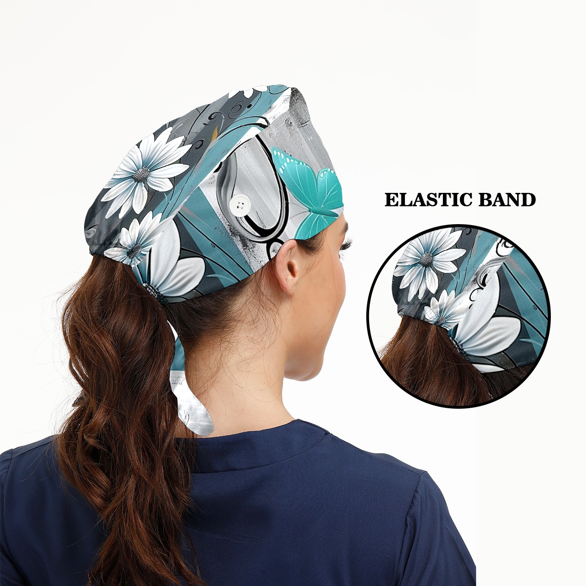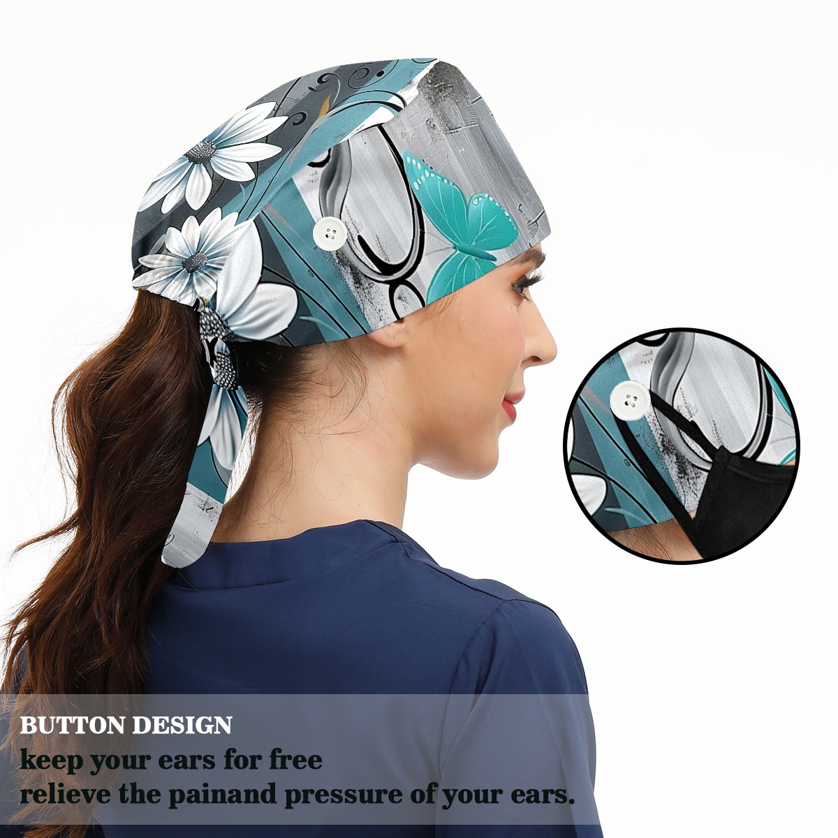 Working Caps with Button & Sweatband Satin Lined Cotton Adjustable Nurse Hats Elastic Band Scrub Cap Surgeon Hat Flowers Tree87