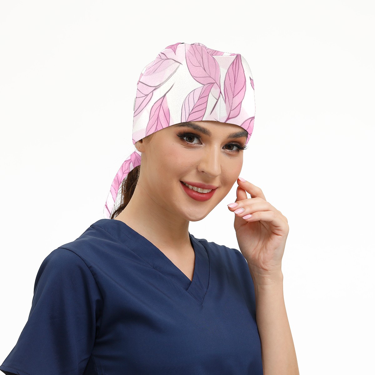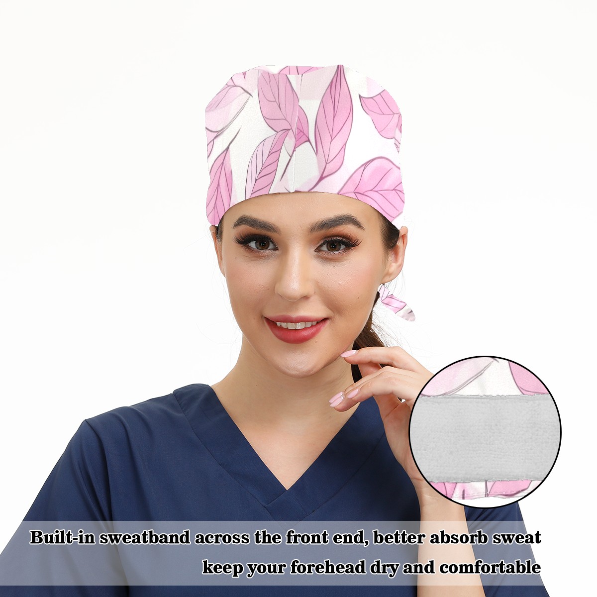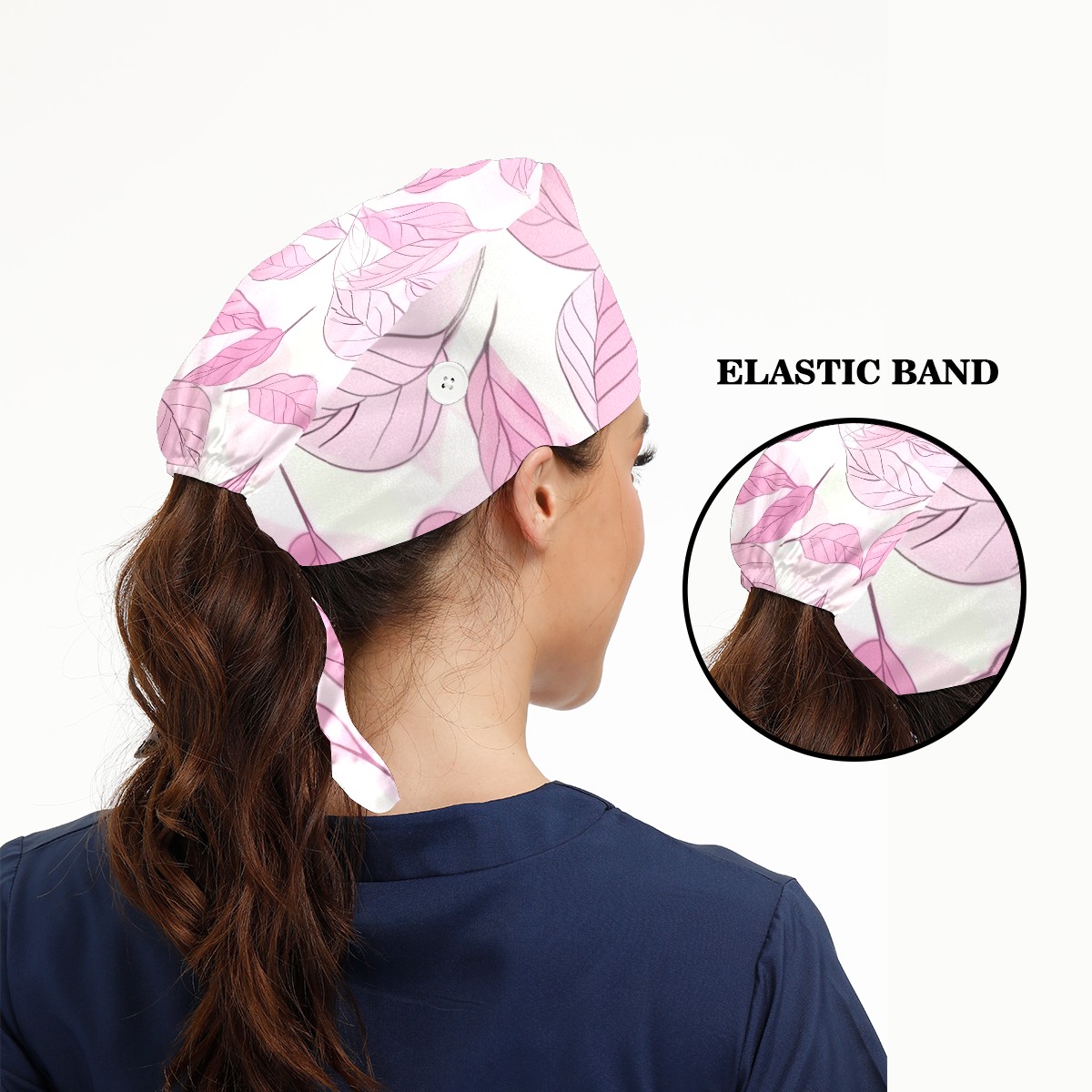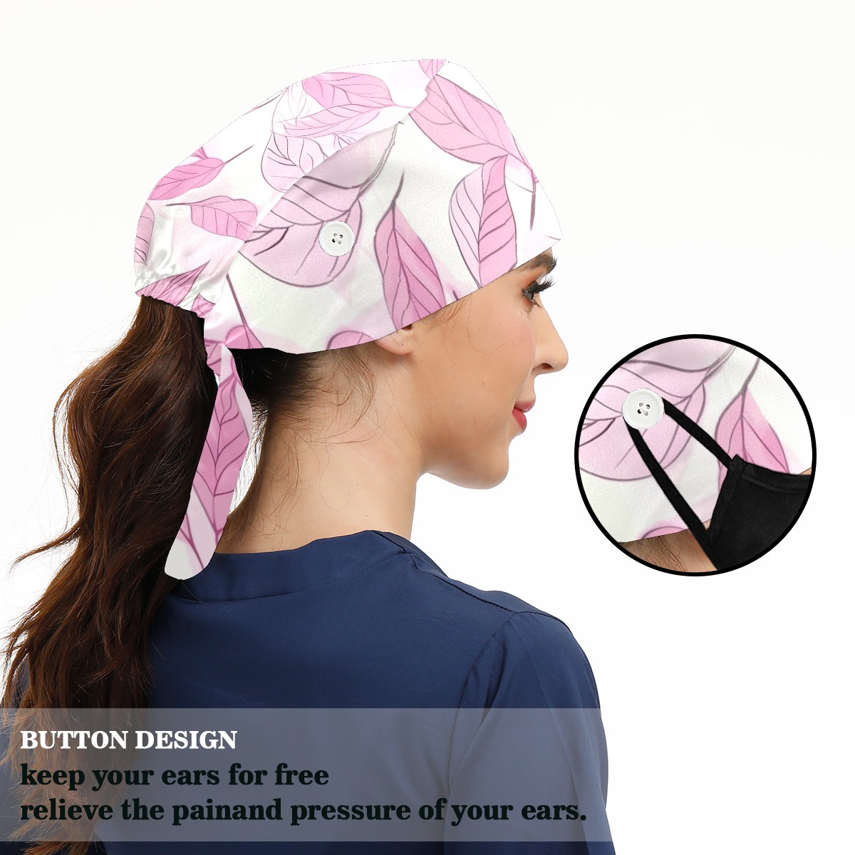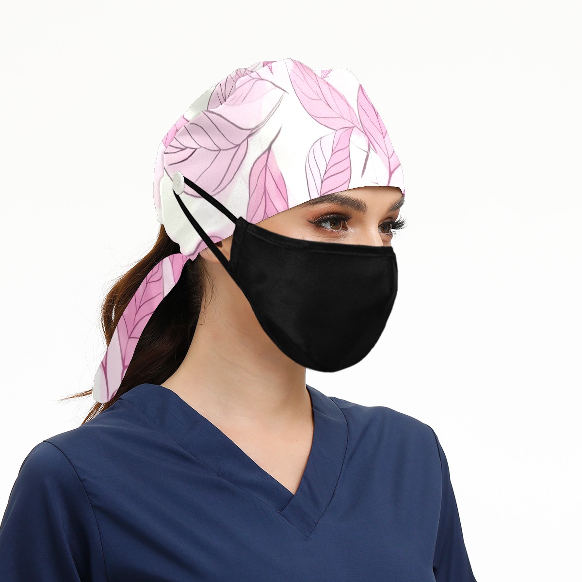 Working Caps with Button & Sweatband Satin Lined Cotton Adjustable Nurse Hats Elastic Band Scrub Cap Surgeon Hat 18
