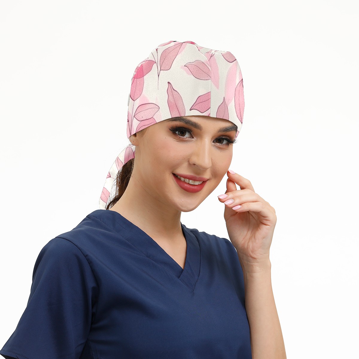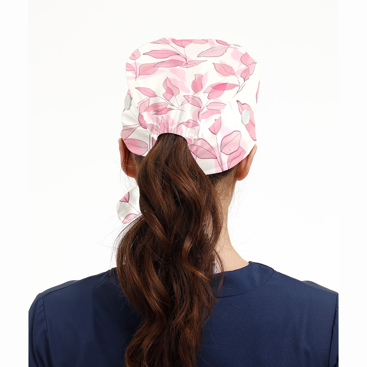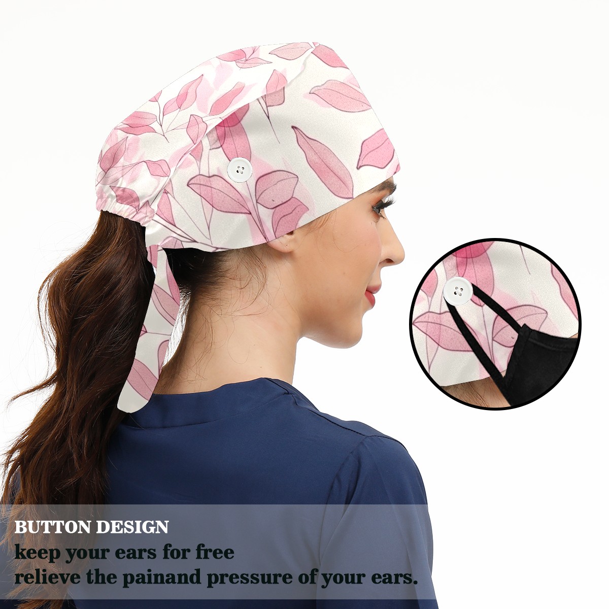 Working Caps with Button & Sweatband Satin Lined Cotton Adjustable Nurse Hats Elastic Band Scrub Cap Surgeon Hat 17