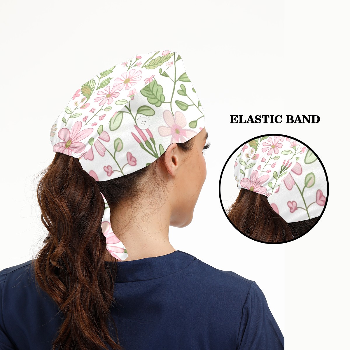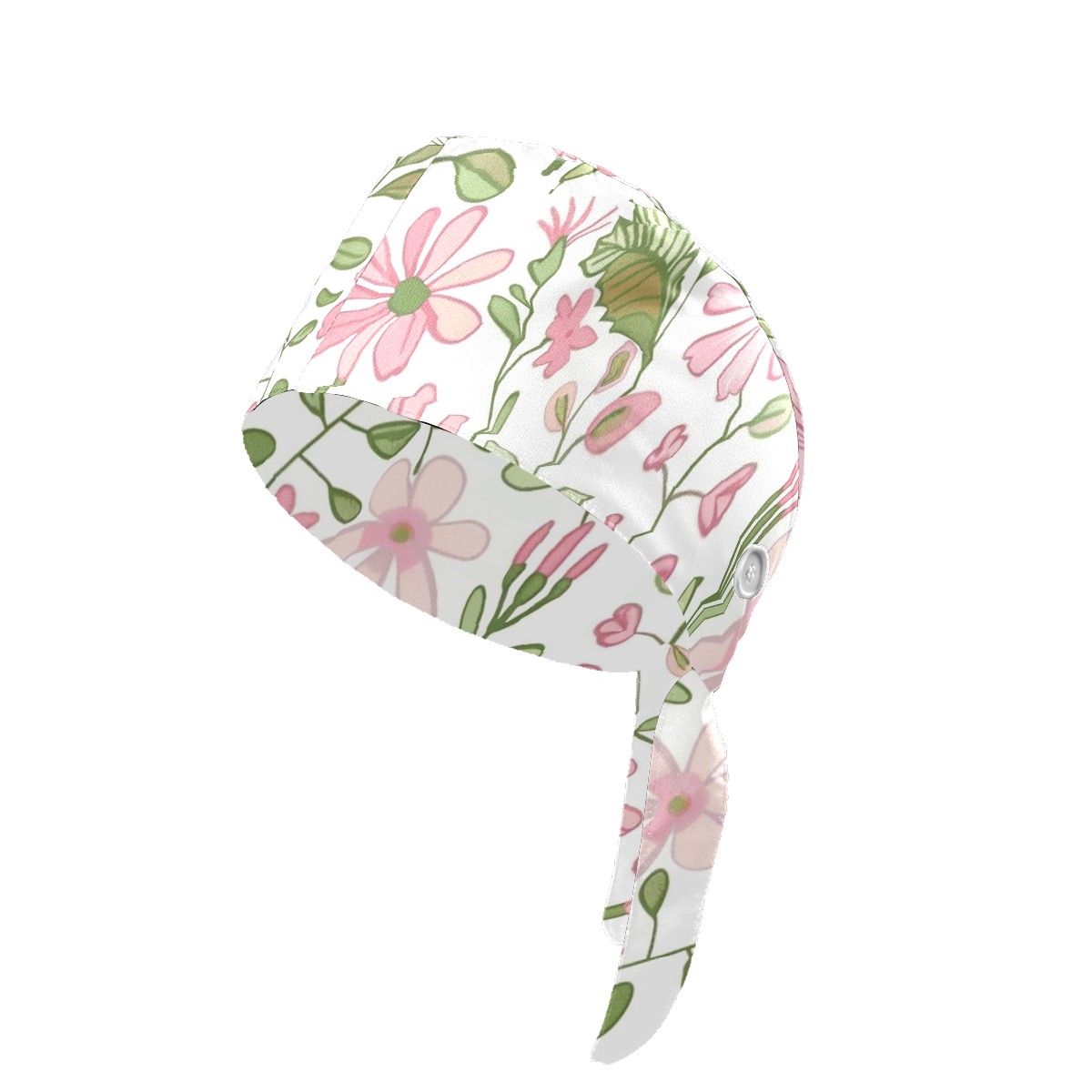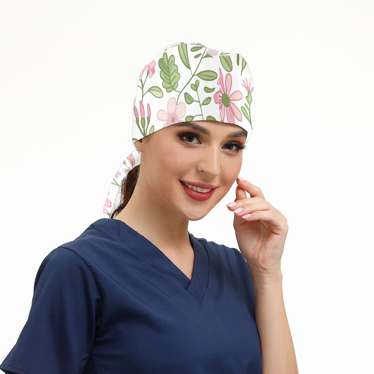 Working Caps with Button & Sweatband Satin Lined Cotton Adjustable Nurse Hats Elastic Band Scrub Cap Surgeon Hat 16