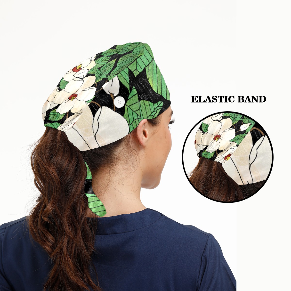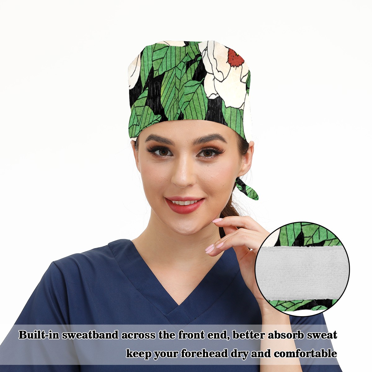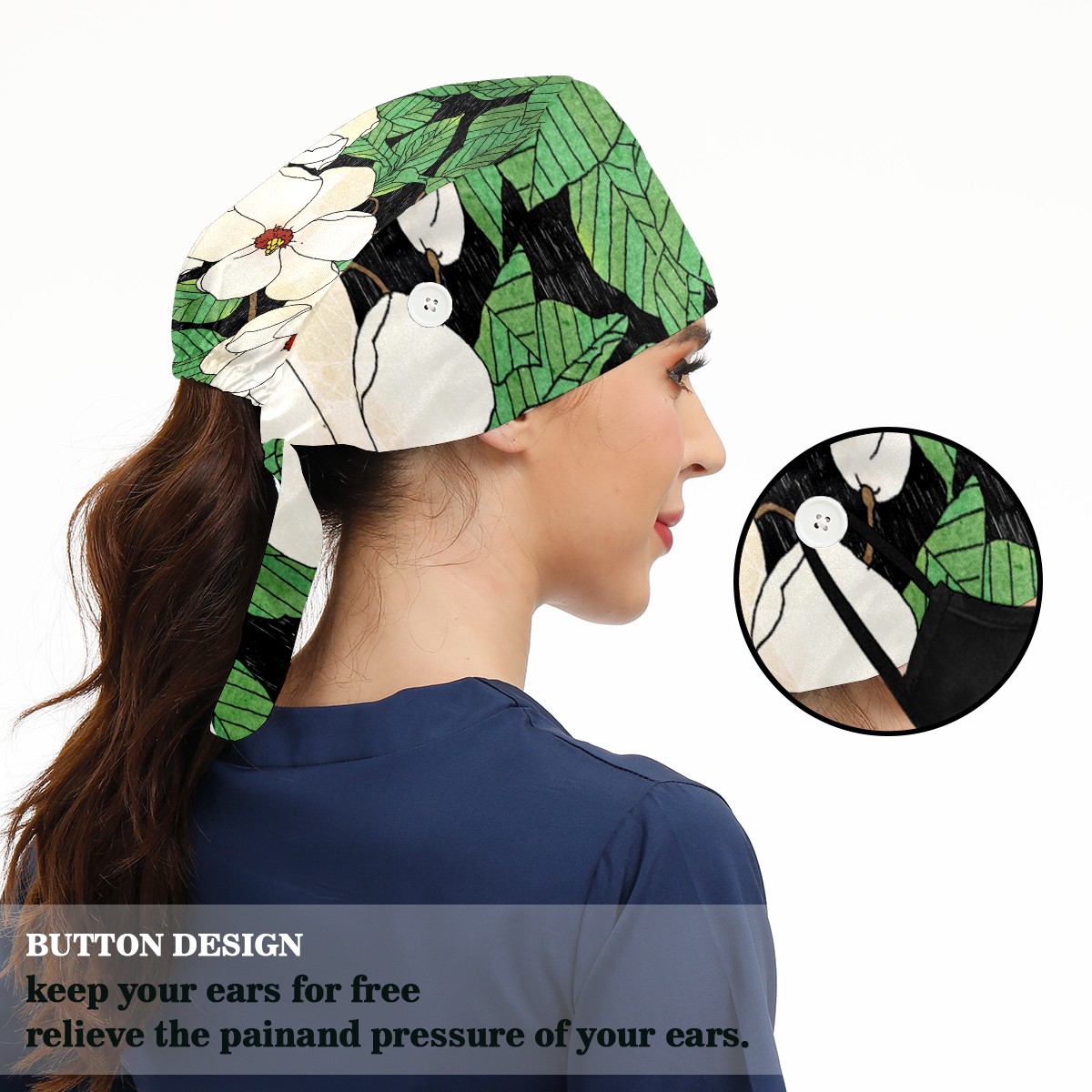 Working Caps with Button & Sweatband Satin Lined Cotton Adjustable Nurse Hats Elastic Band Scrub Cap Surgeon Hat Tiannu Flower