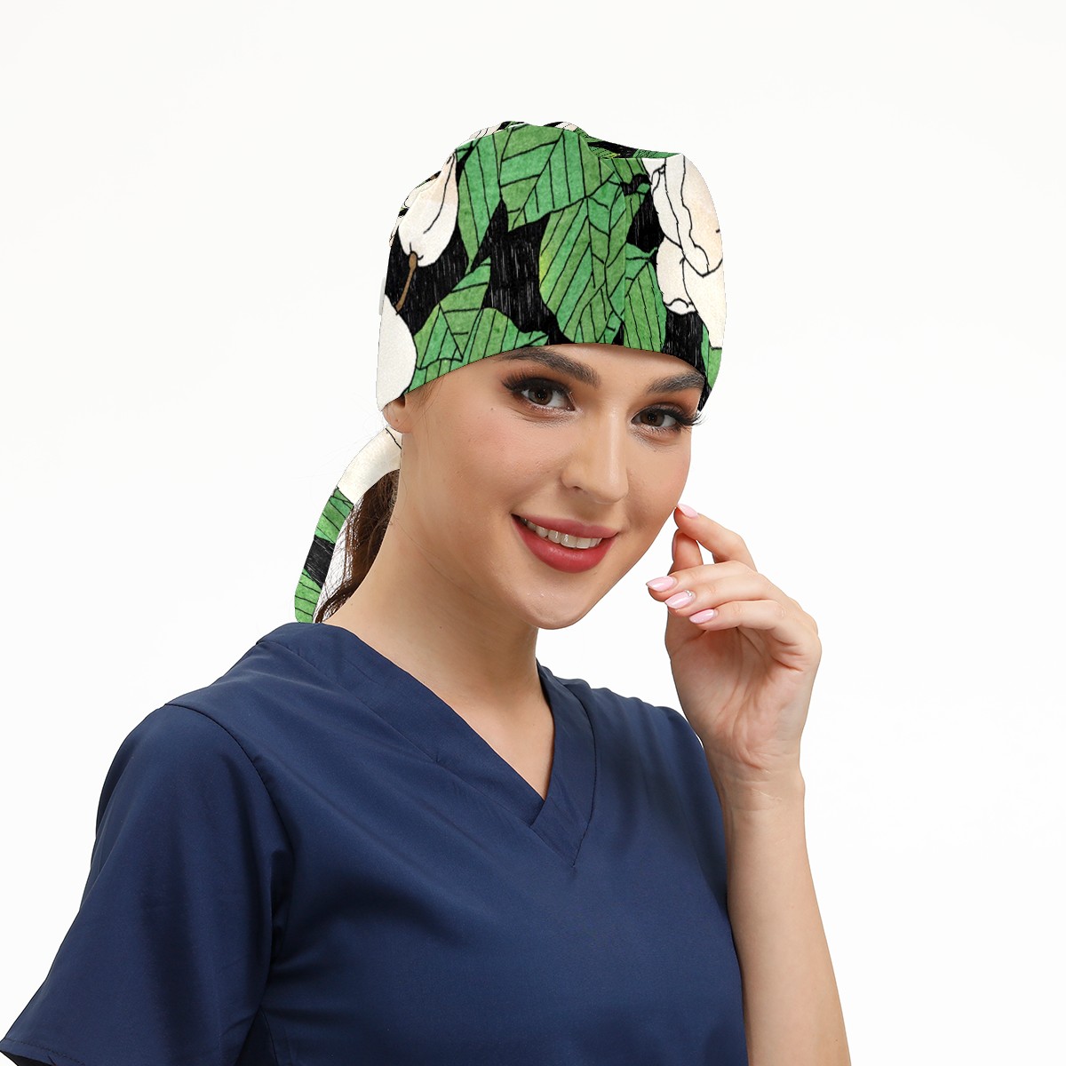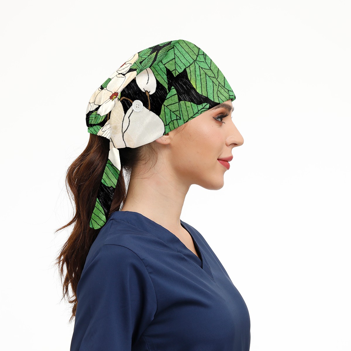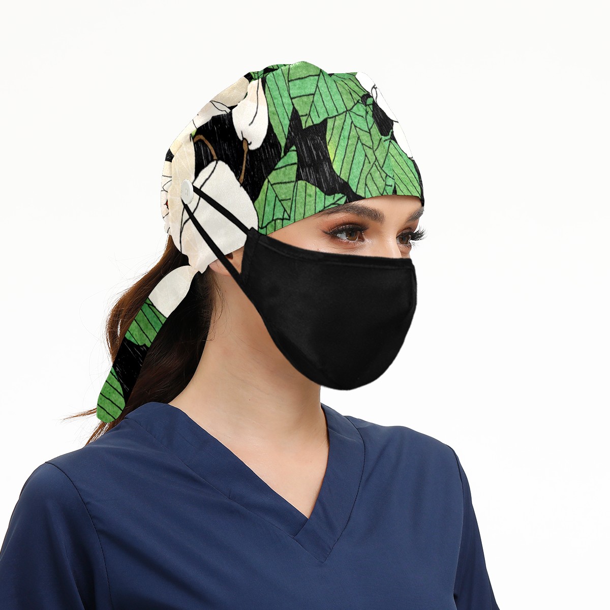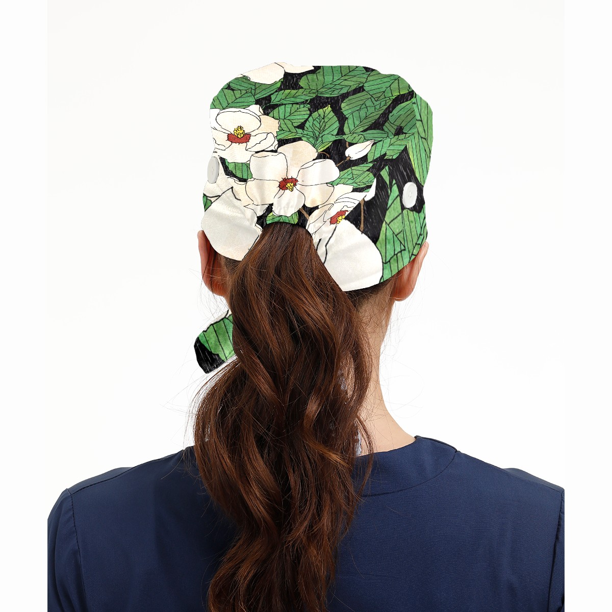 Working Caps with Button & Sweatband Satin Lined Cotton Adjustable Nurse Hats Elastic Band Scrub Cap Surgeon Hat Tiannu Flower