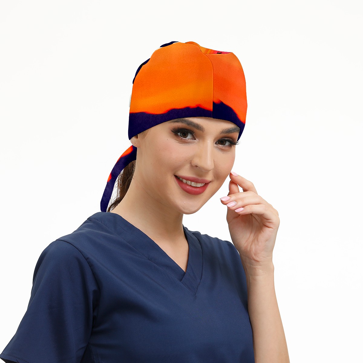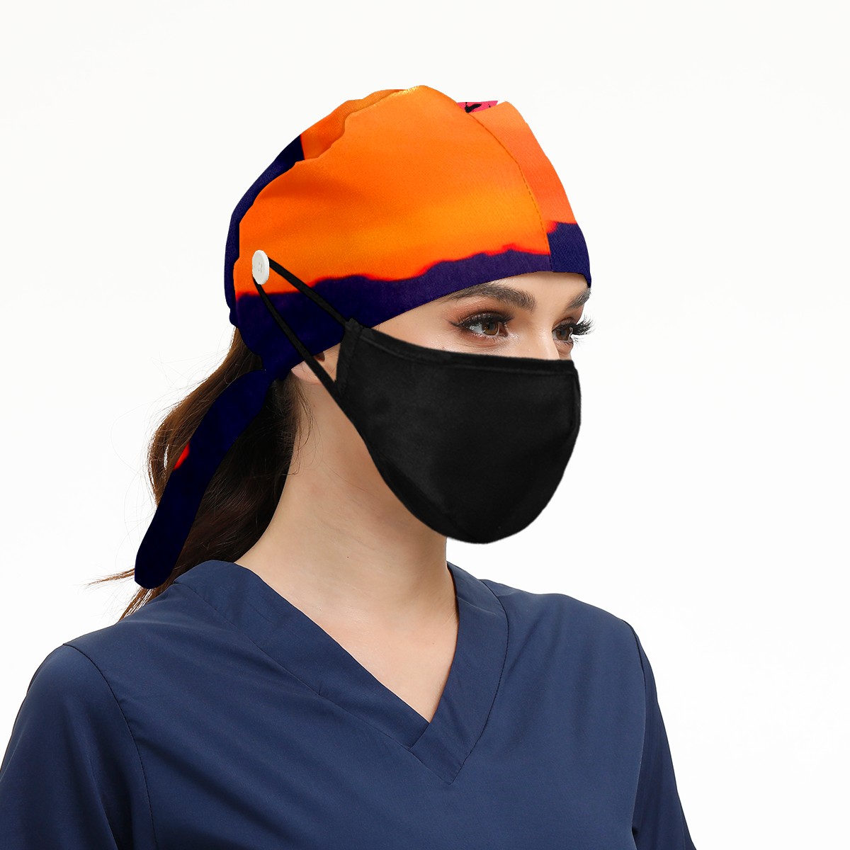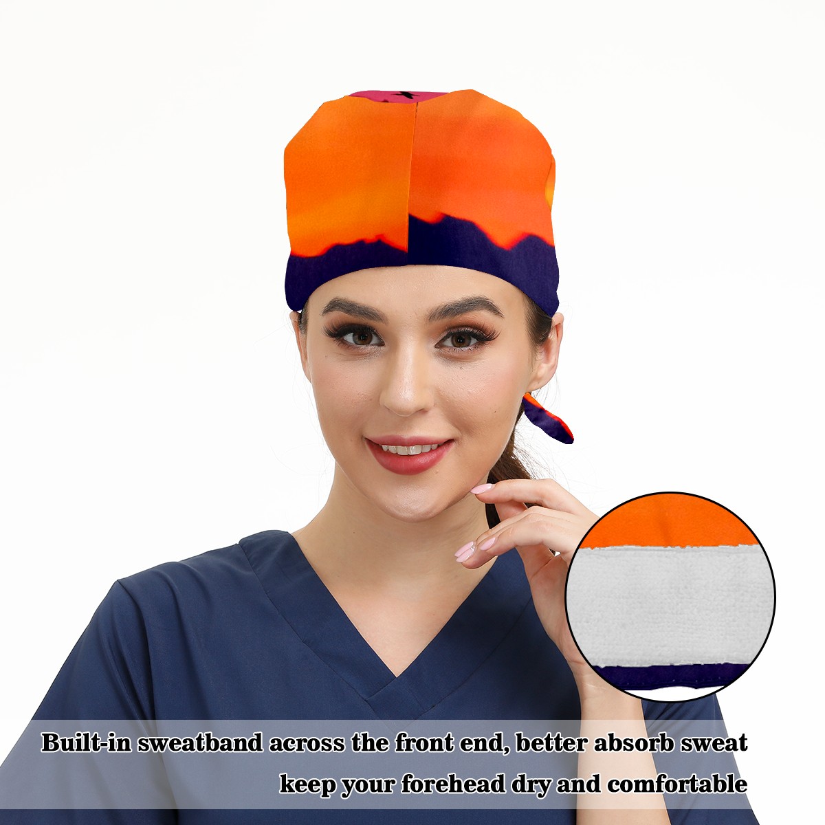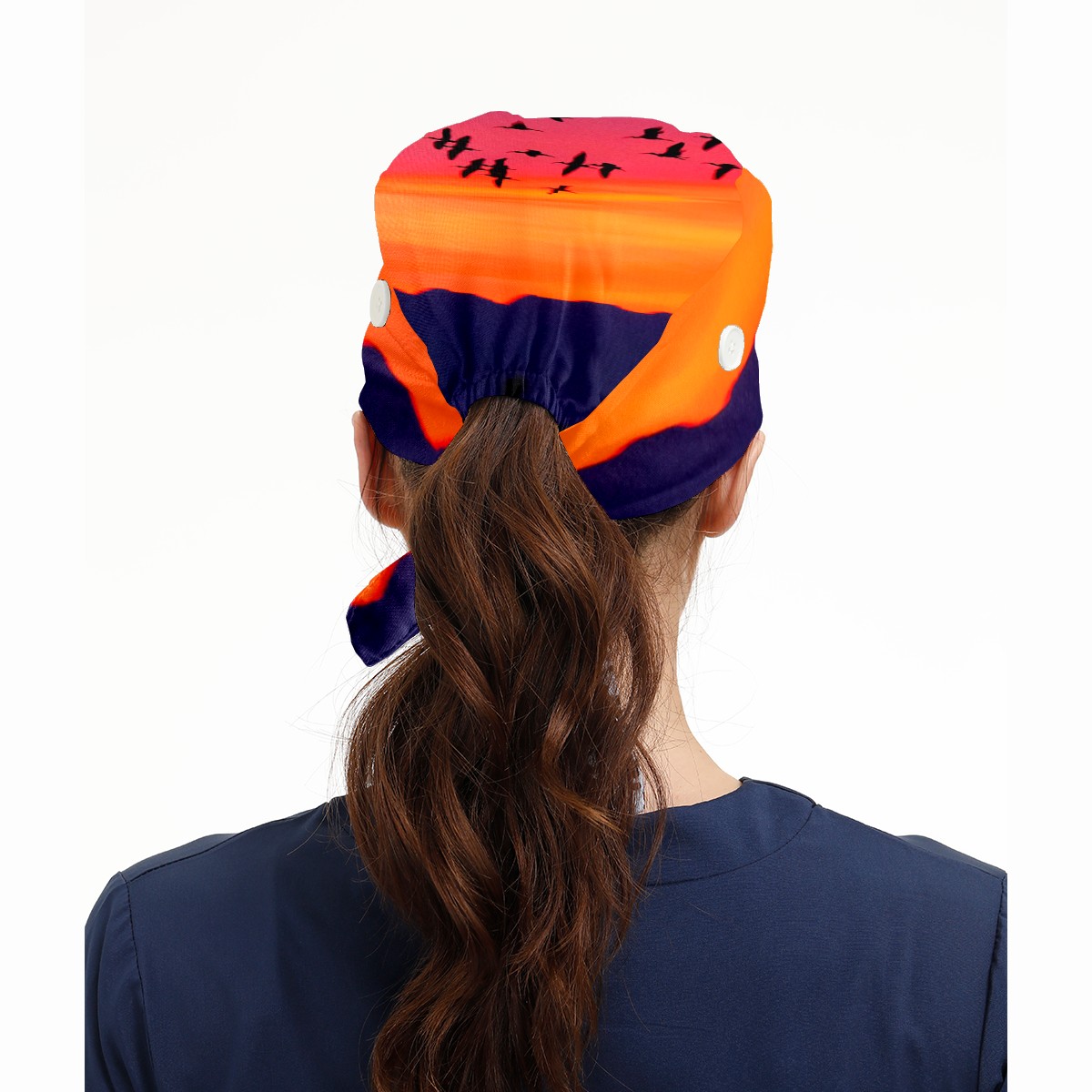 Working Caps with Button & Sweatband Satin Lined Cotton Adjustable Nurse Hats Elastic Band Scrub Cap Surgeon Hat Sea Sunset