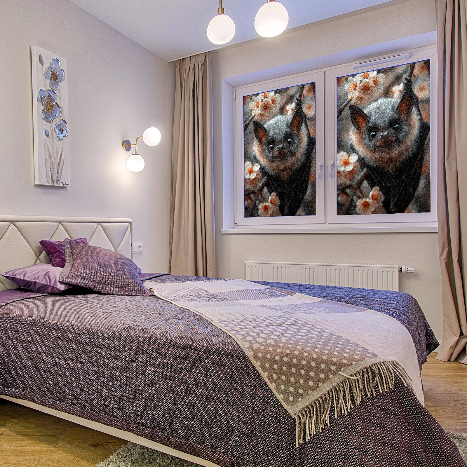 Static Cling Decorative Window Film Frosted Privacy Film Window Clings for Glass Windows No Glue Window Sticker for Bathroom Bedroom Office Bats