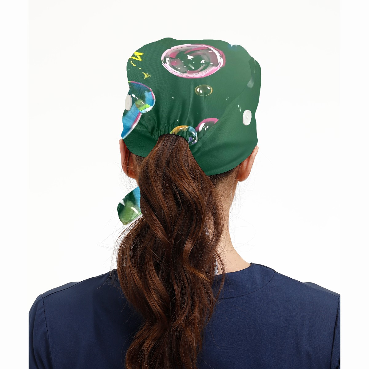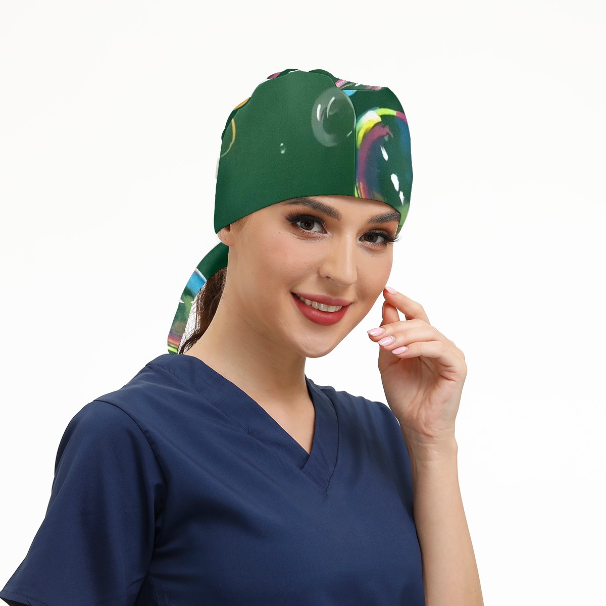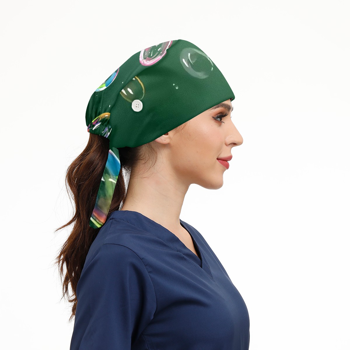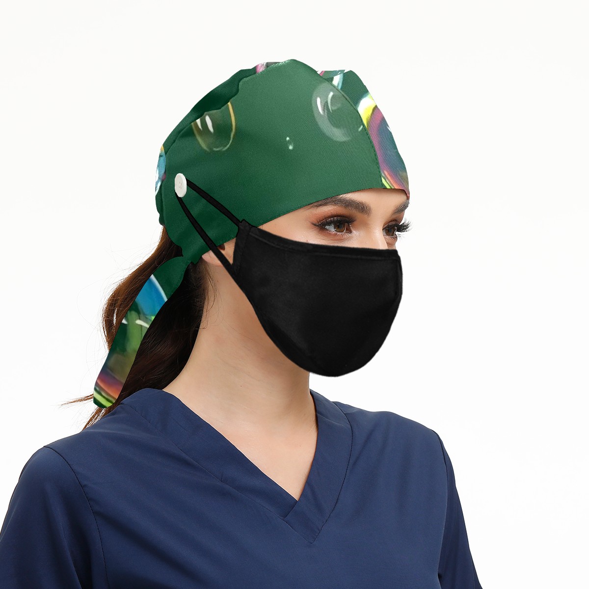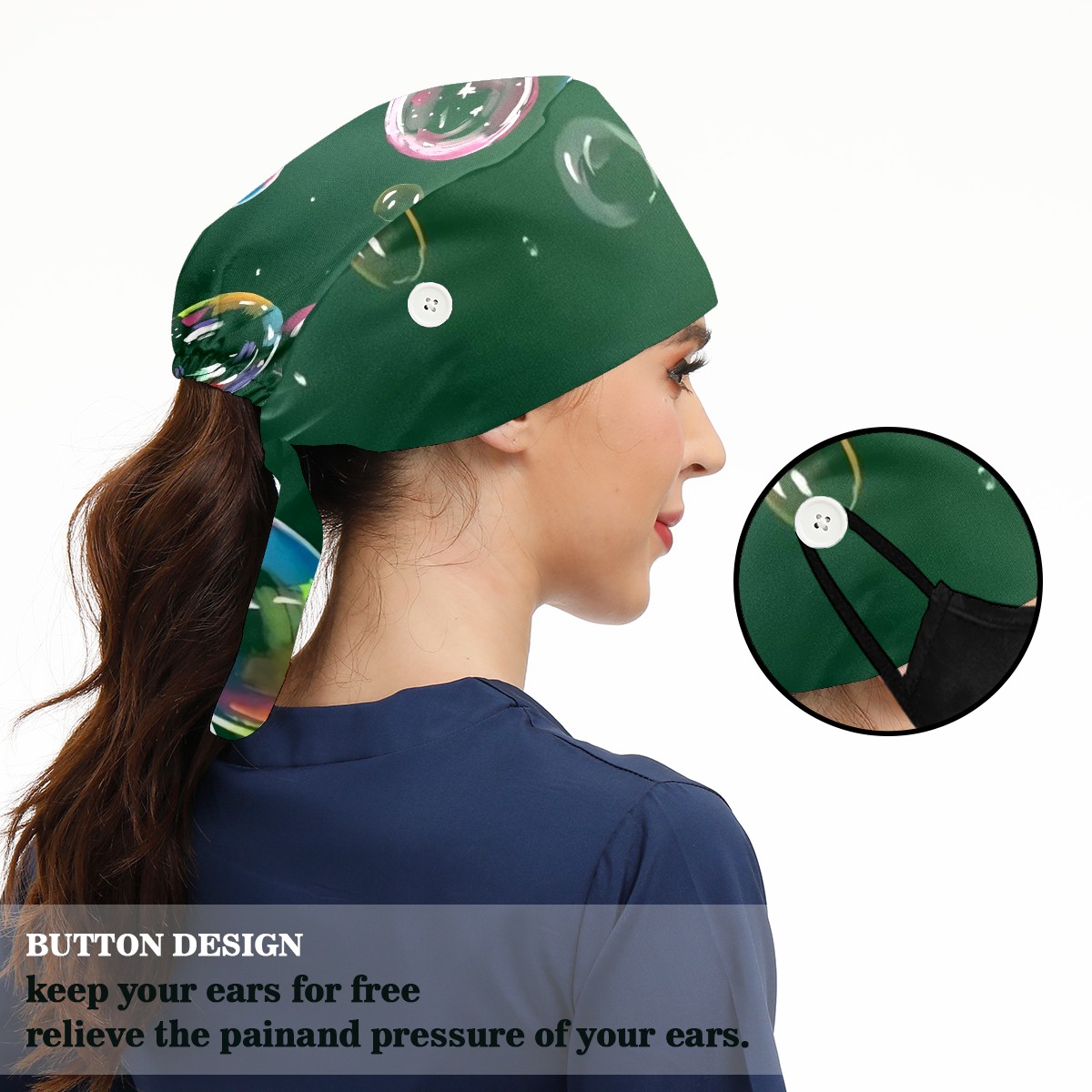Working Caps with Button & Sweatband Satin Lined Cotton Adjustable Nurse Hats Elastic Band Scrub Cap Surgeon Hat Colored Foam