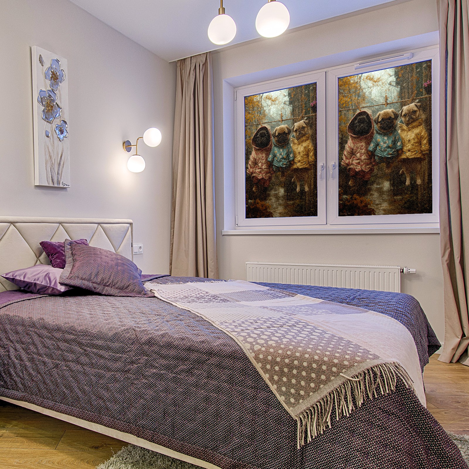 Static Cling Decorative Window Film Frosted Privacy Film Window Clings for Glass Windows No Glue Window Sticker for Bathroom Bedroom Office Dog