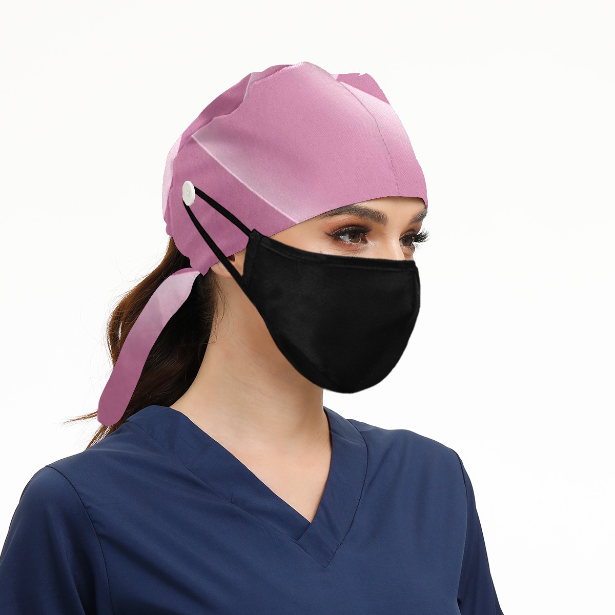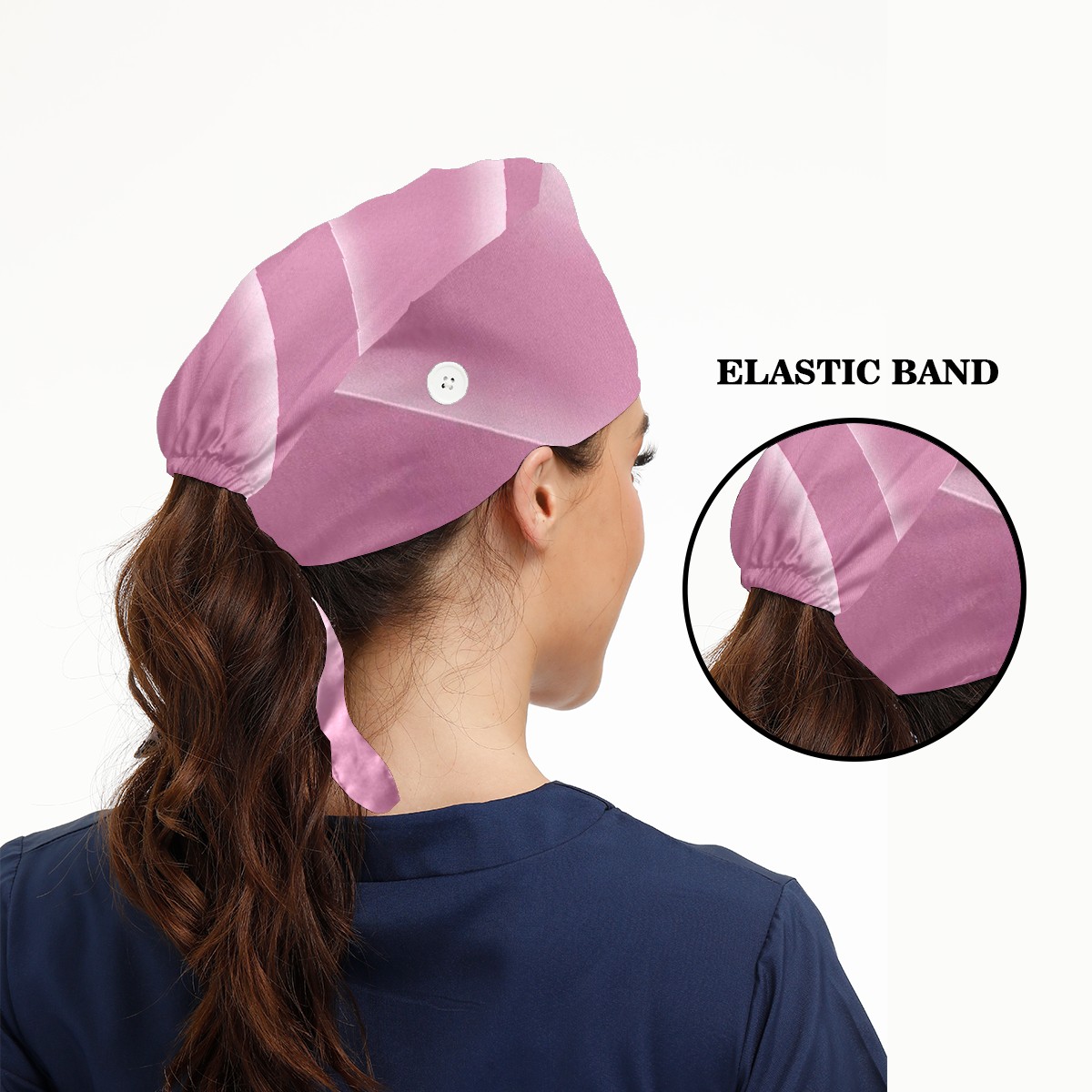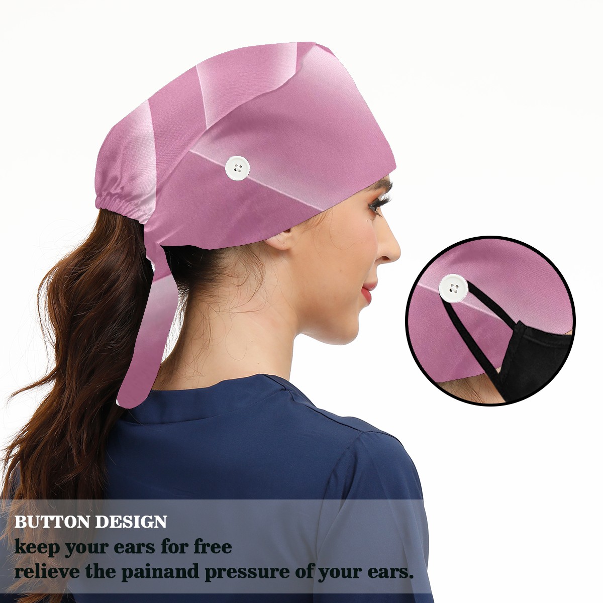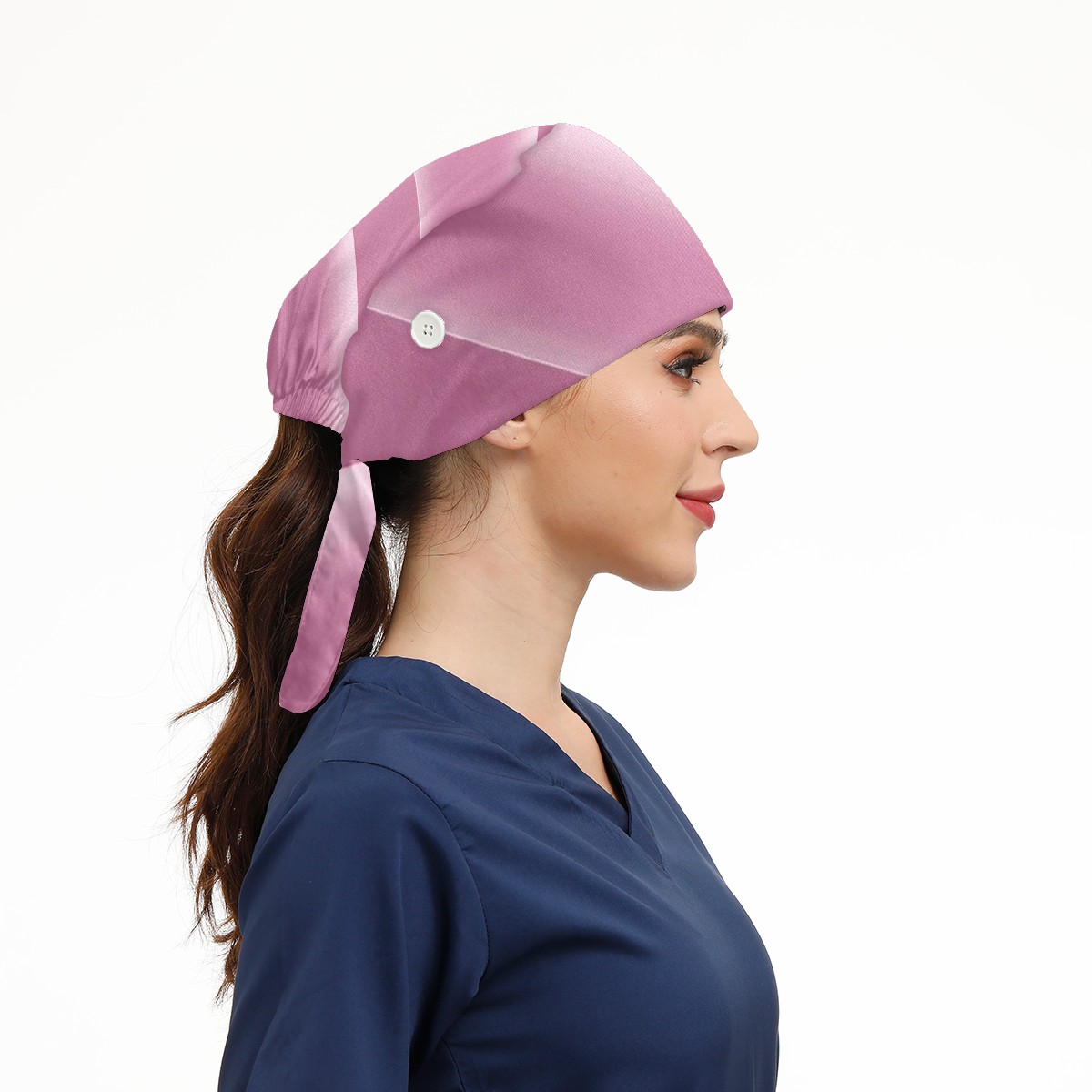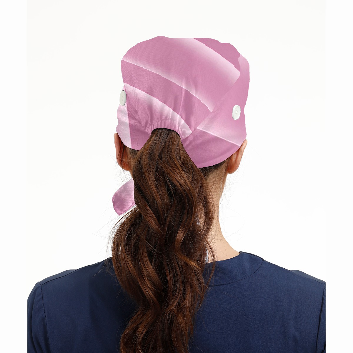 Working Caps with Button & Sweatband Satin Lined Cotton Adjustable Nurse Hats Elastic Band Scrub Cap Surgeon Hat Red Stripe