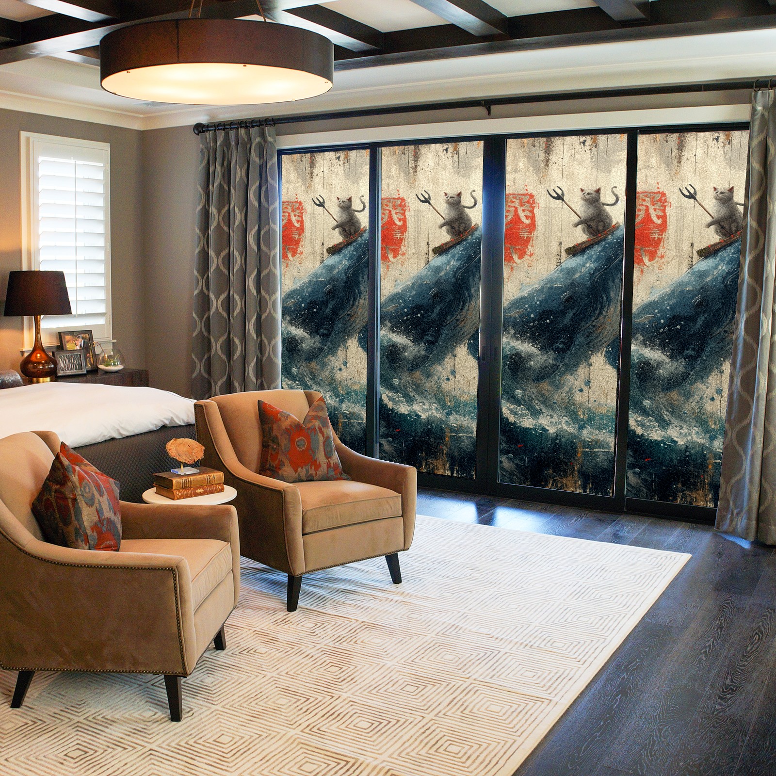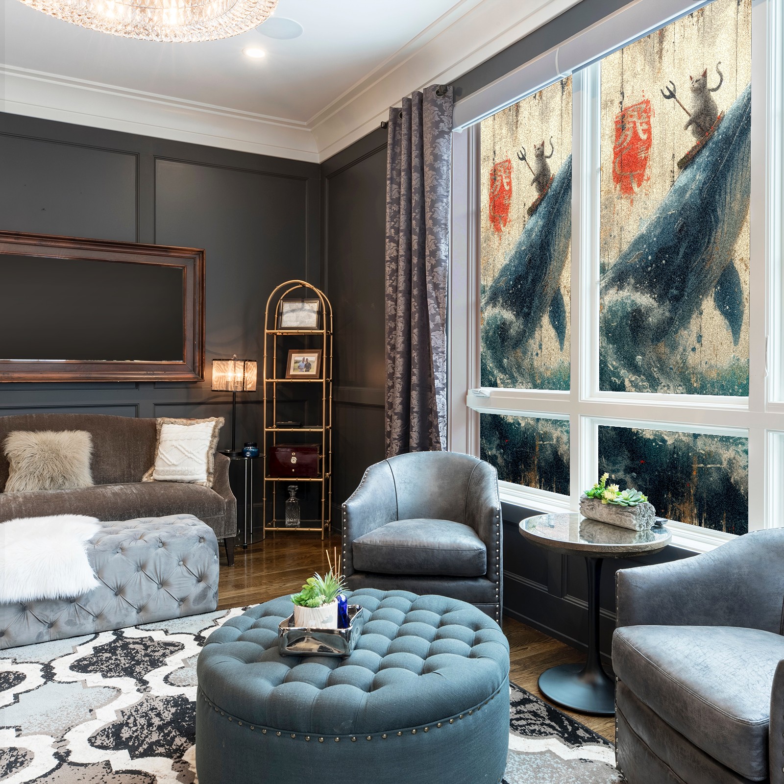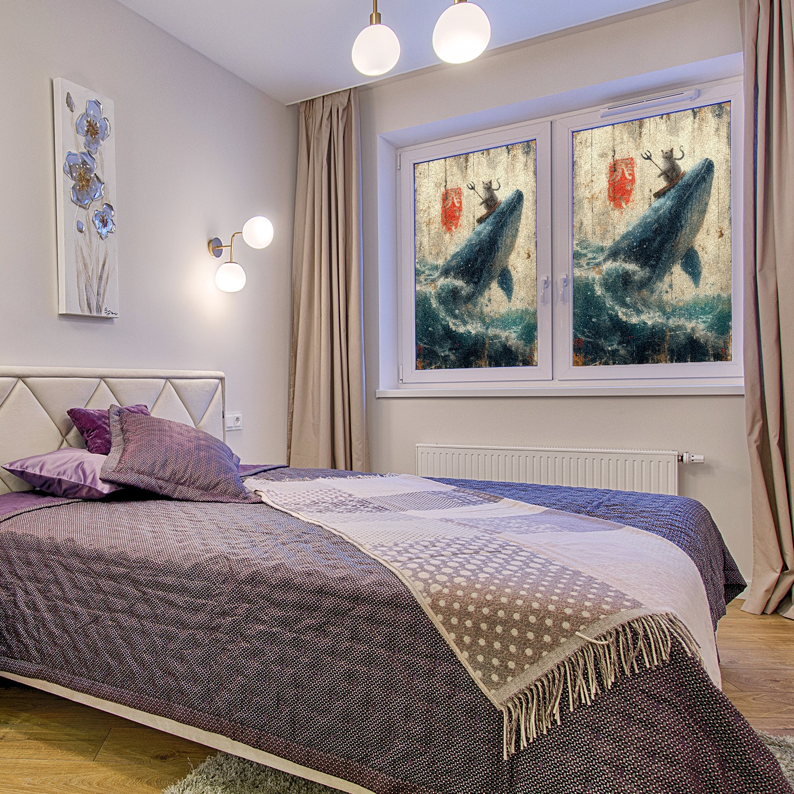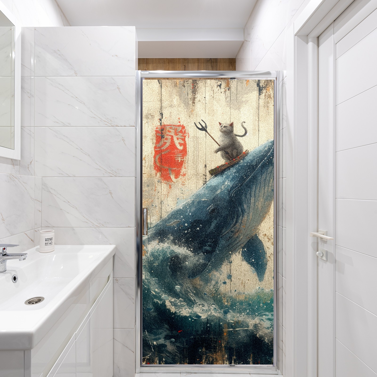 Static Cling Decorative Window Film Frosted Privacy Film Window Clings for Glass Windows No Glue Window Sticker for Bathroom Bedroom Office Whale