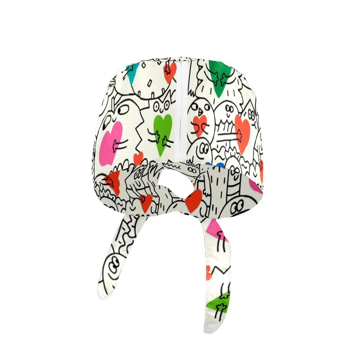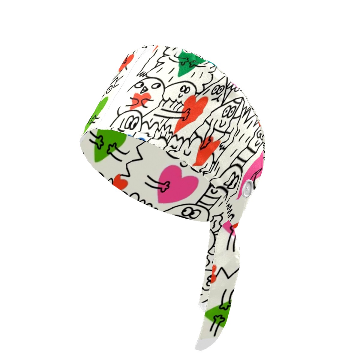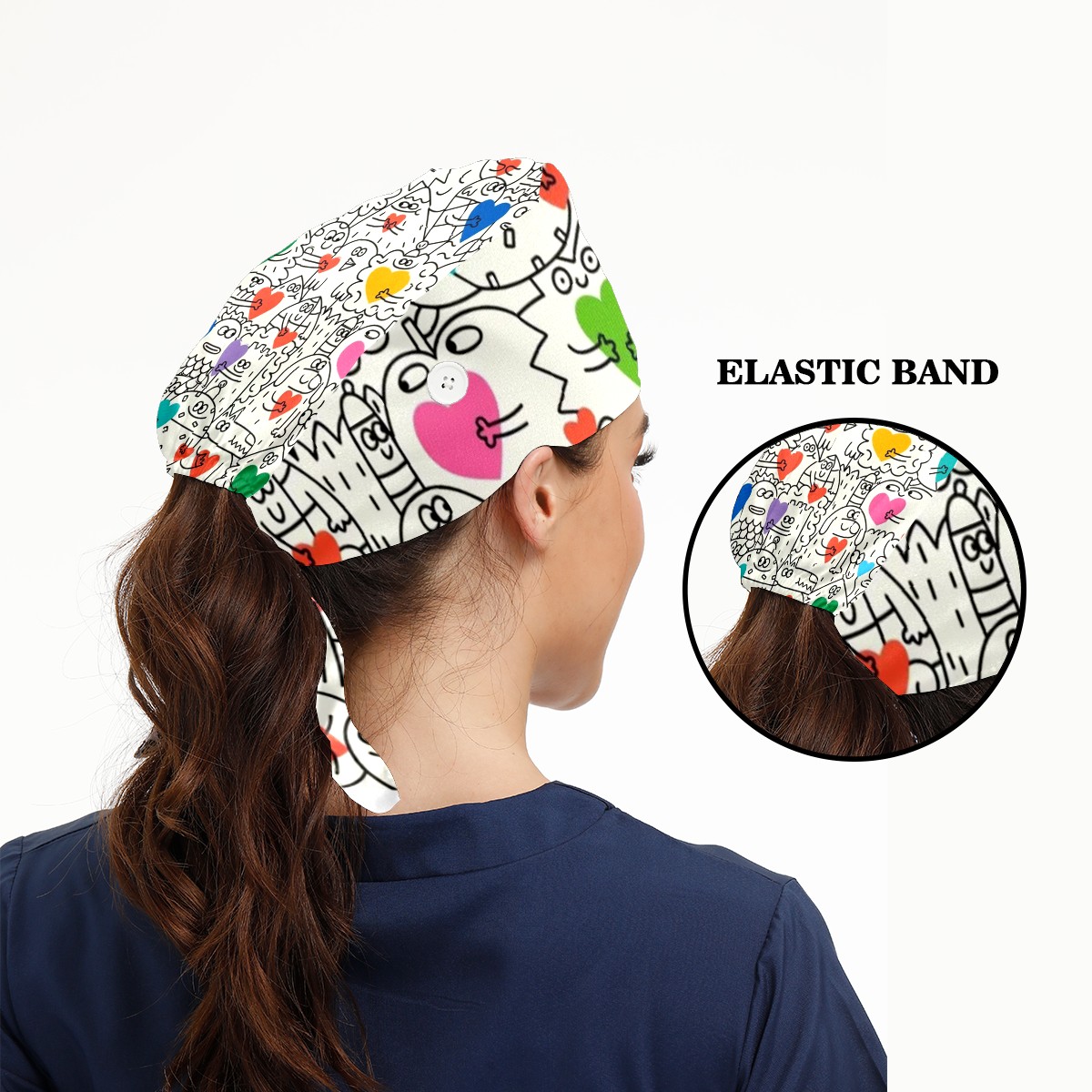 Working Caps with Button & Sweatband Satin Lined Cotton Adjustable Nurse Hats Elastic Band Scrub Cap Surgeon Hat Seamless Love