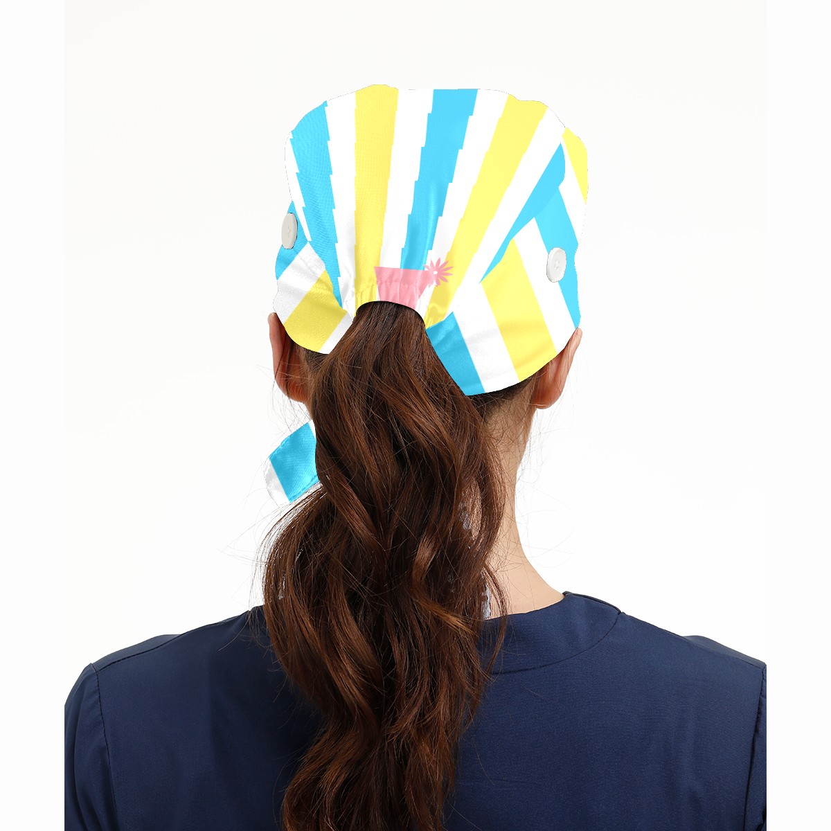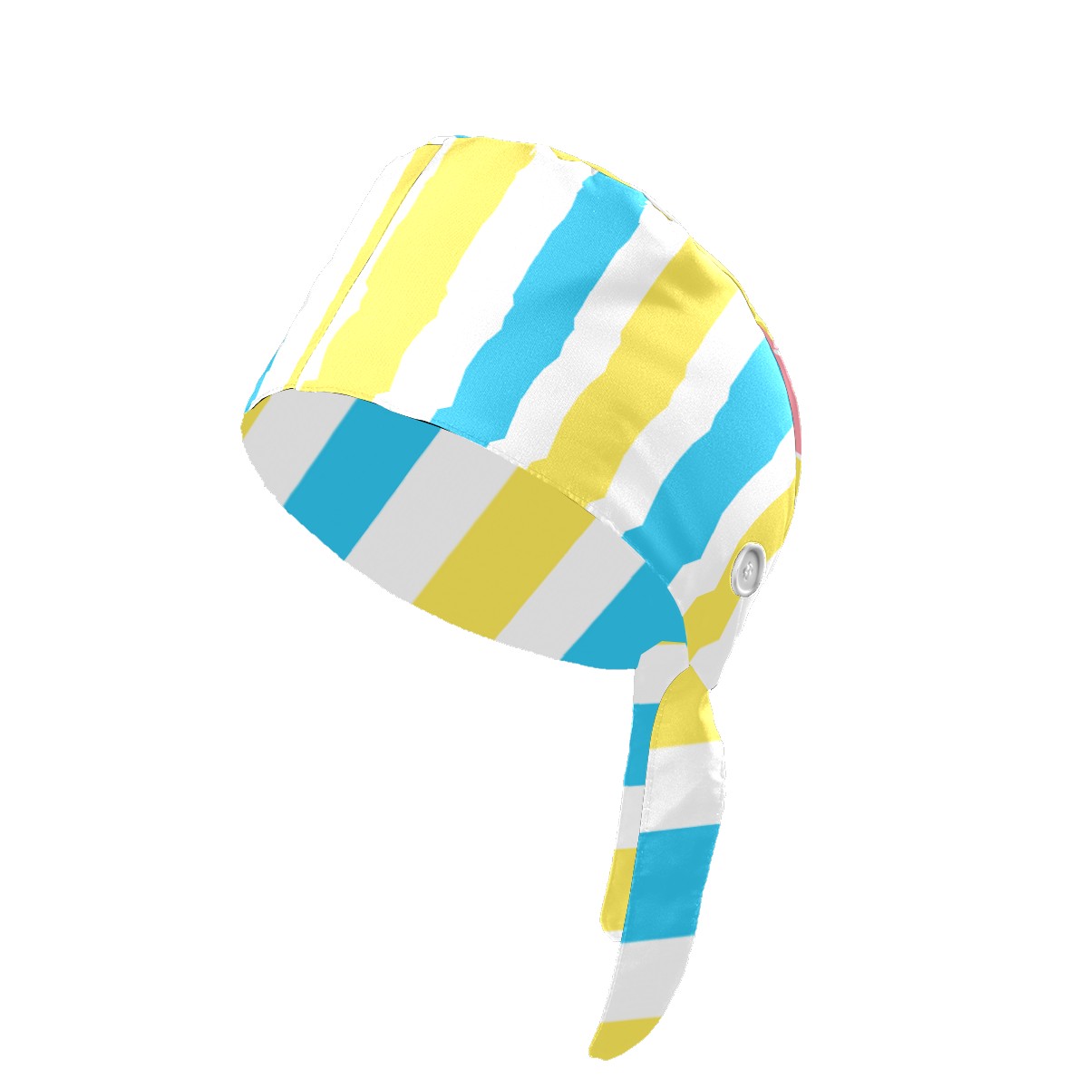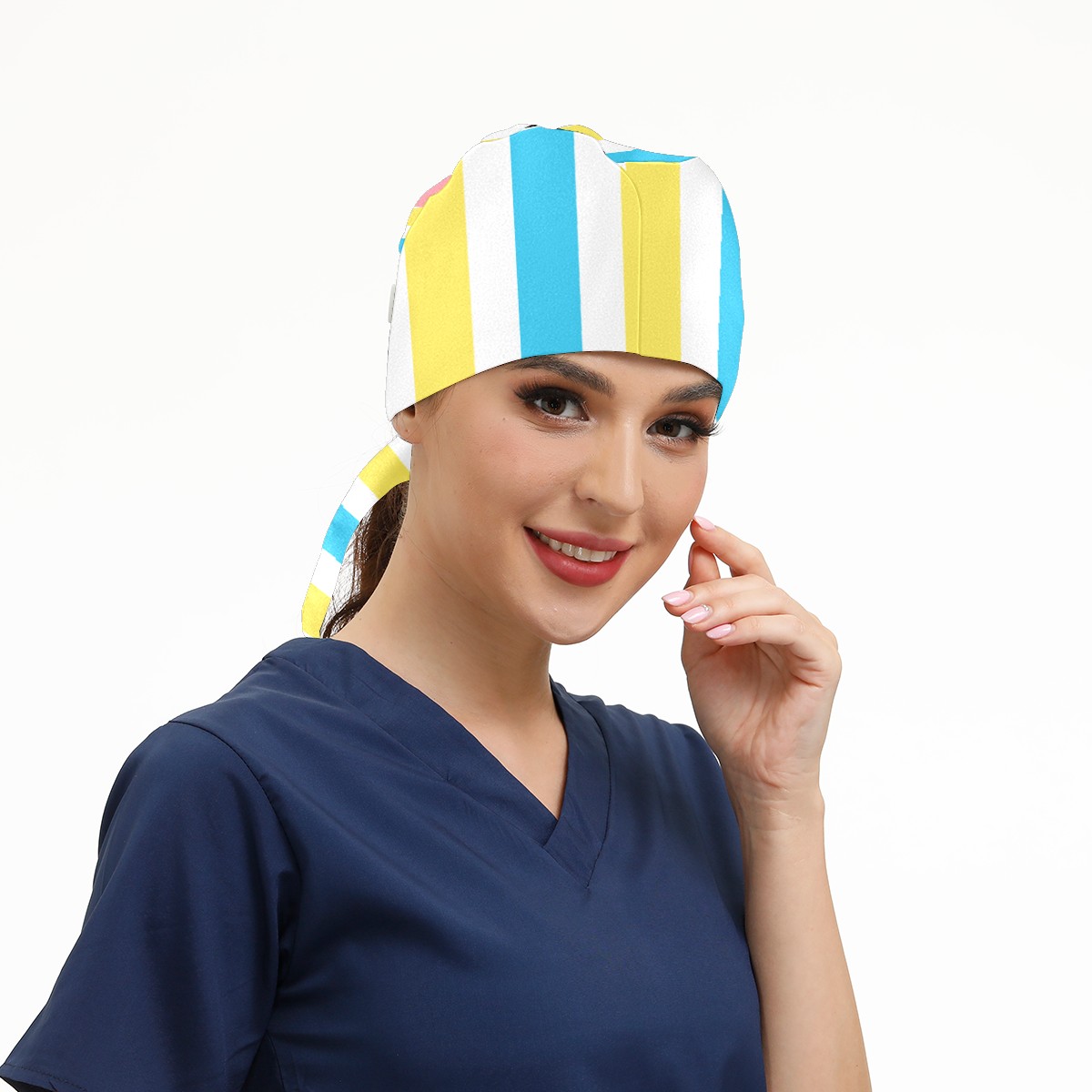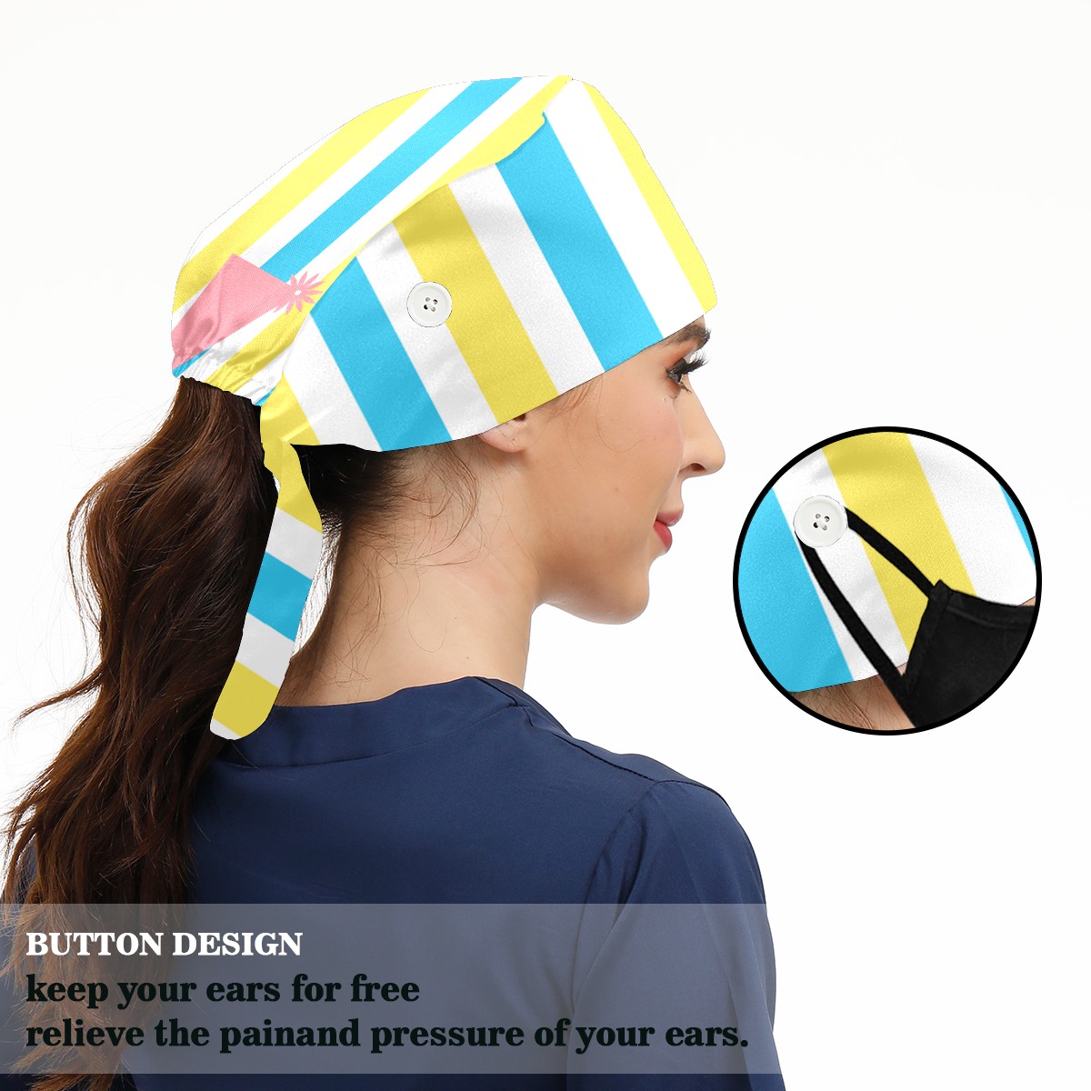Working Caps with Button & Sweatband Satin Lined Cotton Adjustable Nurse Hats Elastic Band Scrub Cap Surgeon Hat Stripe